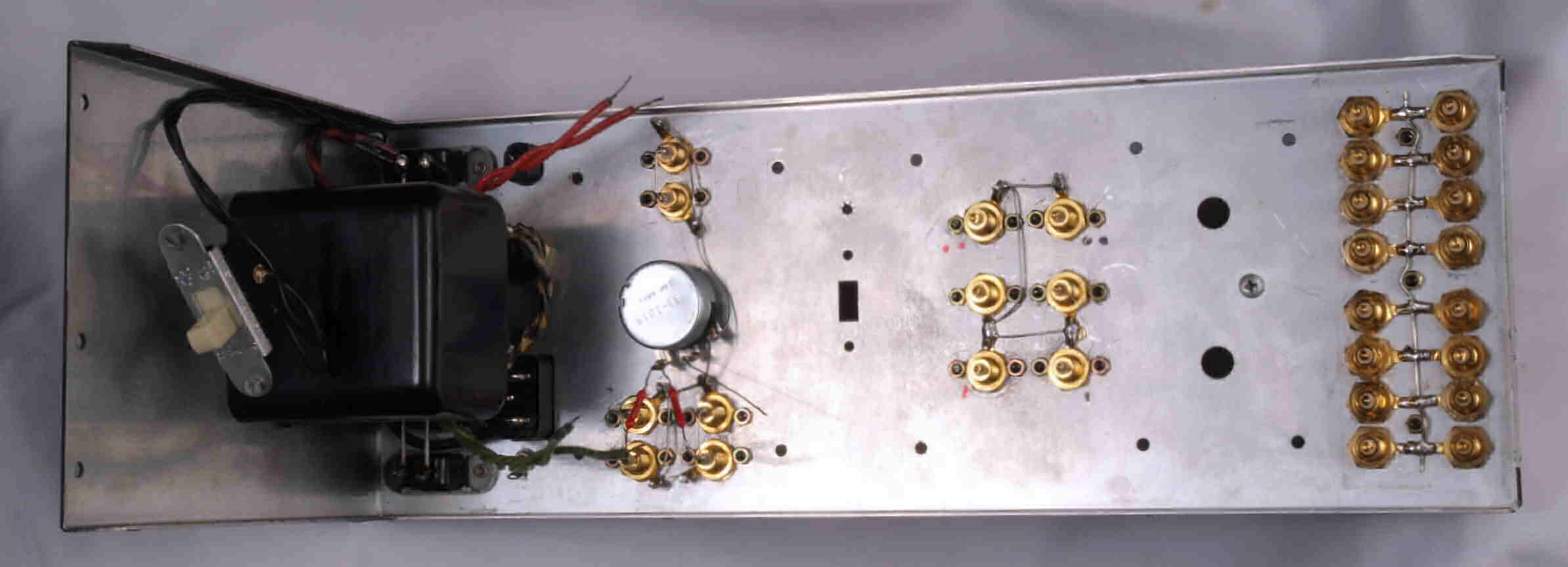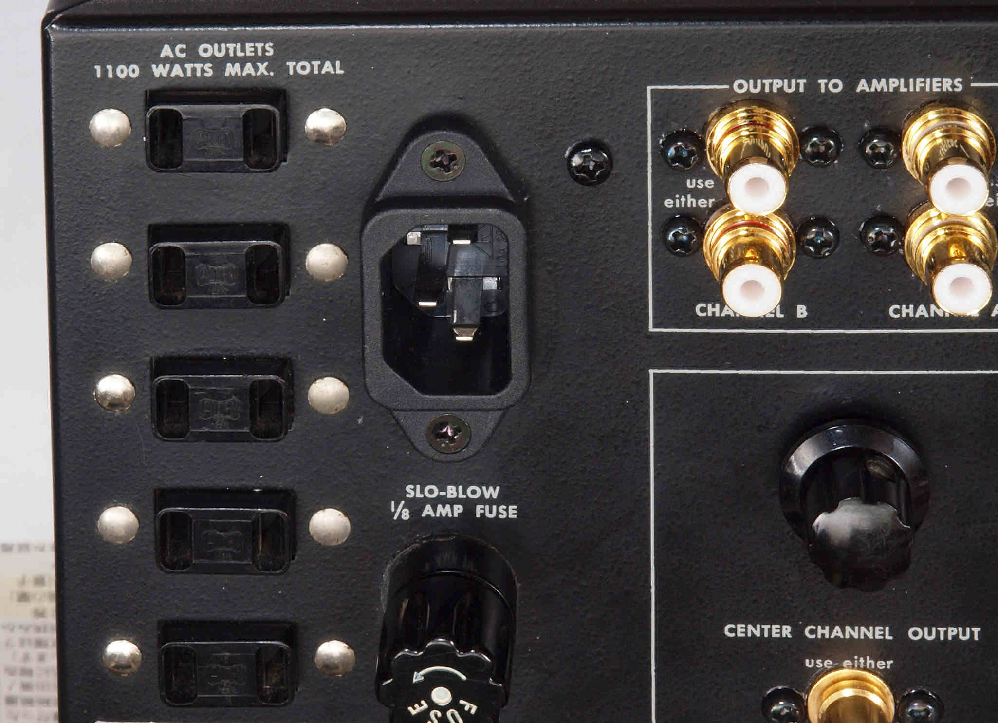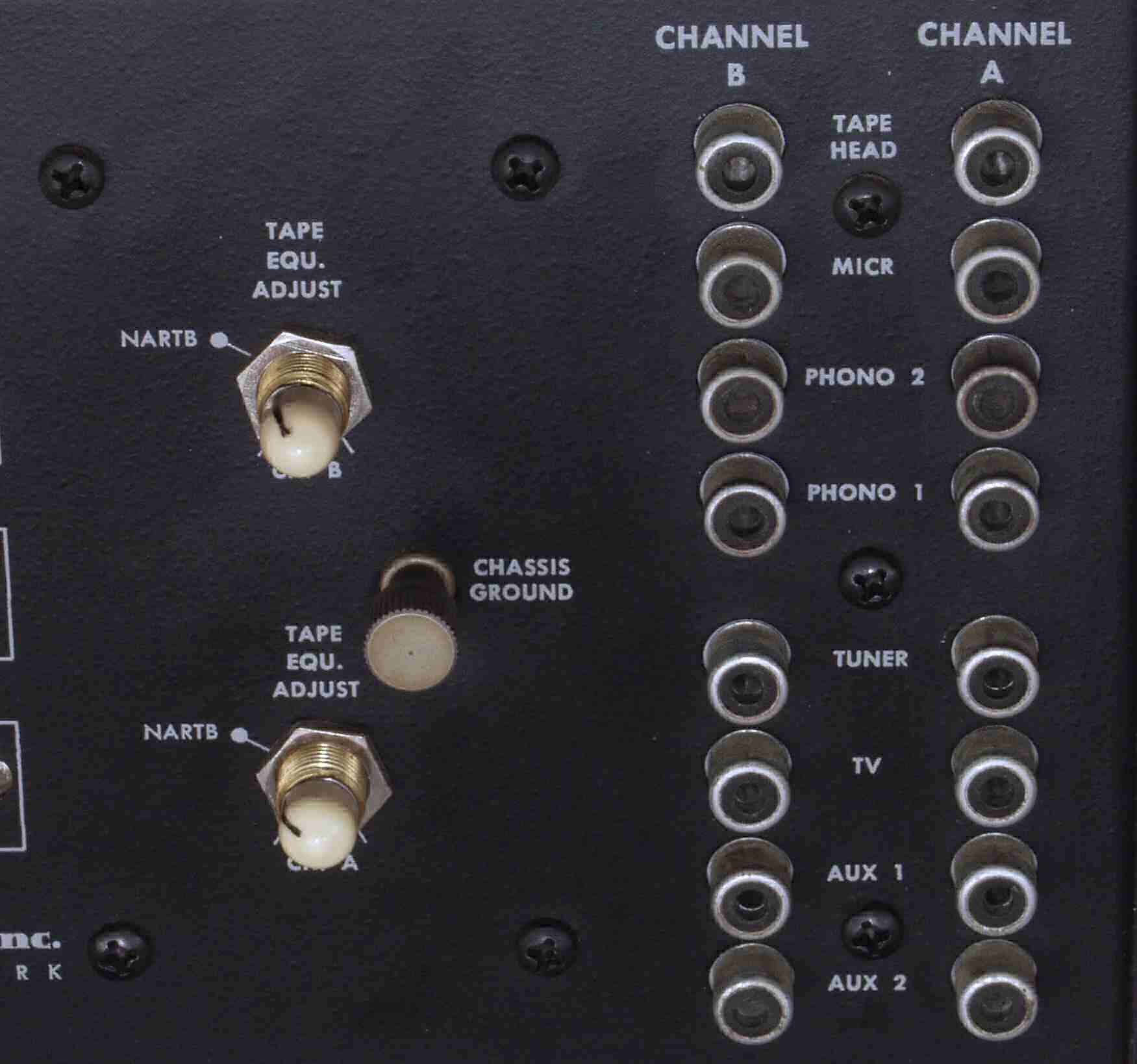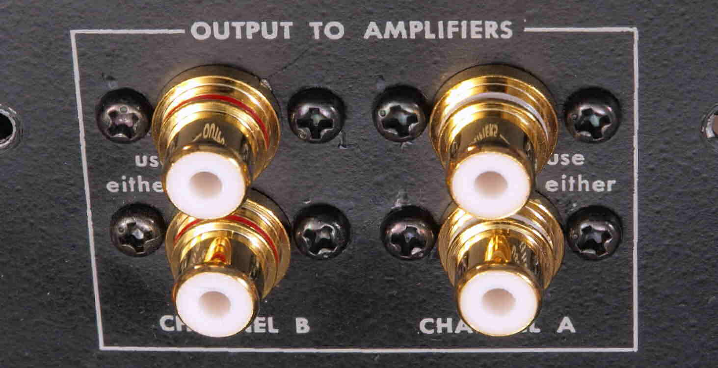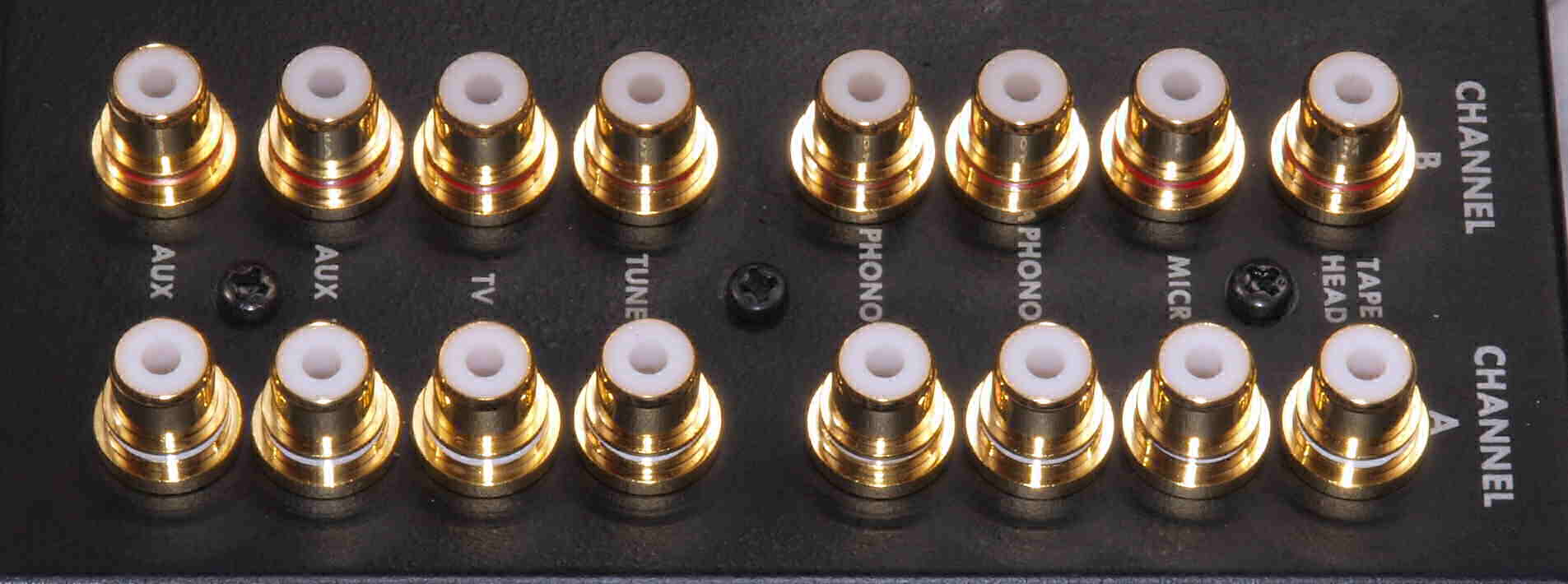 4.リヤパネルのピンジャクはプリアウトを1つとPHONO1のみで他は取り外し。