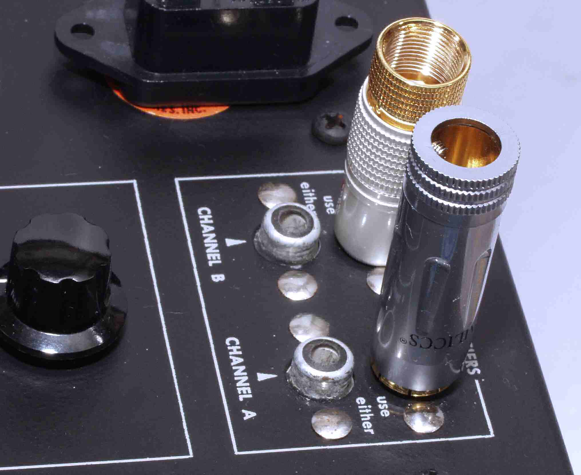 A53. 点検中 入力RCA端子郡、 WBT製の小型締め付け(コレクトキャッチ)型でも、使用不可。