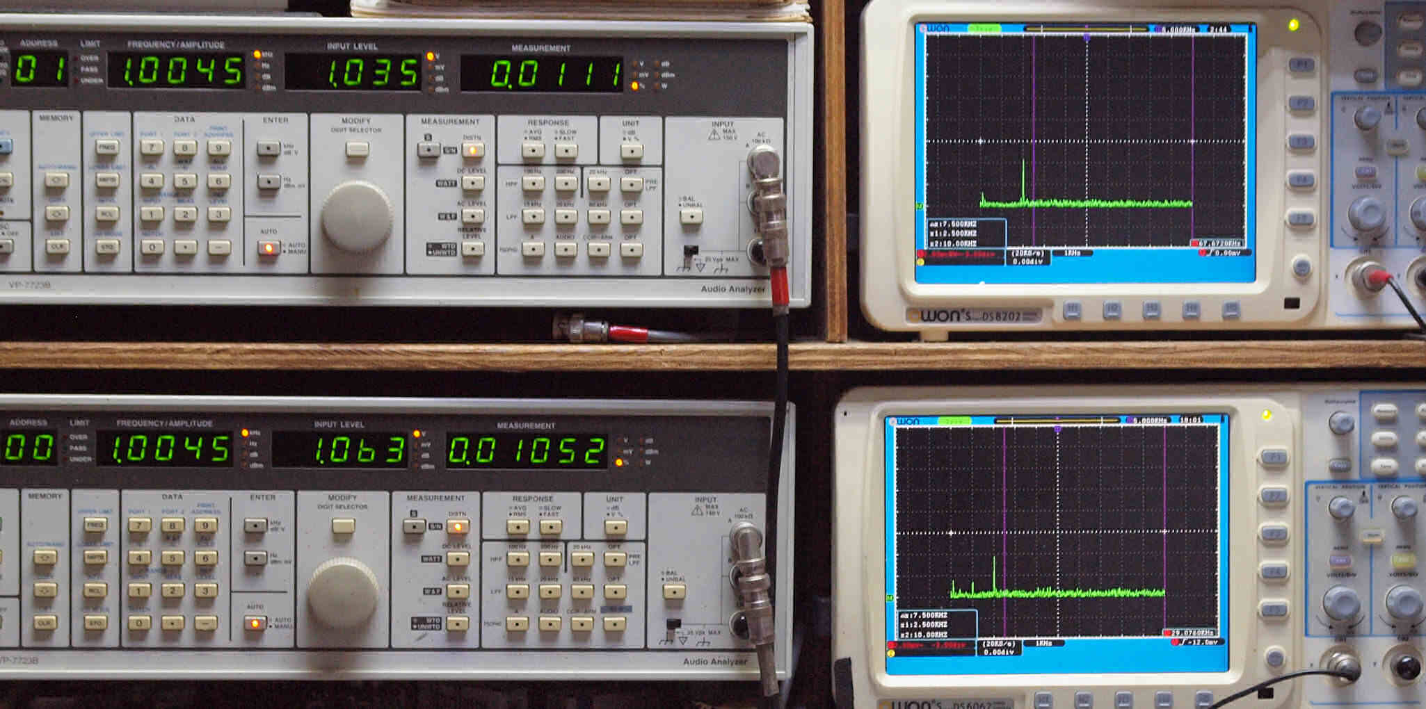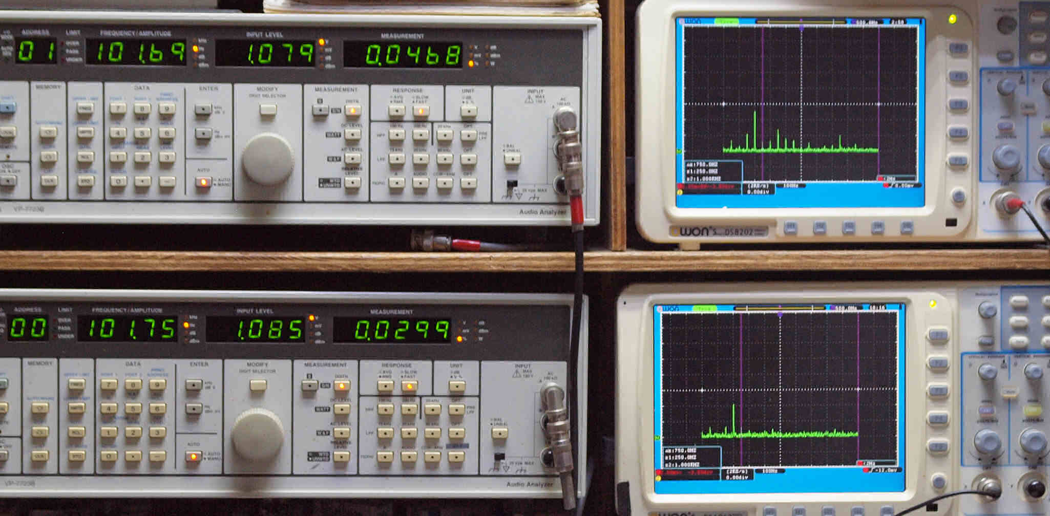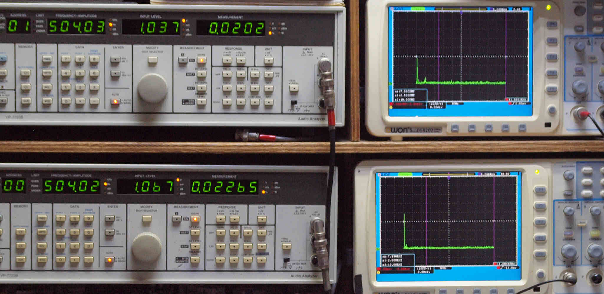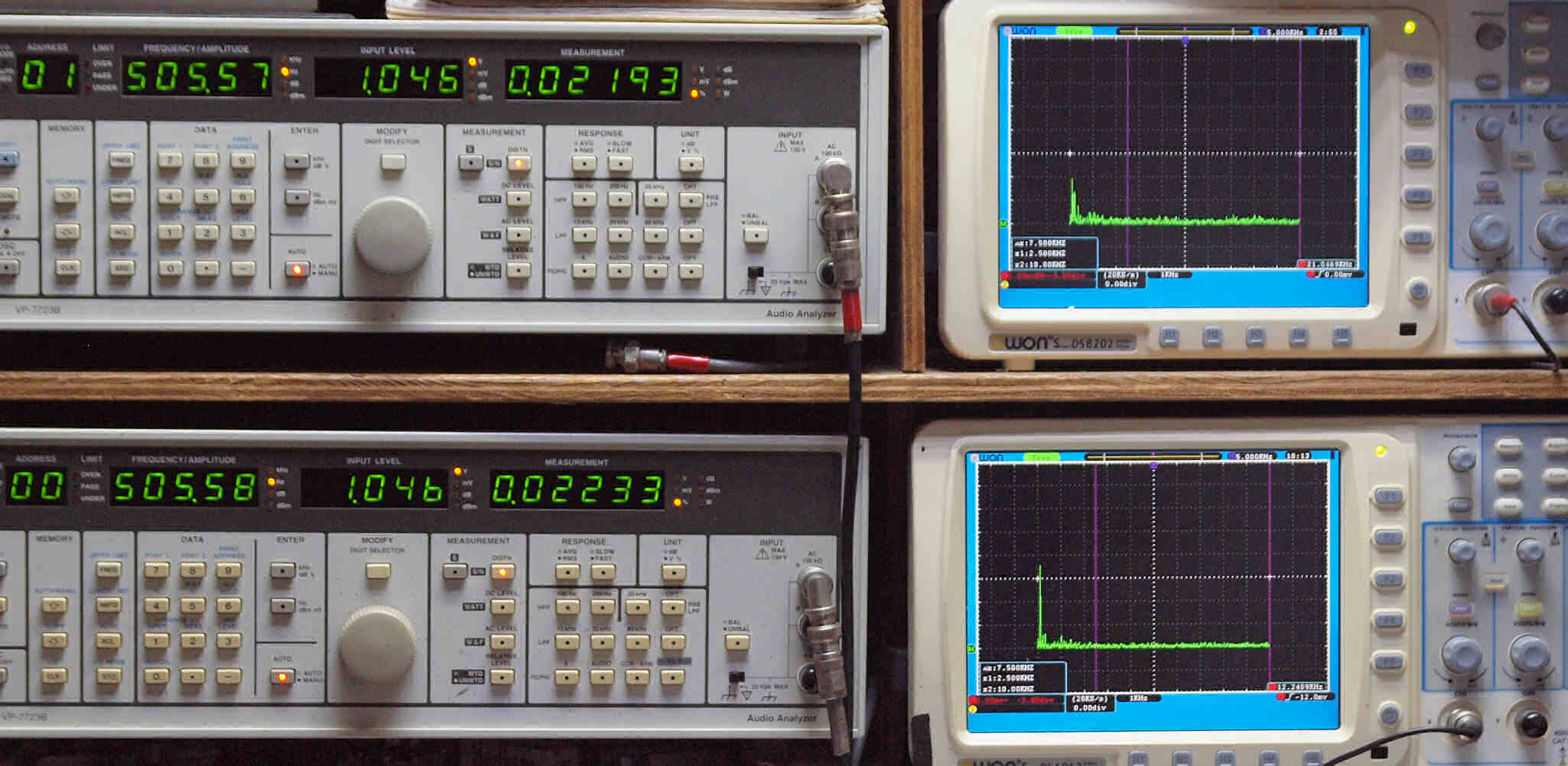 よって、ダイアル設定出力レベルより低くなります。測定機器の仕様や整備の様子はこちら、「VP−7723B」「VP−7201A」。 FFT画面の見方はこちら。