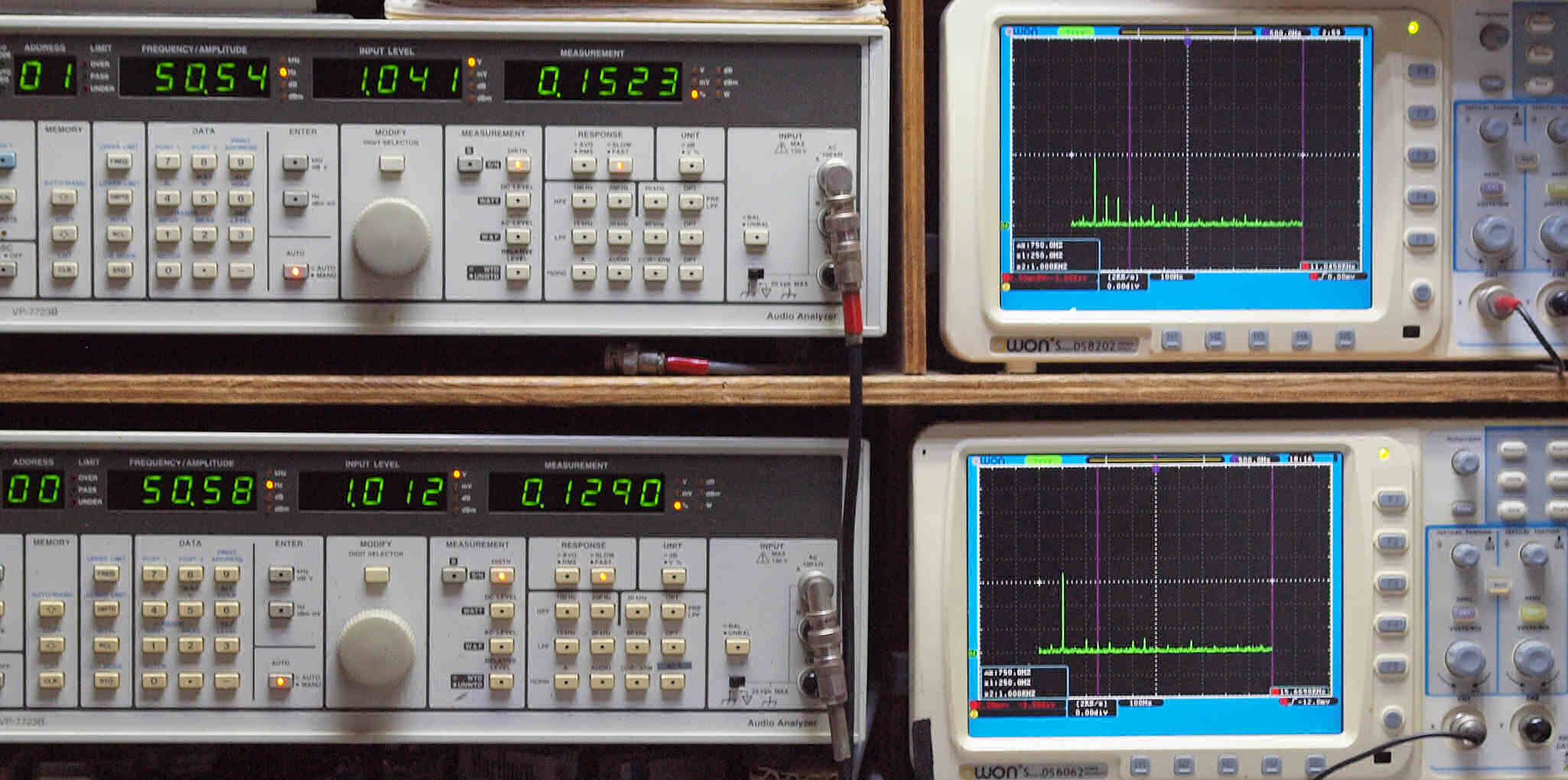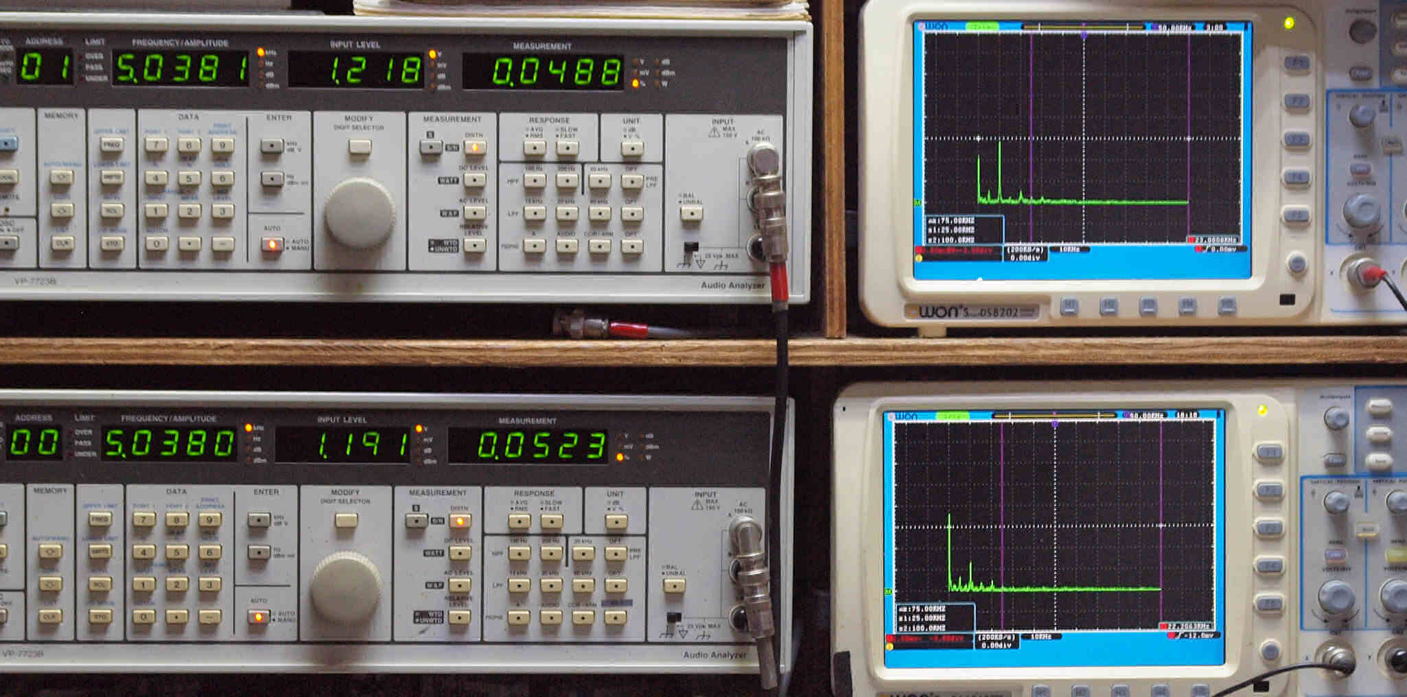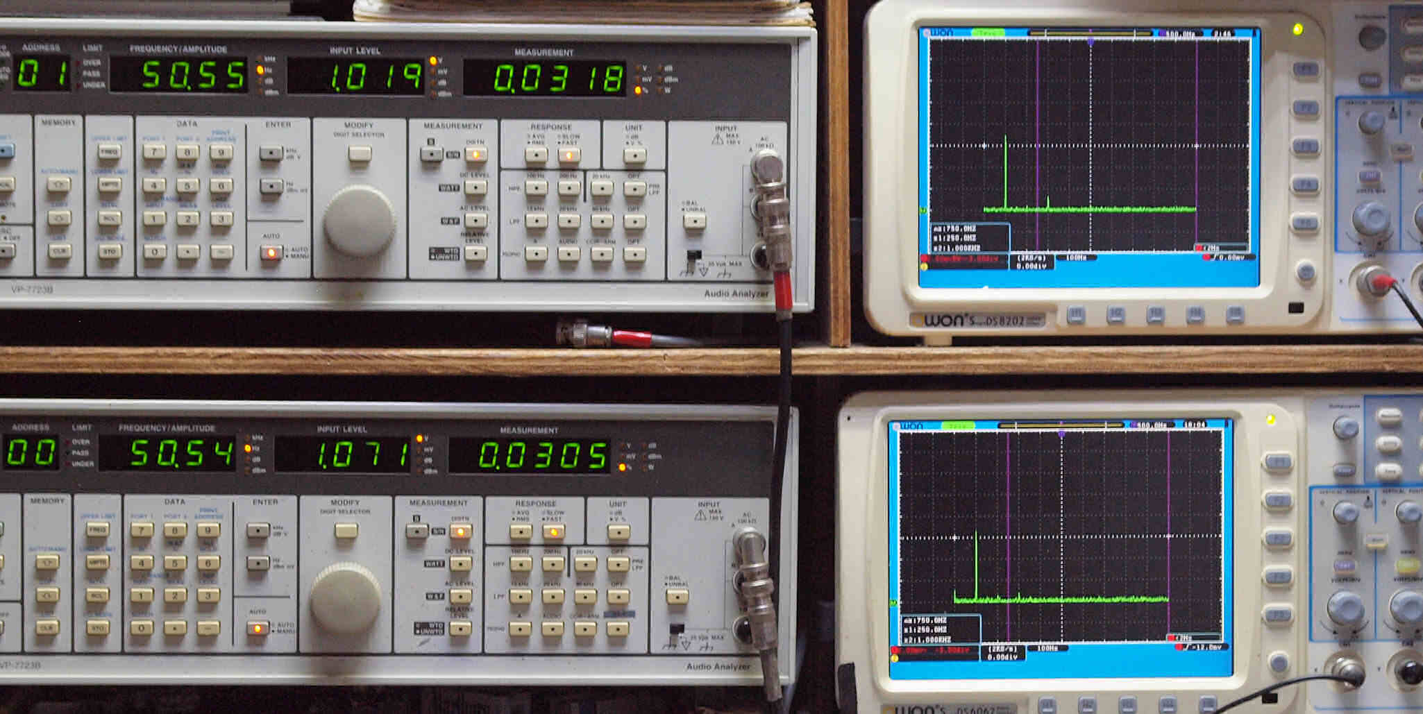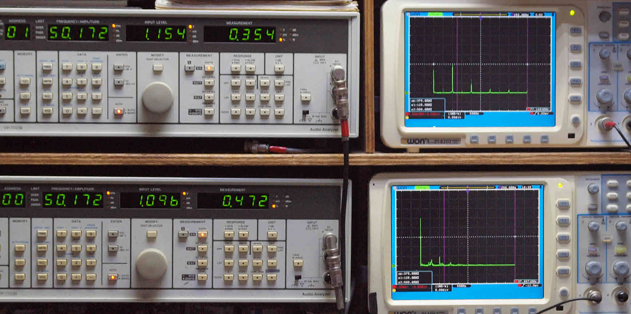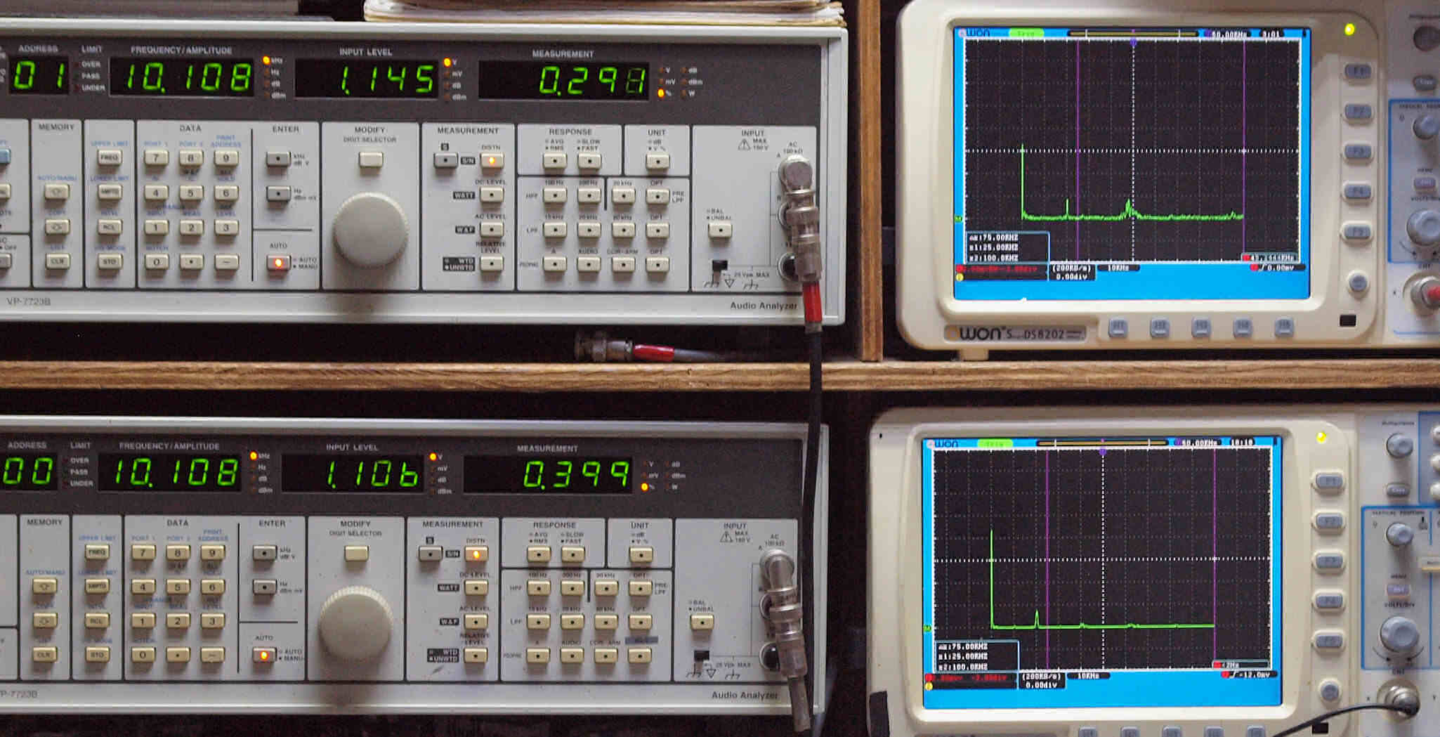 よって、ダイアル設定出力レベルより低くなります。測定機器の仕様や整備の様子はこちら、「VP−7723B」「VP−7201A」。 FFT画面の見方はこちら。