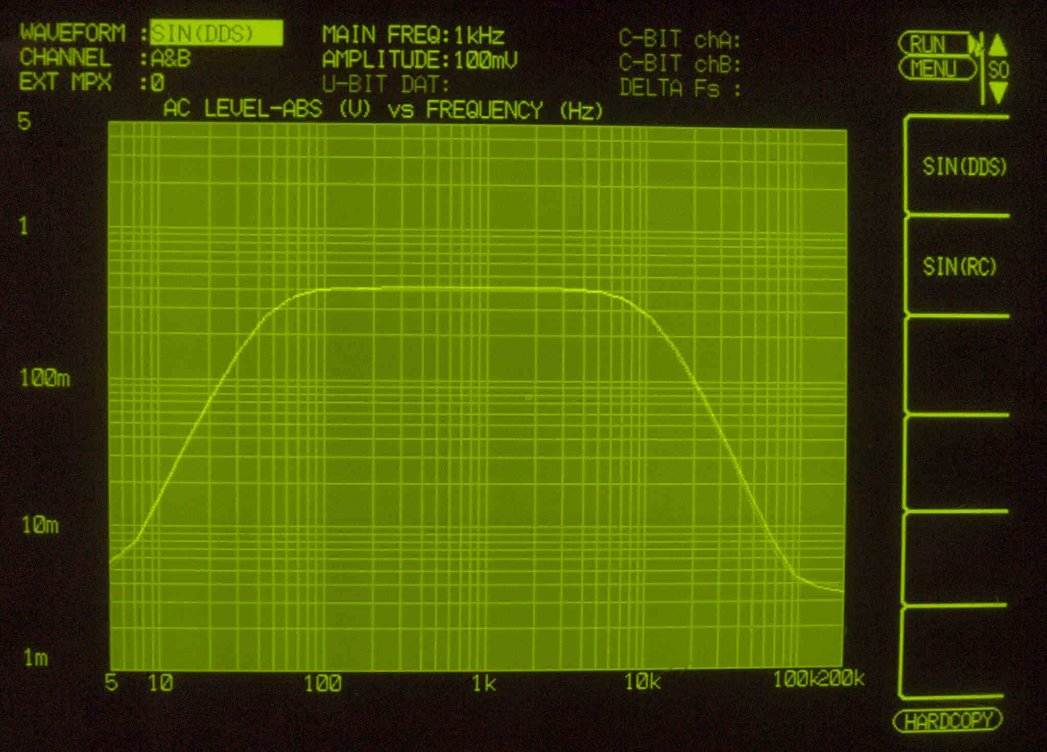 L側出力電圧1V、   1.6%歪み、 100HZ。