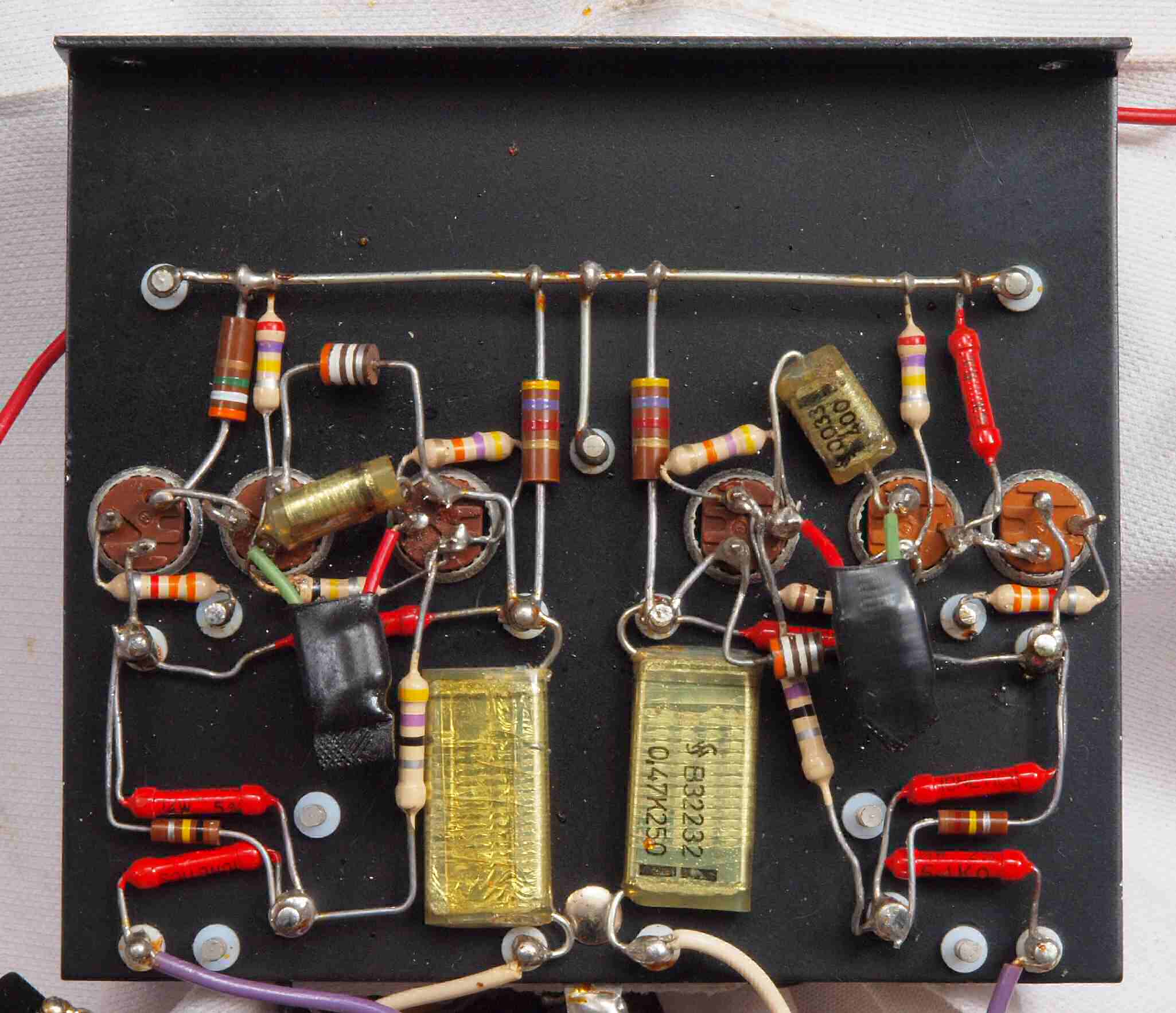 | C34. 修理後 Tone Amplifier Bord Back。 フイルムコンデンサー2個交換。 | ||||||||||||||||||