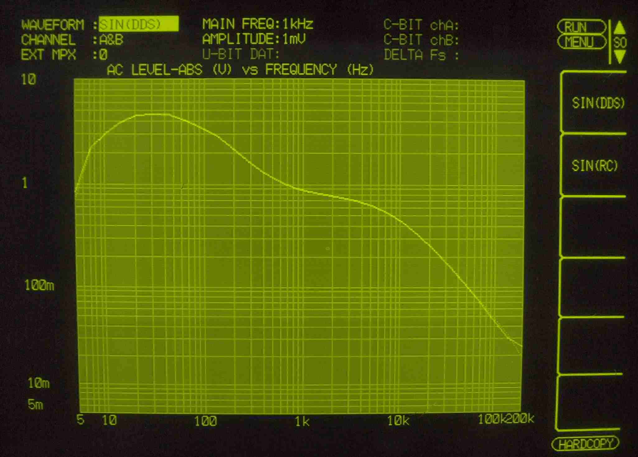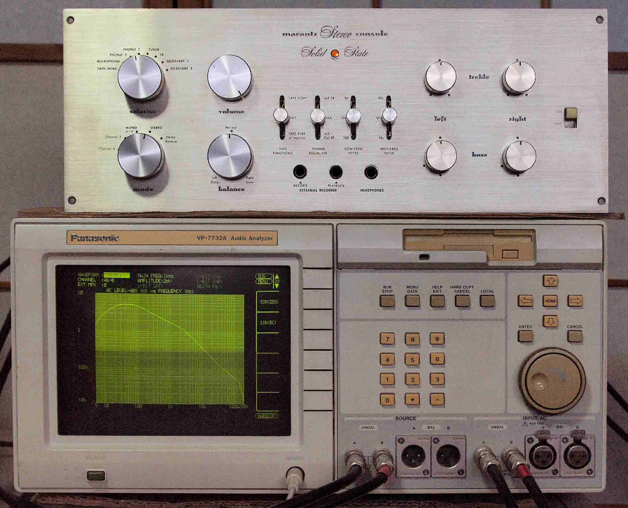 | F. 上位測定器による 調整・測定。 画像をクリックすると、大きく(横幅2050ドット)表示されます。 F1. 下のオーディオアナライザーVP−7732Aで自動測定。 |