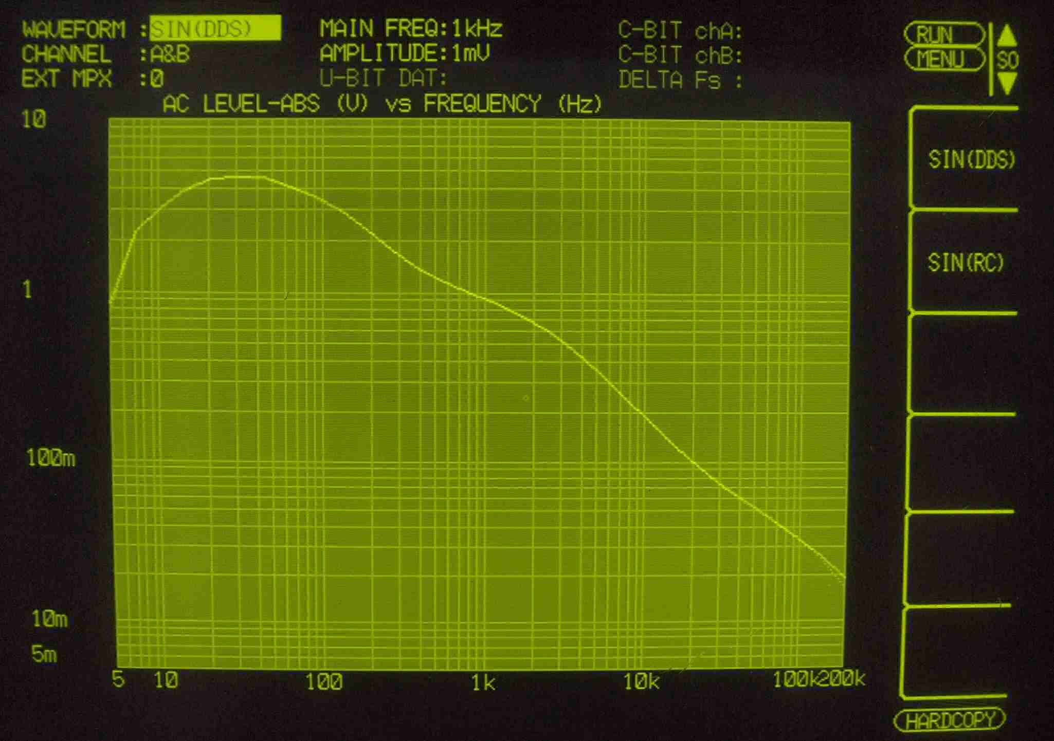 | F51. 入出力特性測定(MM入力)=PHONO−1(OLD78) MM入力、入力電圧=1mV一定入力、VRはmax、左出力=薄(細い)色 右出力=濃い(太い)色 |