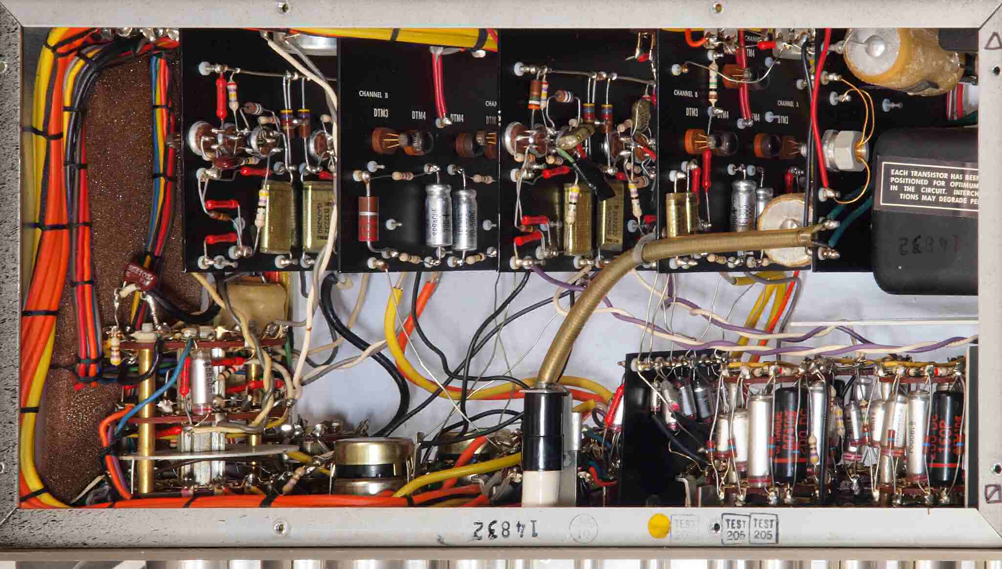 | C14. 修理後 Low_Level Amplifier Bord Back。フイルムコンデンサー2個交換、フイルムコンデンサー2個追加。 | ||||||||||||||||||
