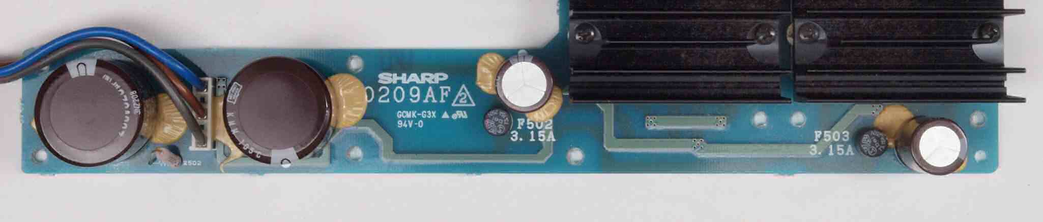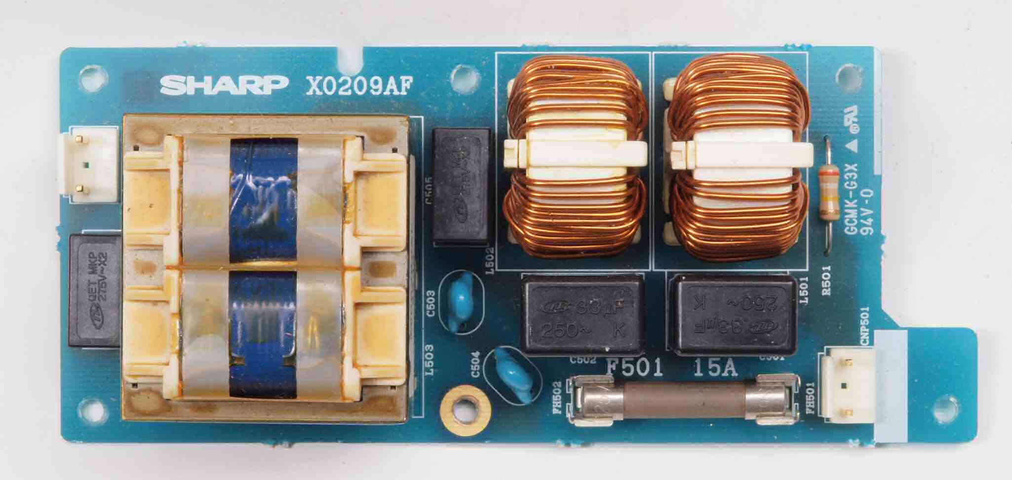 C41. 修理中 電源フイルター基板。 電源ヒューズは15A、 100V×15A=1.5KVA。