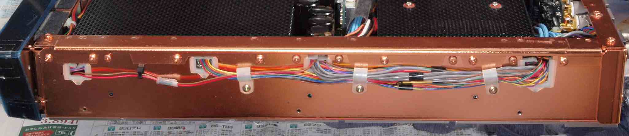 A27. 点検中 上下蓋・左右パネル・センターブースを取り、右横から見る。前回の修理で右パネル押さえ止ビスを2本無。