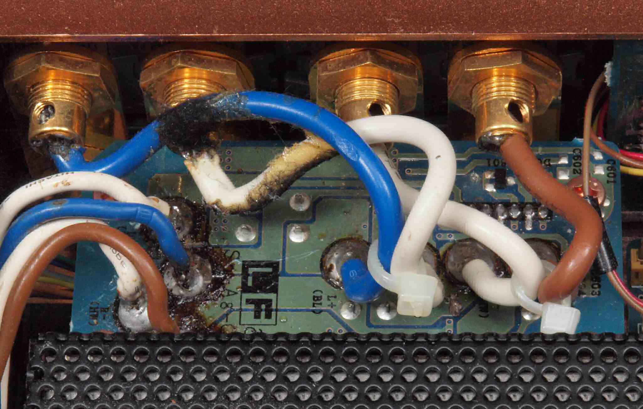 C92. 修理中 3Pインレット裏、SP出力接続端子裏。