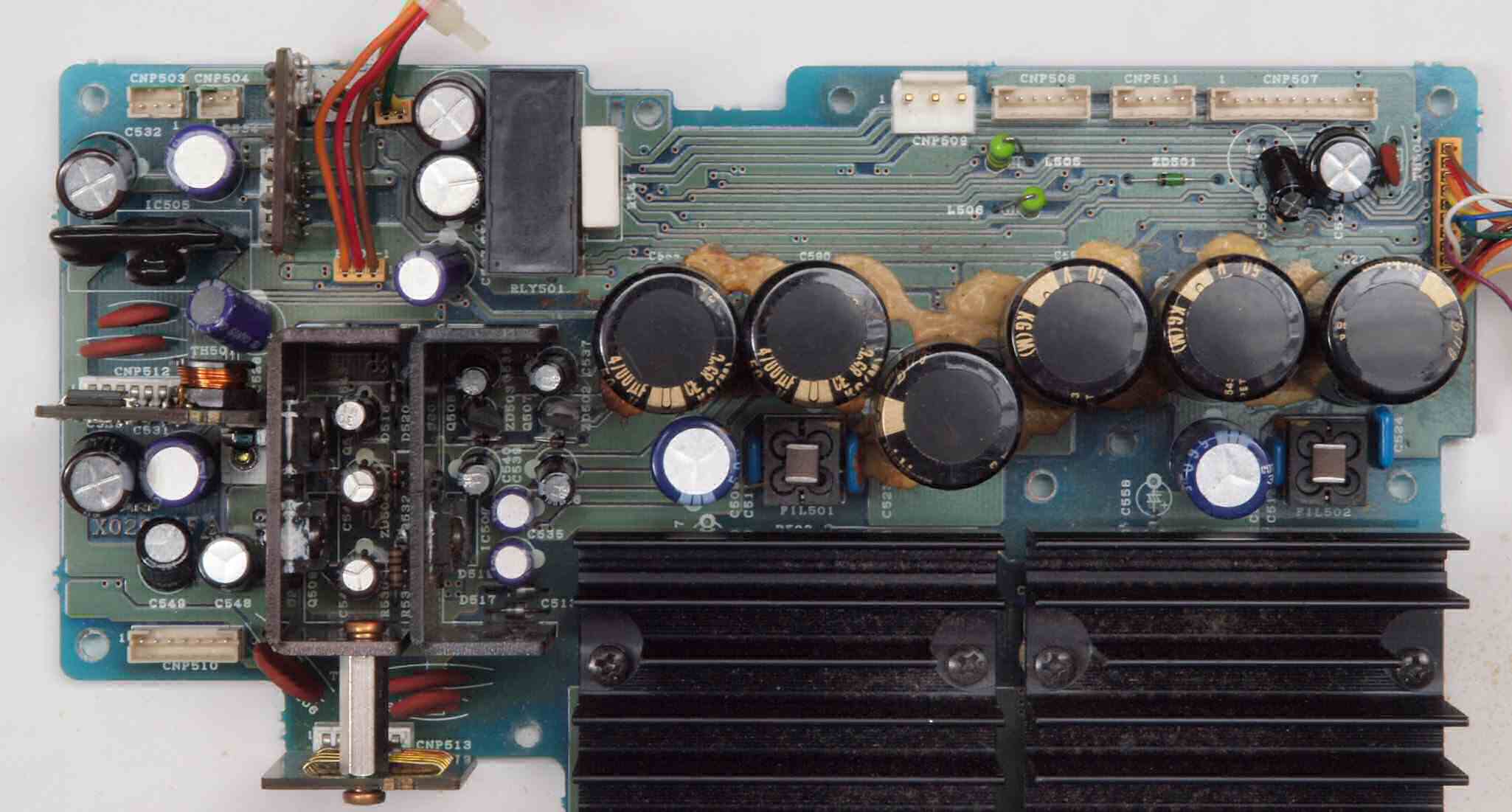 C32. 修理中 取出した、劣化したDC−DCコンバーター。出力48V/500W。