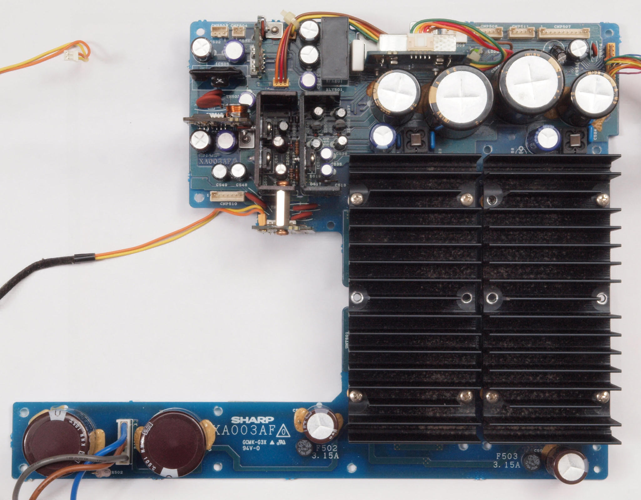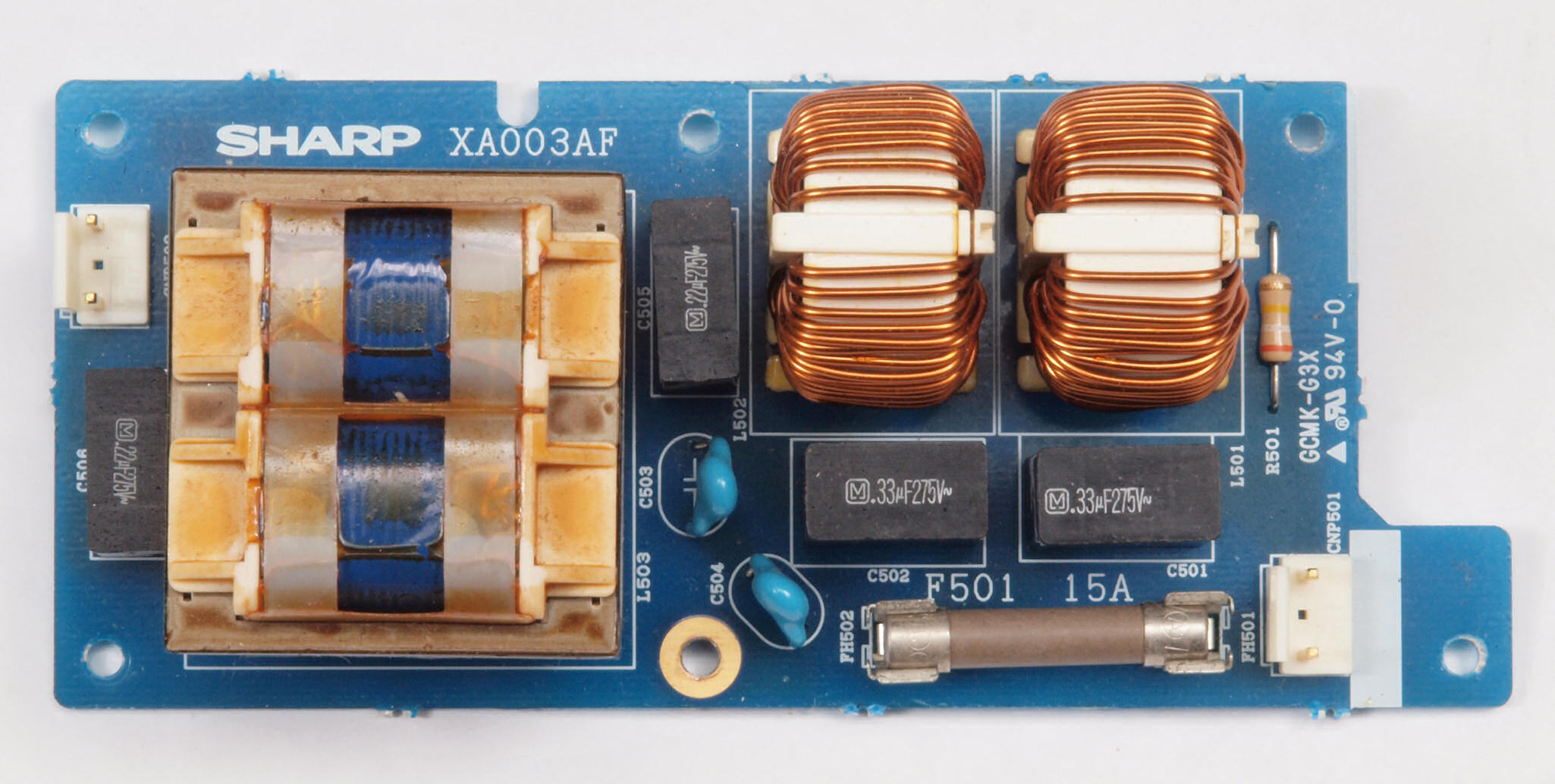 C51. 修理中 電源フイルター基板。 電源ヒューズは15A、 100V×15A=1.5KVA。