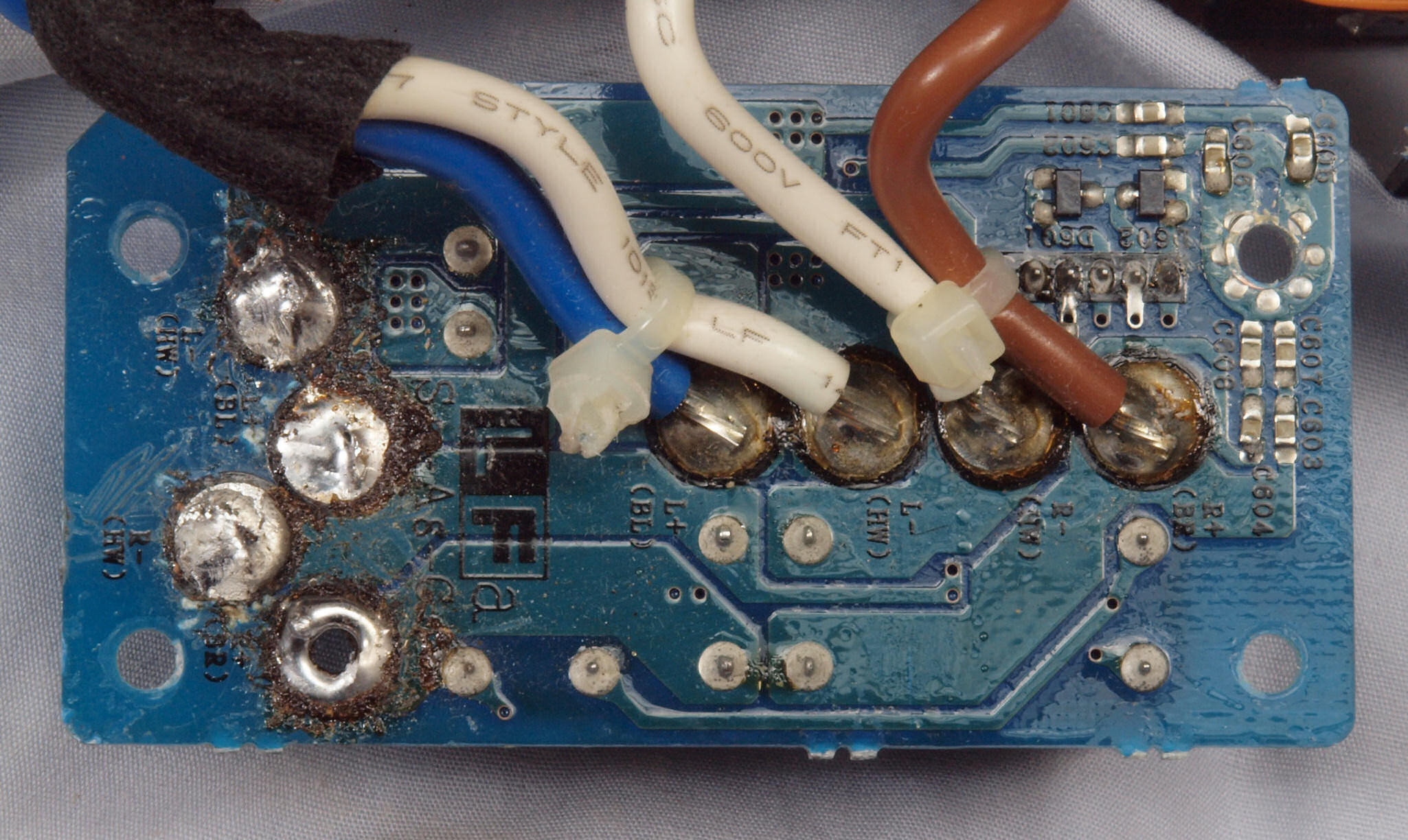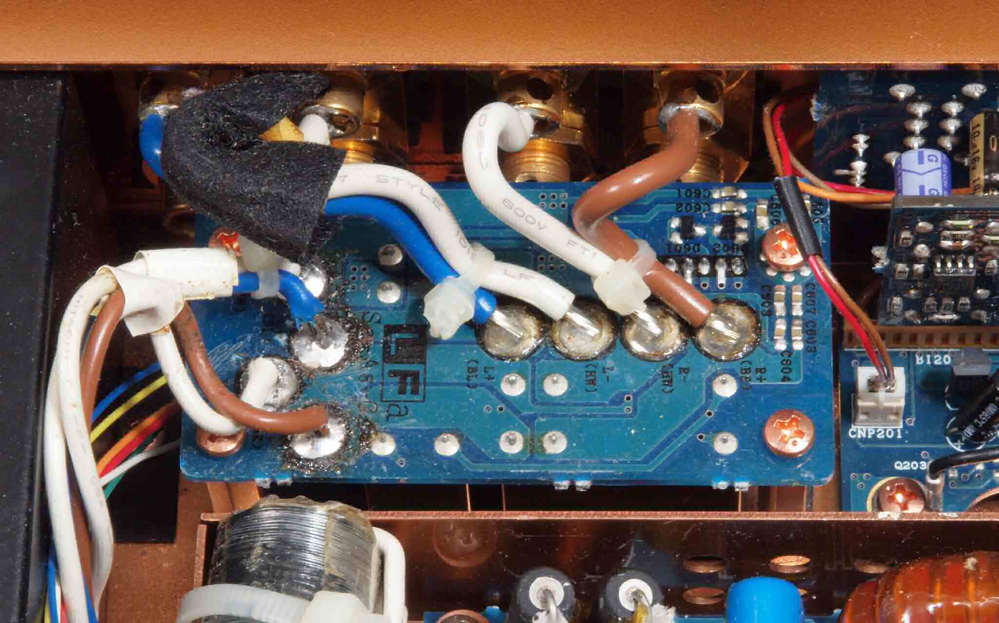 CA2. 修理中 3Pインレット、SP出力接続端子裏。