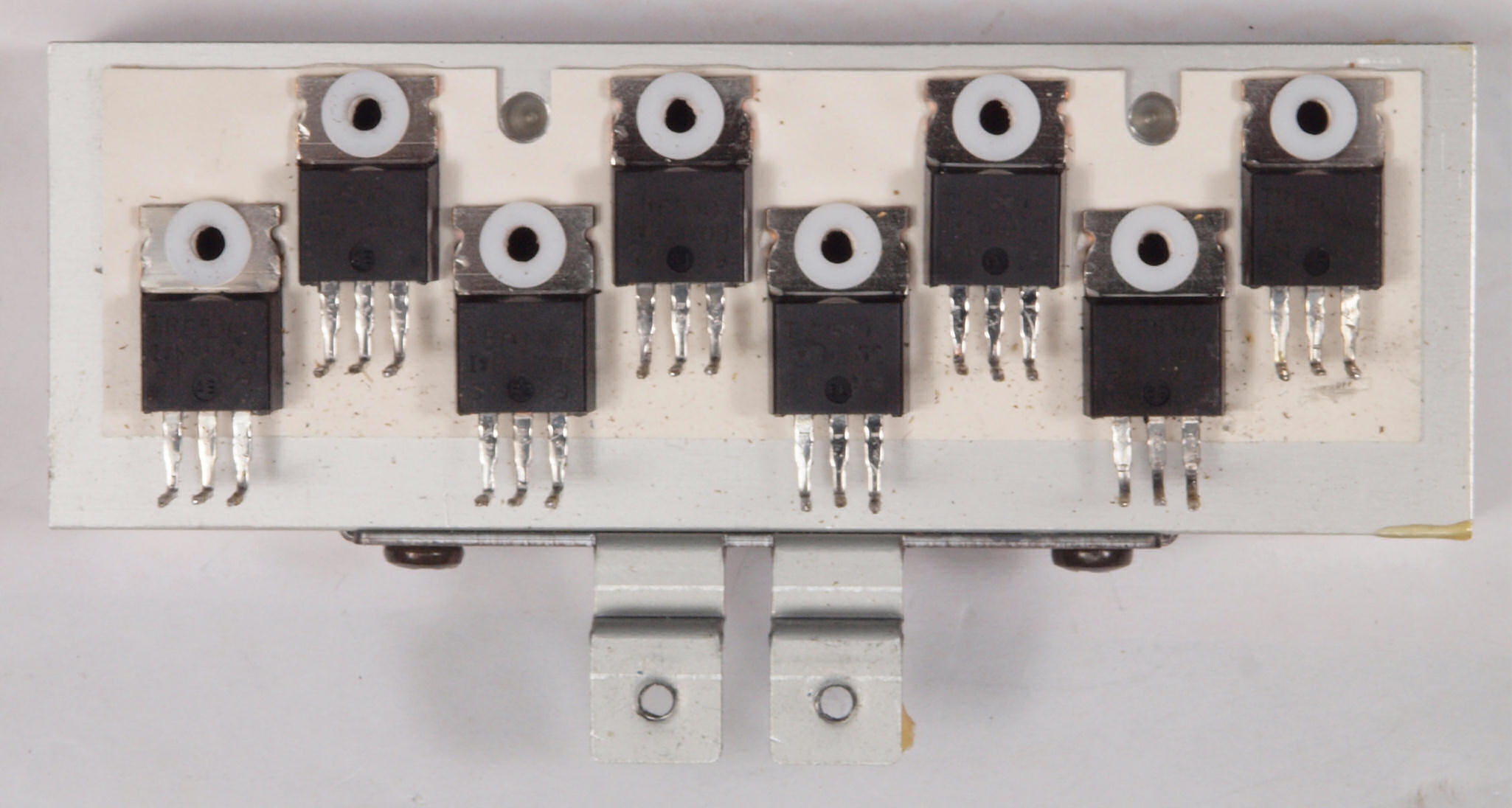 A43. 点検中 さらにもう1レーン購入した終段FET(電界効果トランジスター)。上の小さい列はドライブIC。