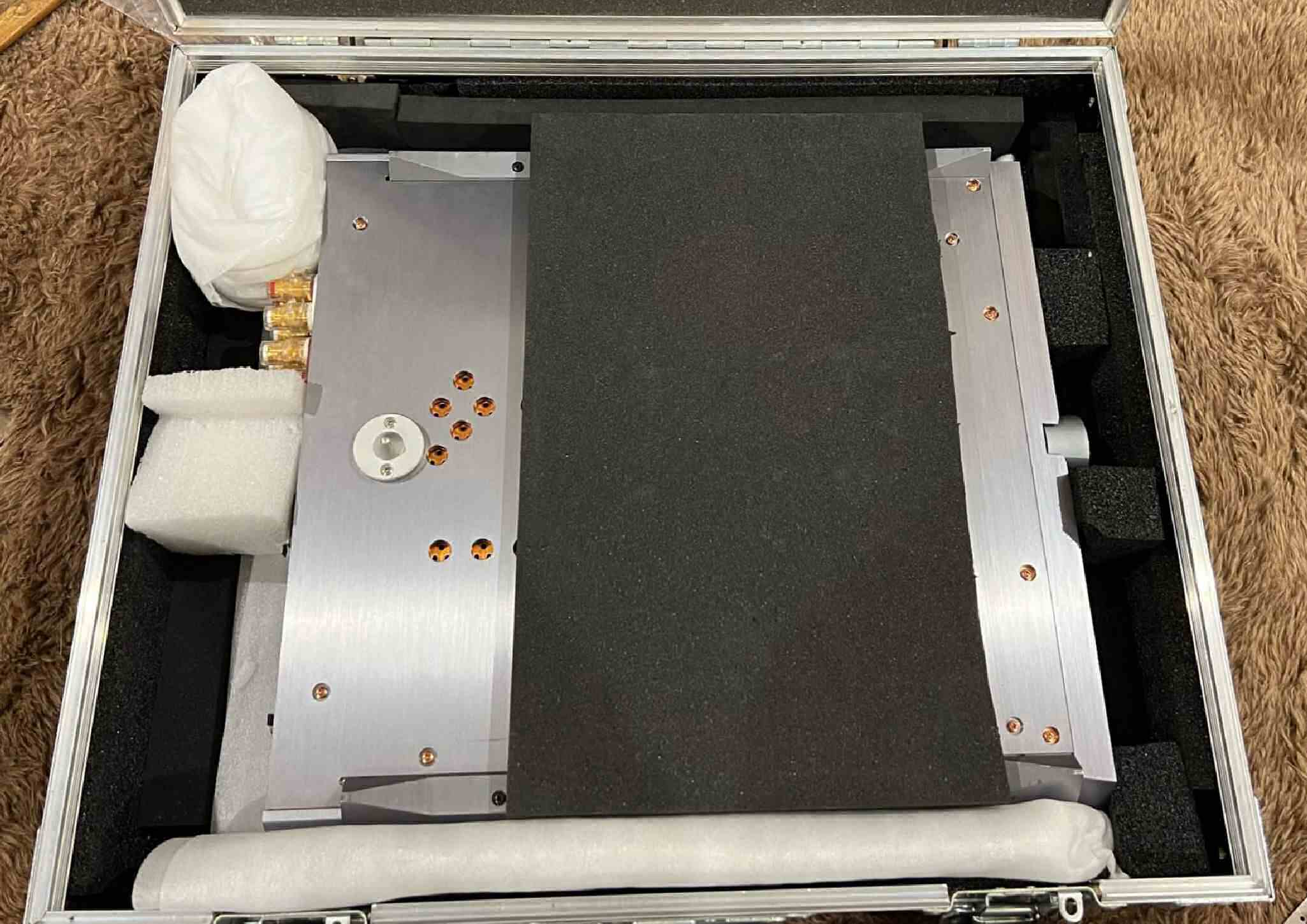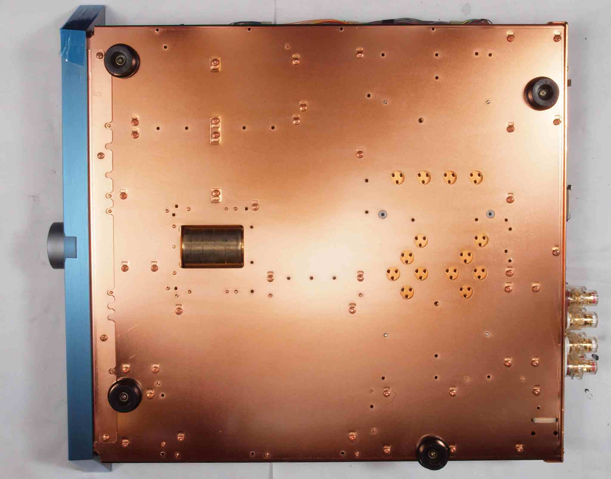 A36. 点検中 上下蓋・左右パネル・センターブース・左右パネル押さえを取り、下から見る。ゴム足は修理用。