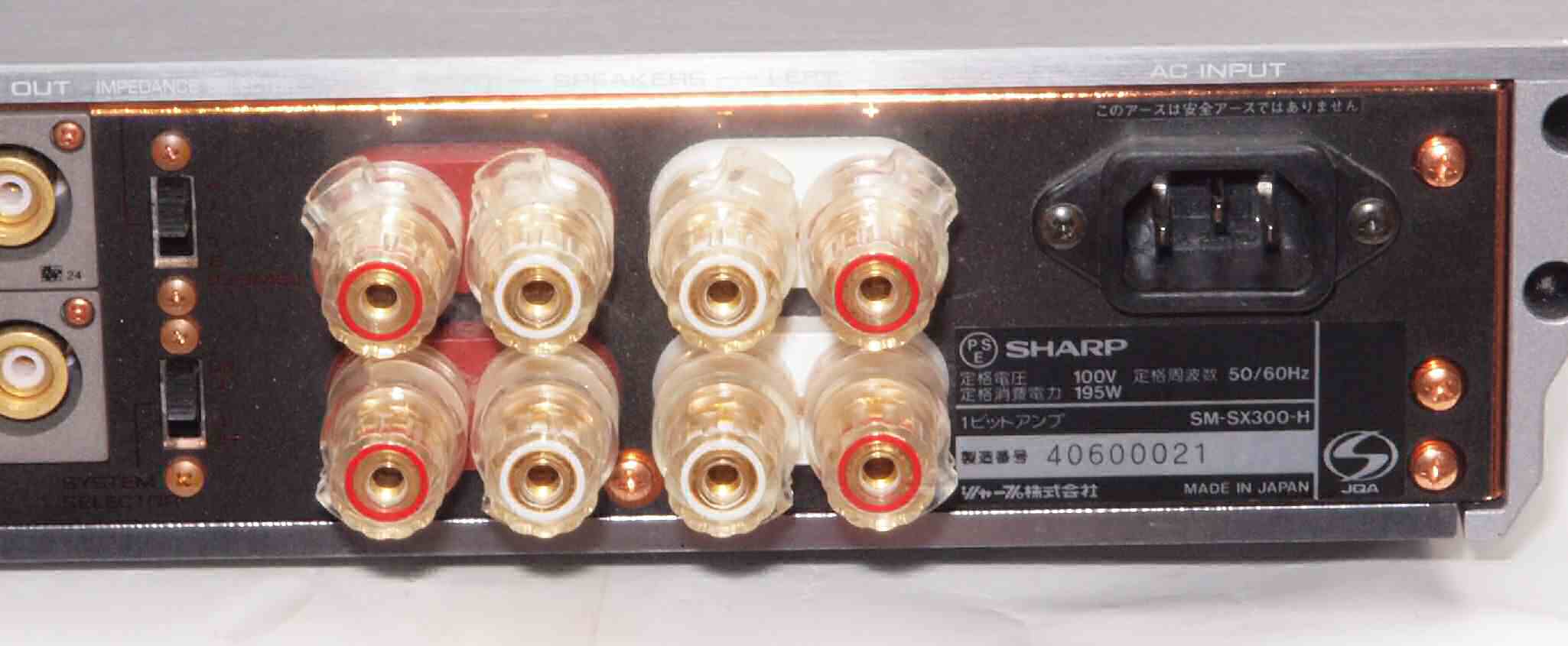 左右SP出力のアース側も接続(共通にする)してもいけません。