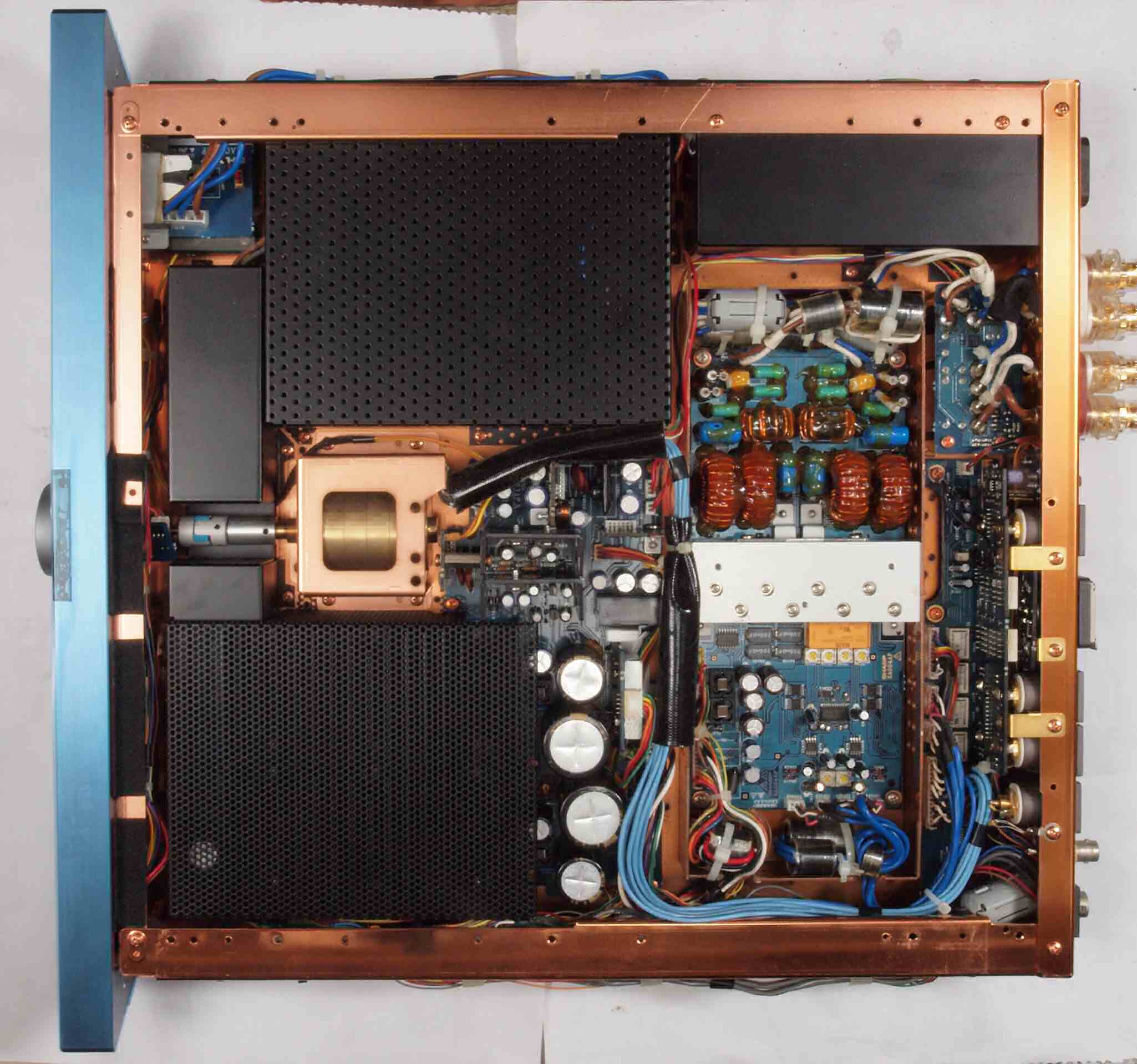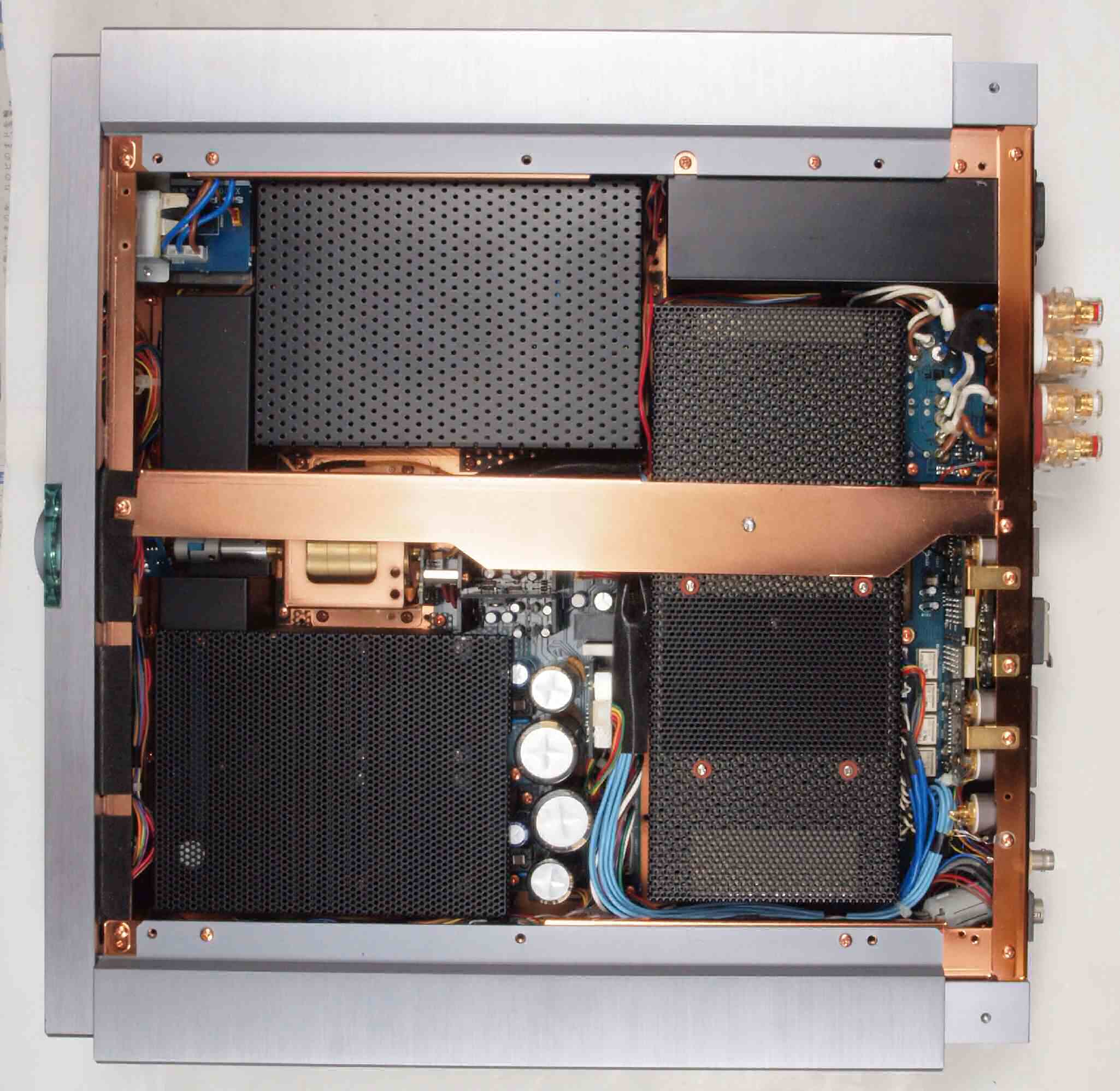 A23. 点検中 上下蓋・左右パネル・センターブースを取り、左横から見る。左パネル押さえ止ビスを2本無。