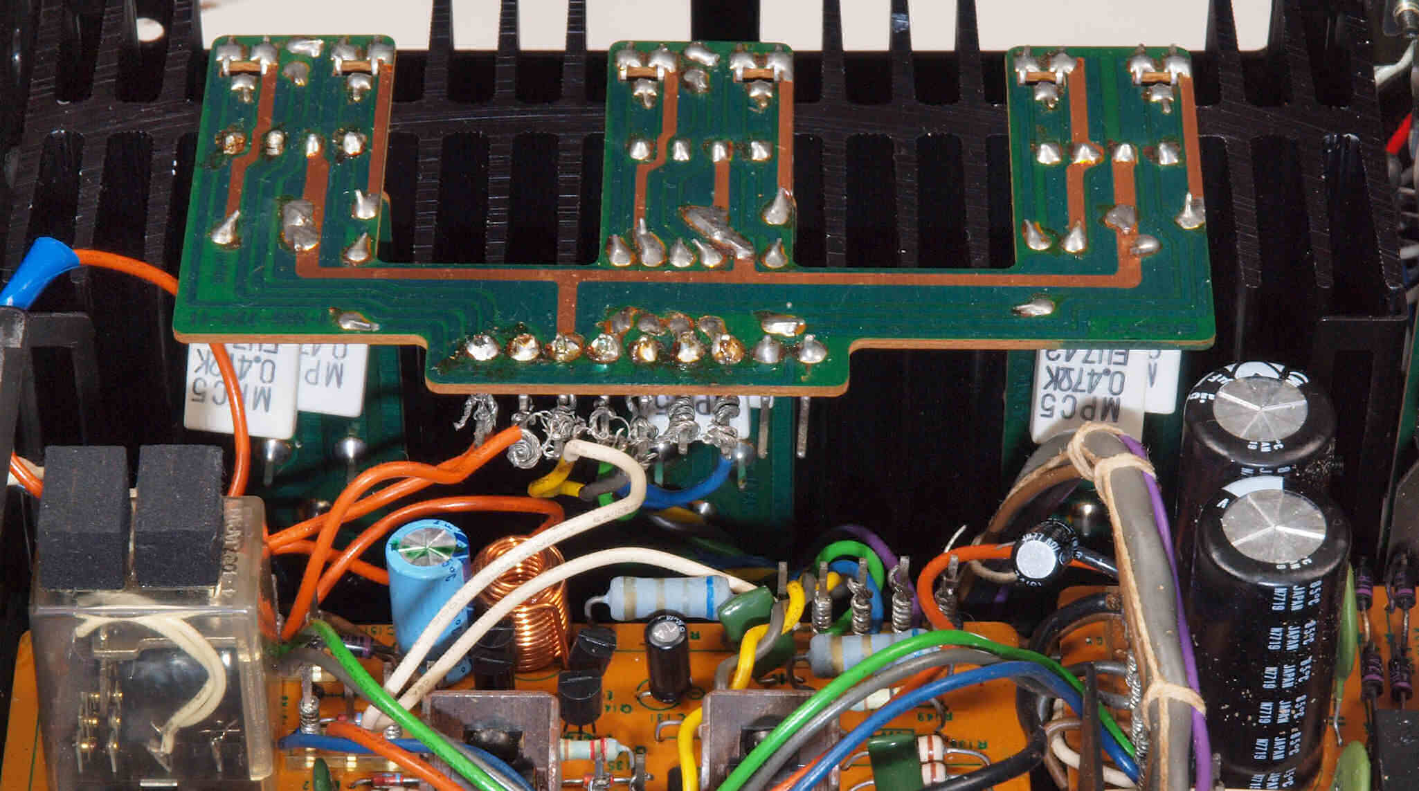 | A32. 点検中 L側 終段V−FET(縦型電解トランジスター)、 上はカスケードTR(トランジスター)。 | ||||||||||||||||||||||||||||||||||