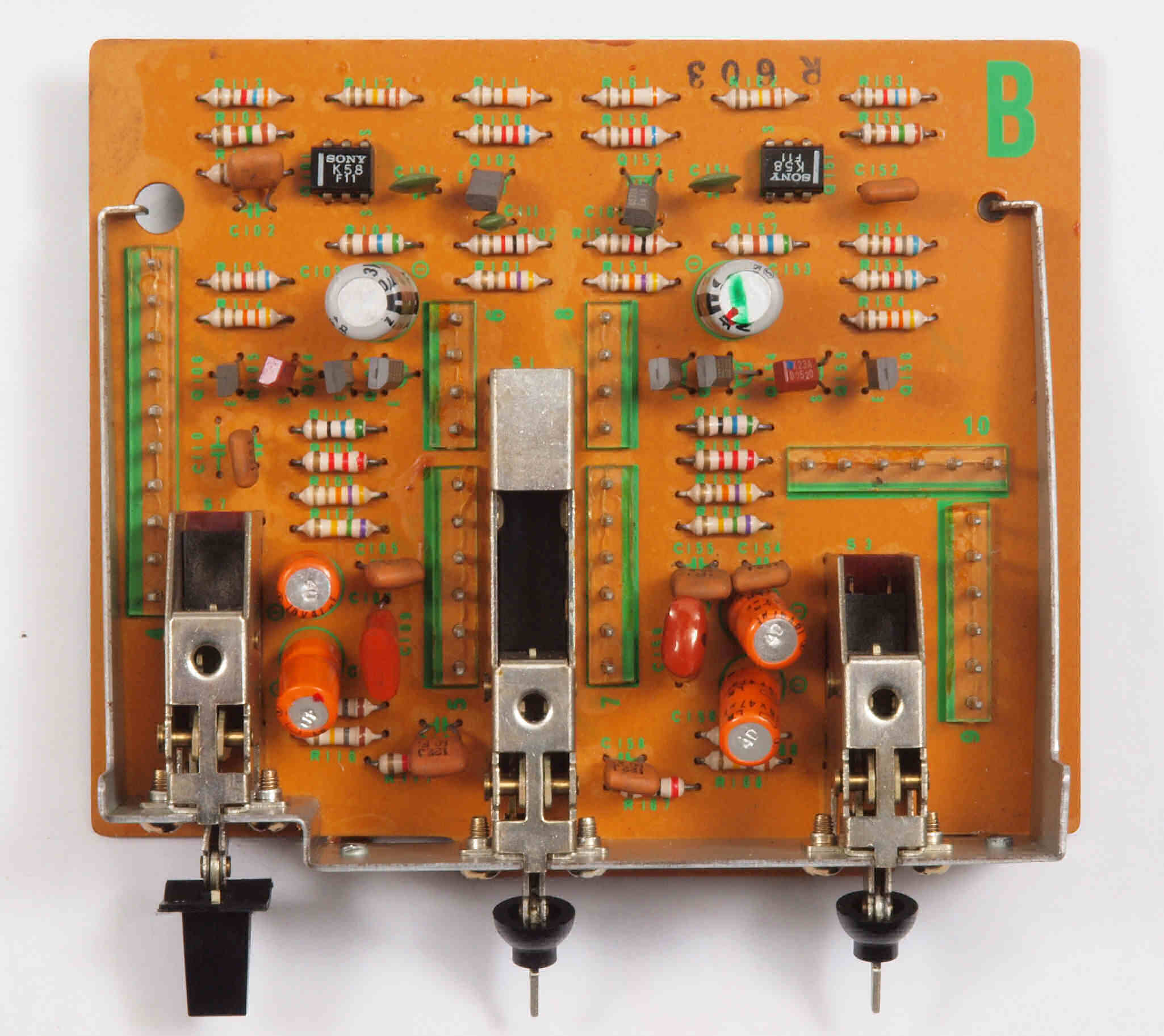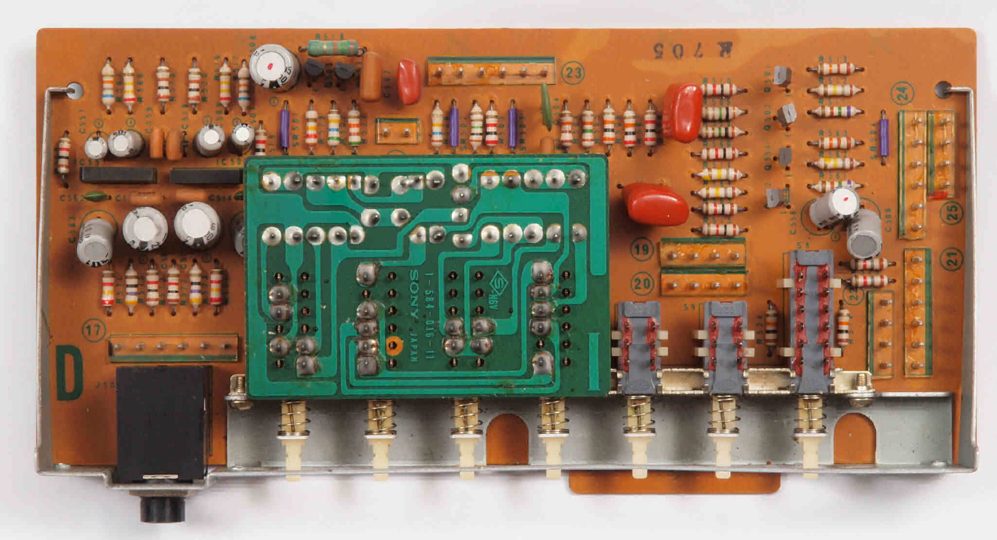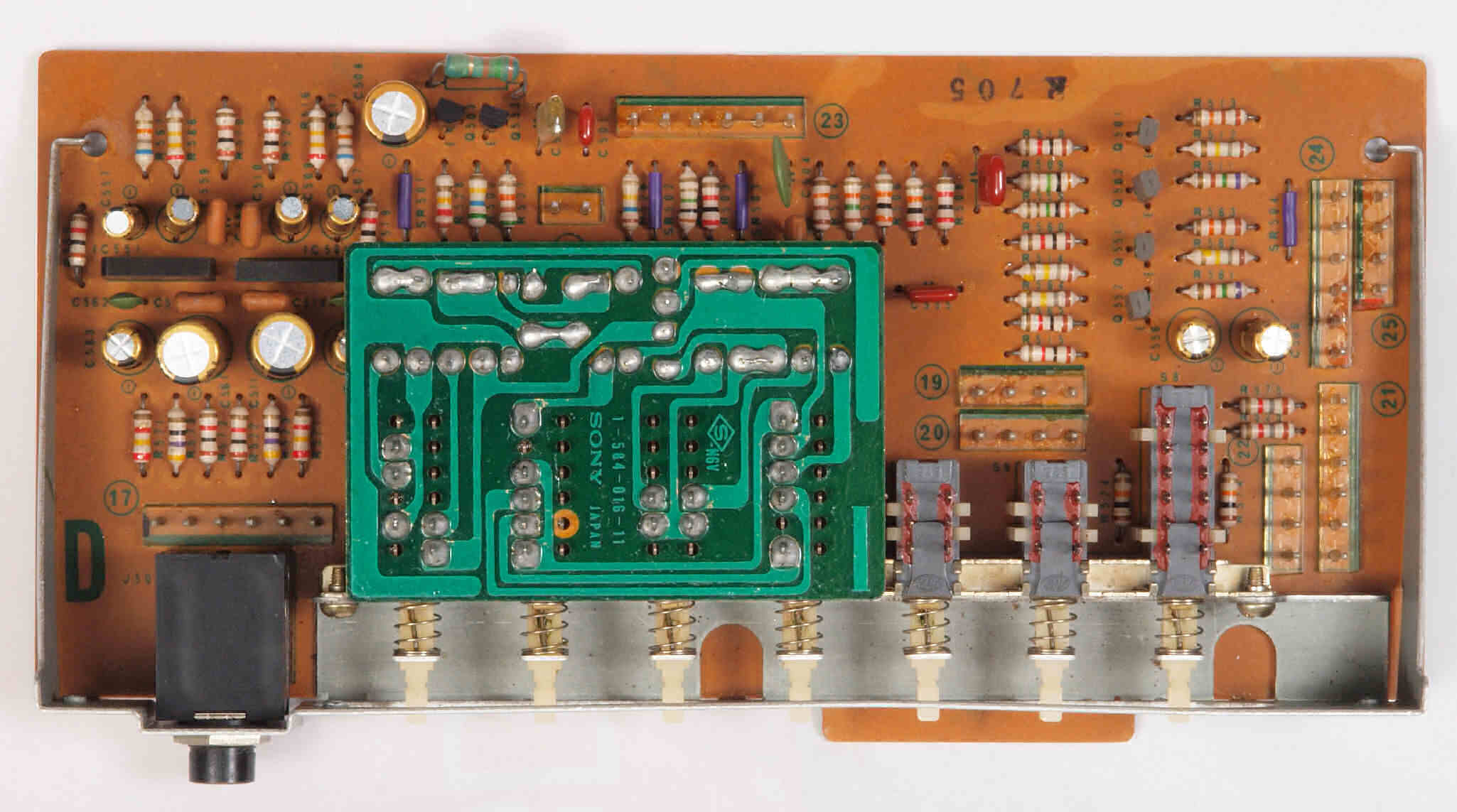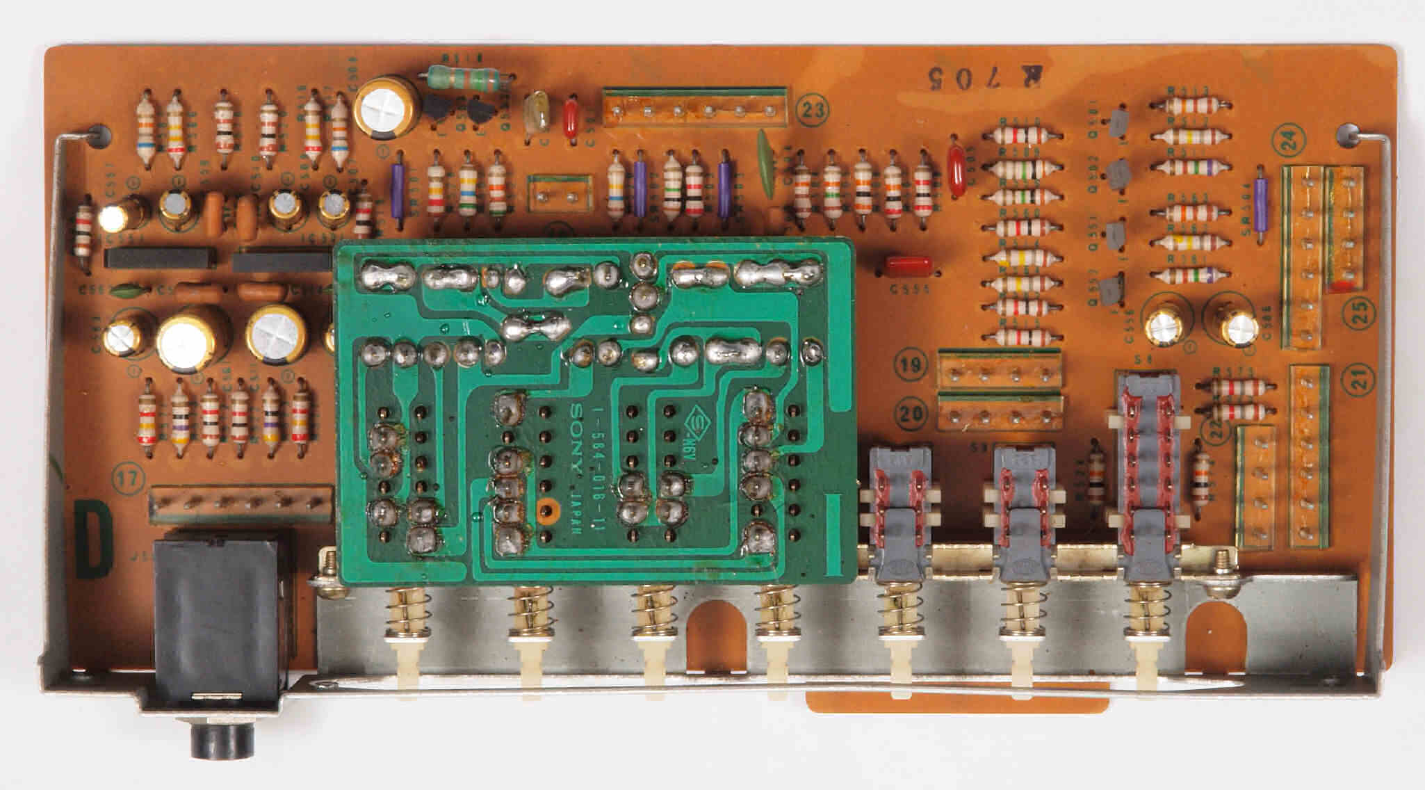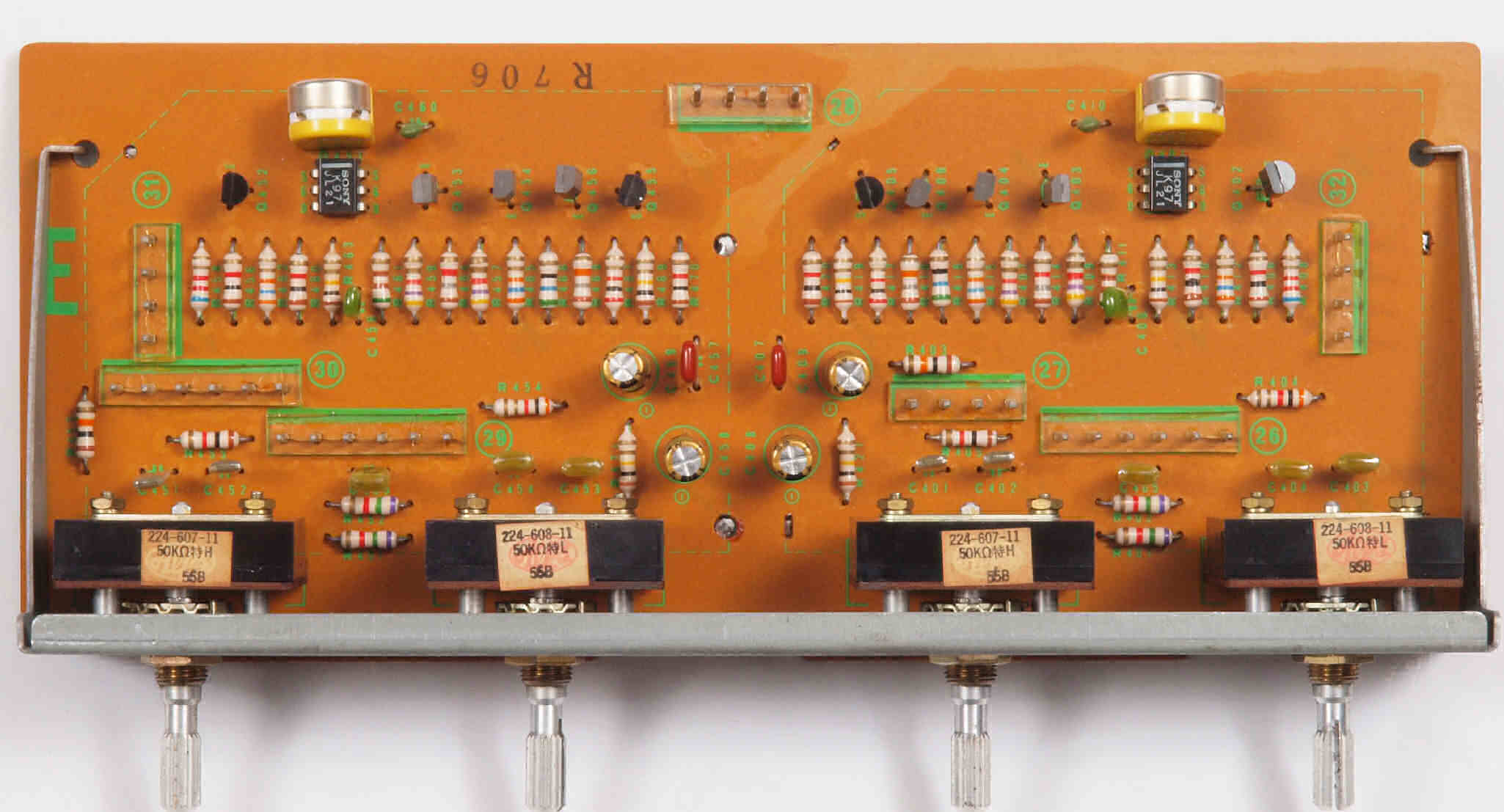 | C32. 修理後 トーン基板。 FET(電界効果トランジスター)4個、TR(トランジスター)2個、電解コンデンサー4個、半固定VR2個、フイルムコンデンサー12個交換。 | ||||||||||||||||||||||||||||||||||||||||