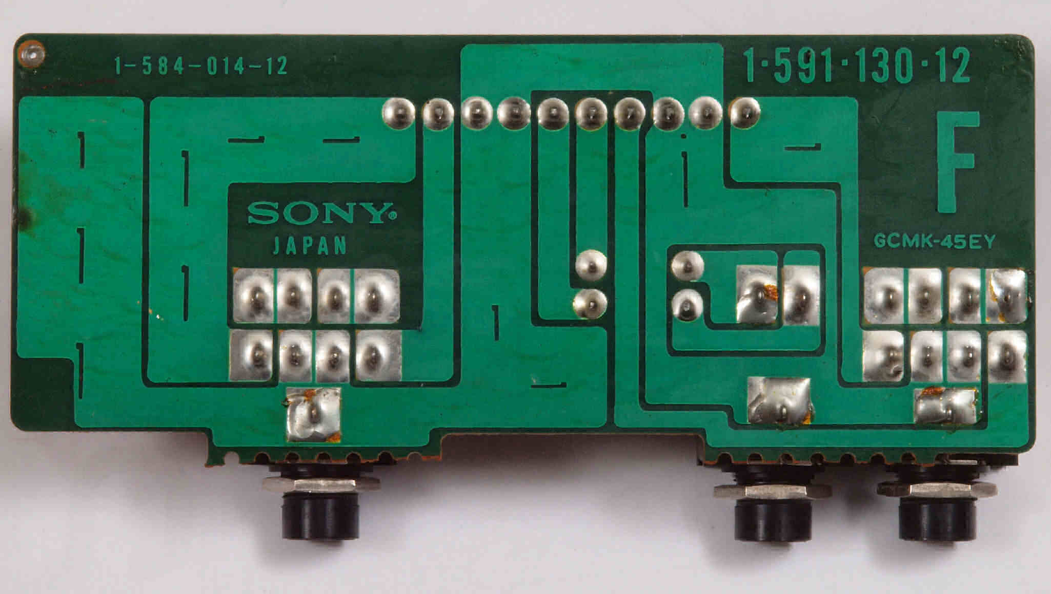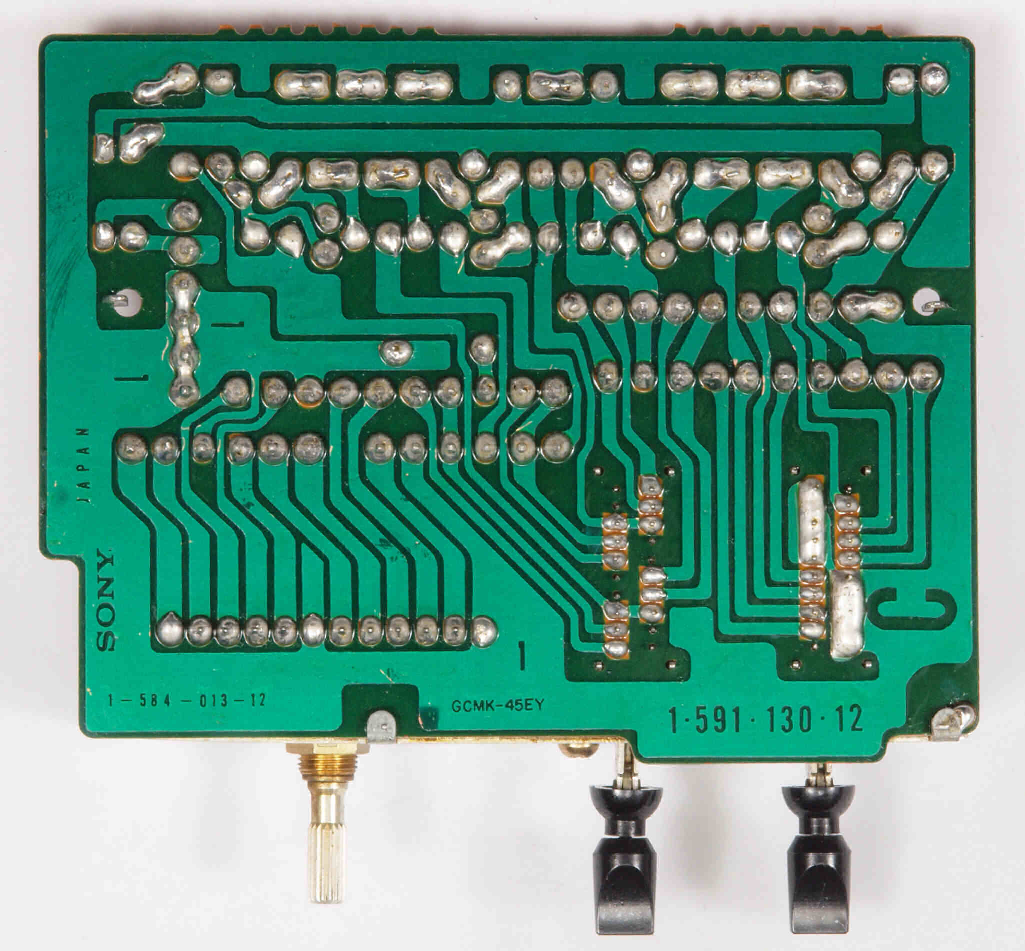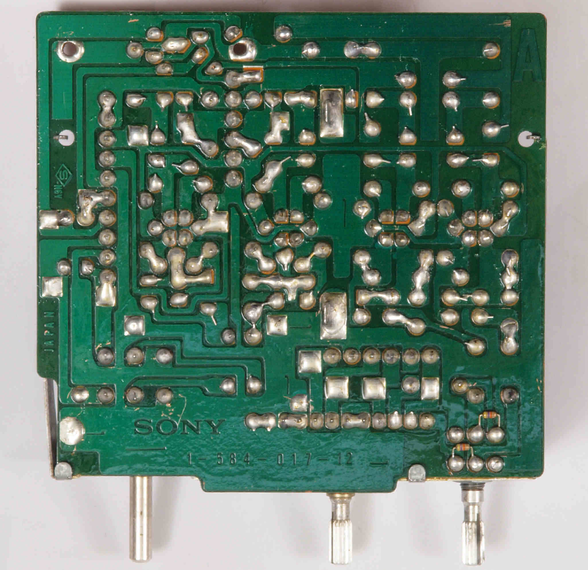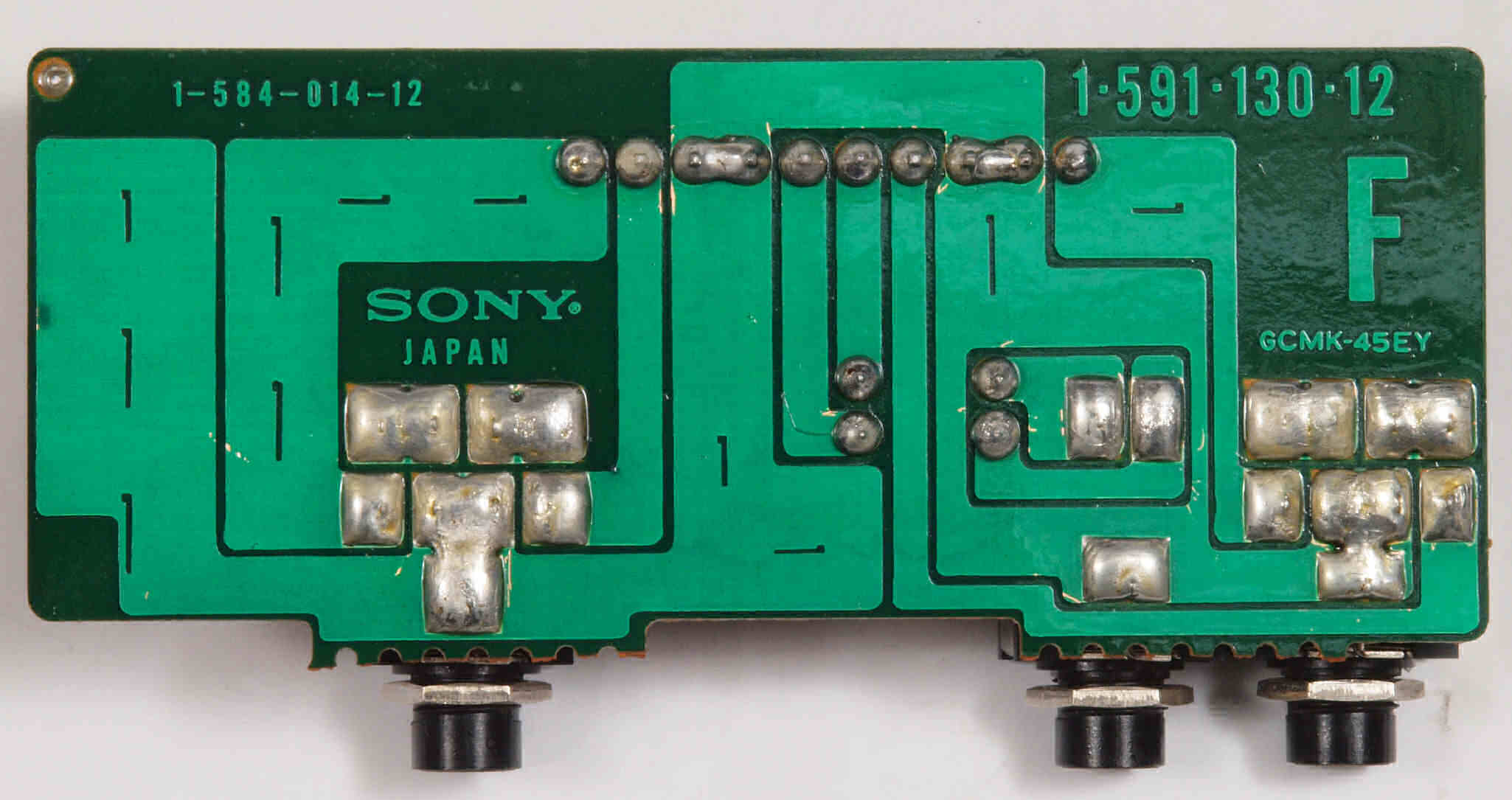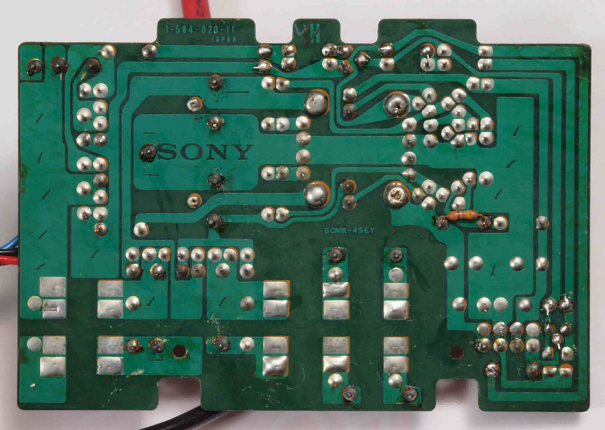 | C74. 修理(半田補正)後 入出力RCA端子郡基板裏。 テフロン絶縁RCA端子に交換し、半田を全部やり直す。 | ||||||||||||||||||||||||||||||||||||||||