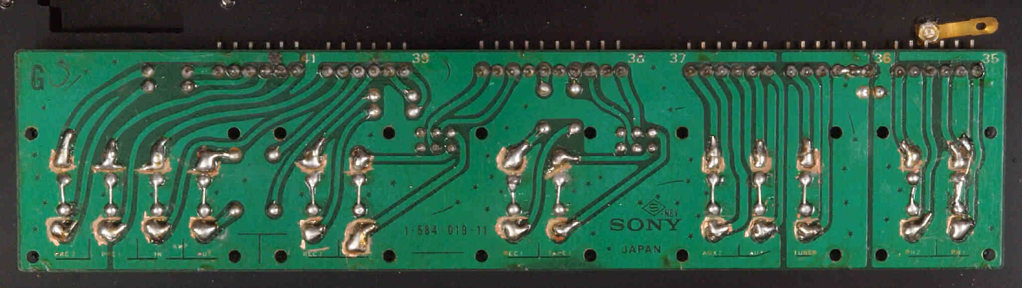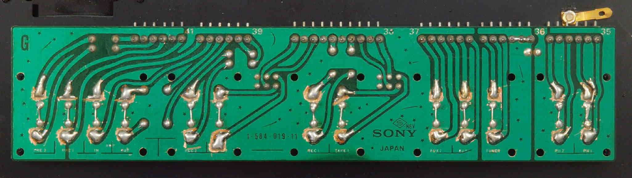 | C64. 修理(半田補正)後 テープコピー・AUX切換SW基板裏 半田を全部やり直す。 | ||||||||||||||||||||||||||||||||||||||||