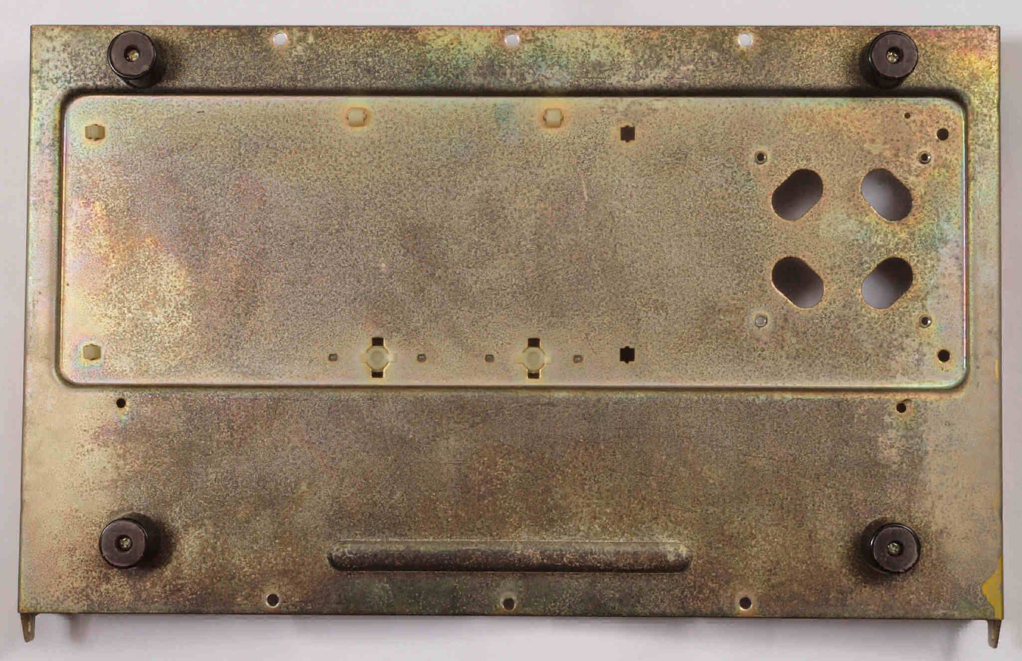 | P. 後パネル、上下カバーの塗装。 画像をクリックすると、大きく(横幅2050ドット)表示されます。 P1. 修理(塗装)前 裏パネル。 |