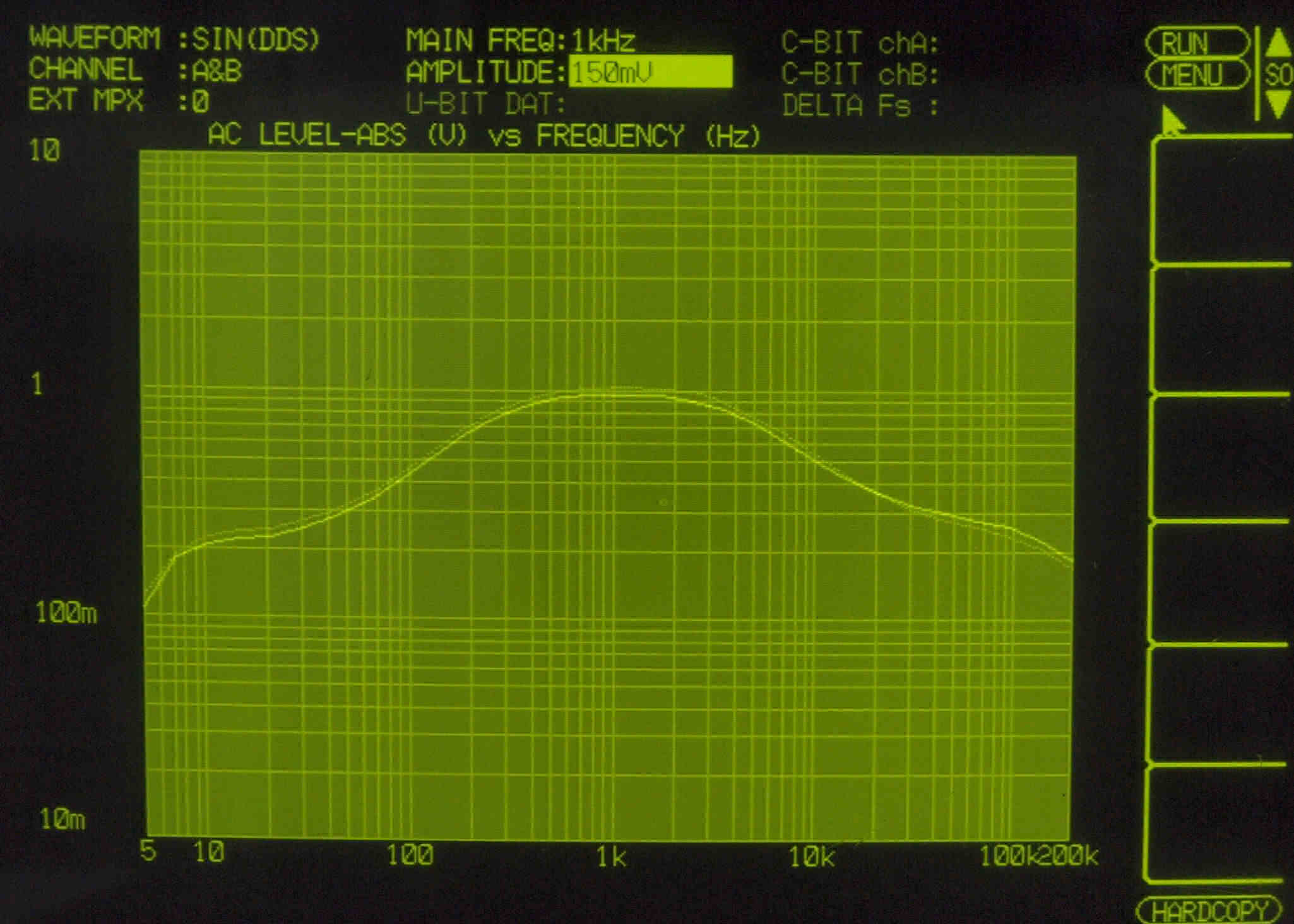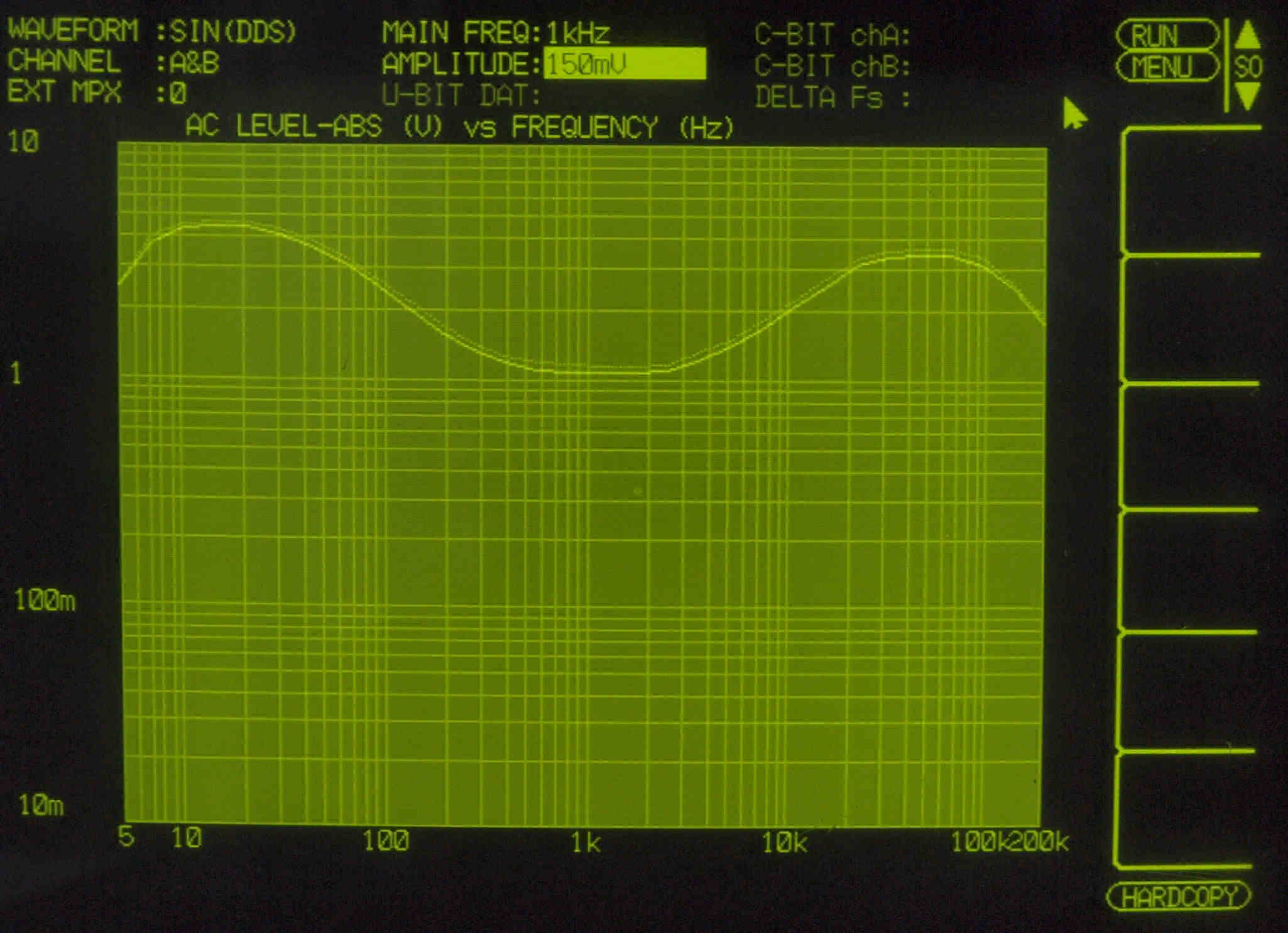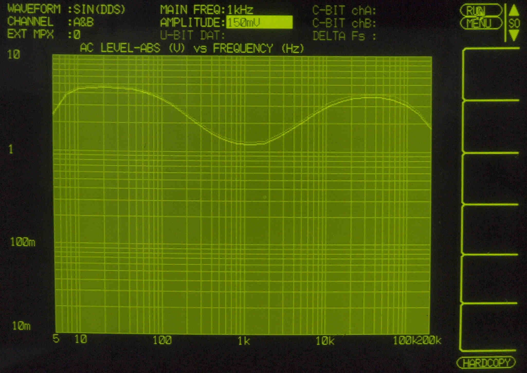 | F. 上位測定器による 調整・測定。 画像をクリックすると、大きく(横幅2050ドット)表示されます。 F0. 下のオーディオアナライザー VP−7732Aで自動測定 |