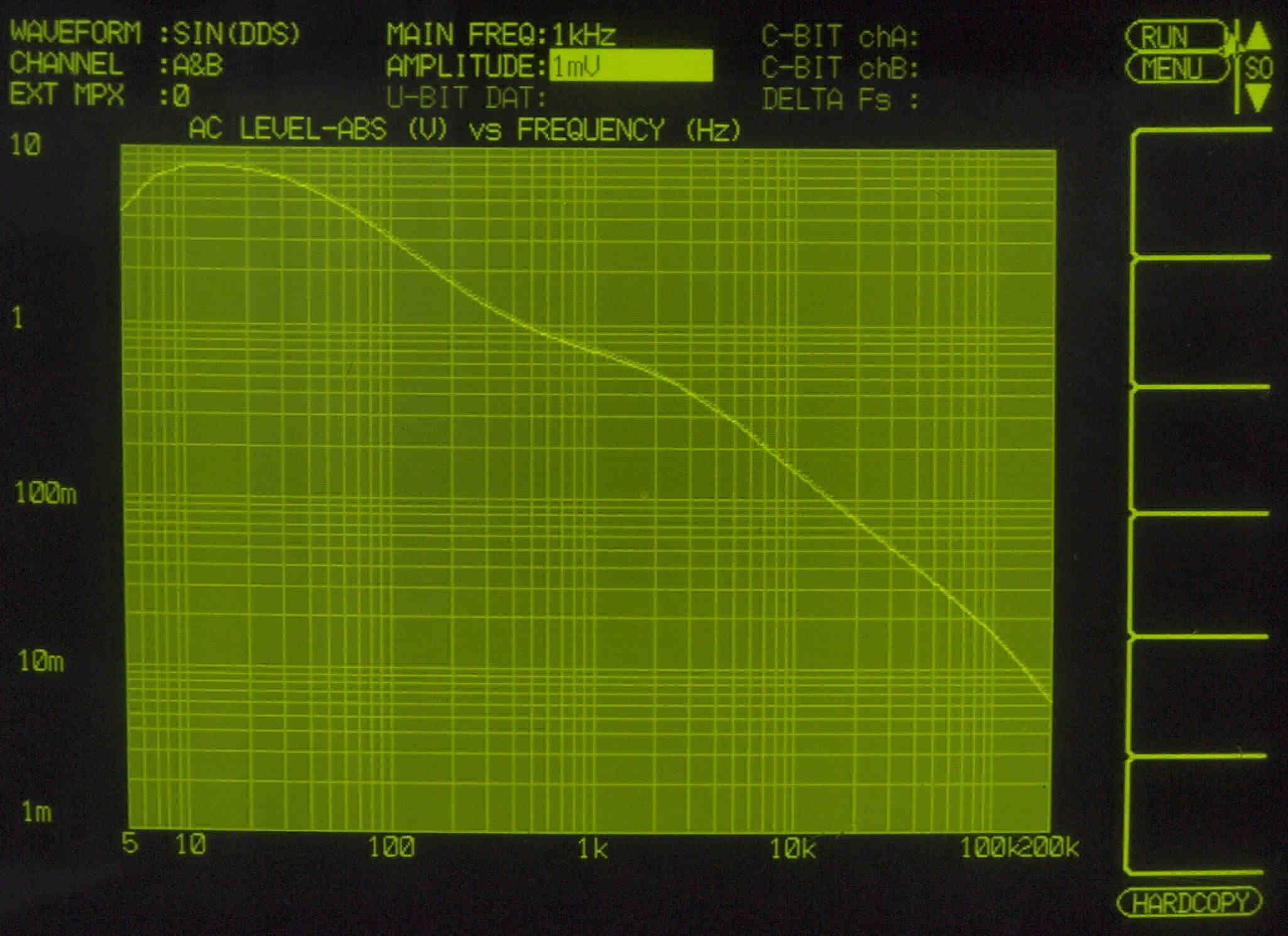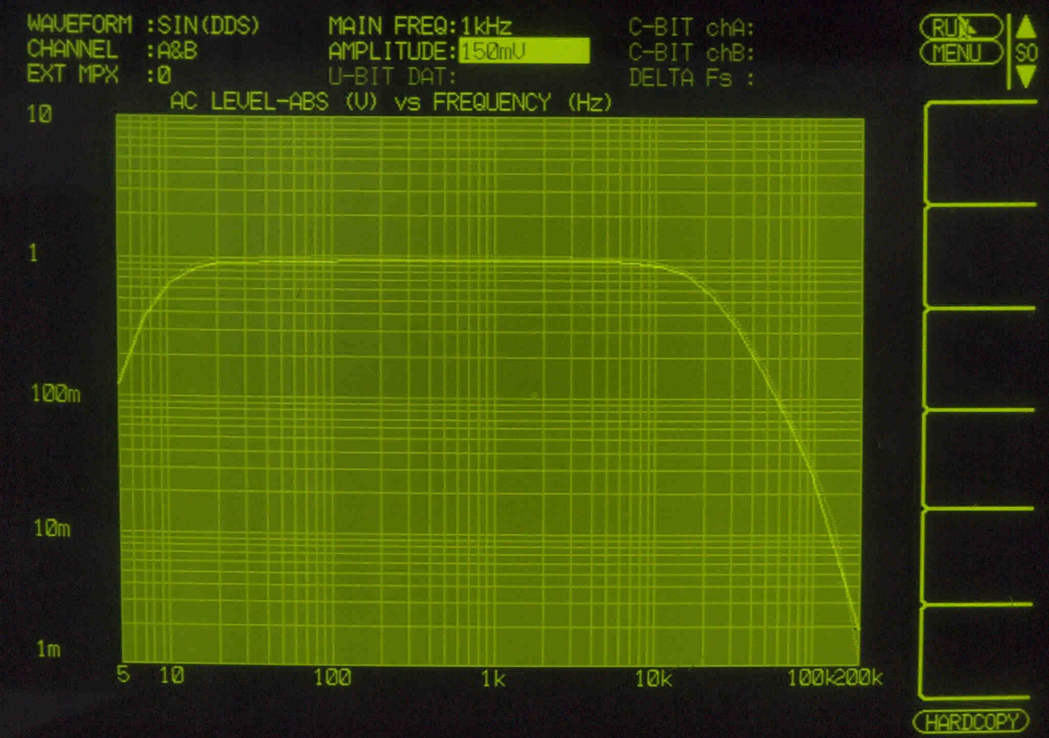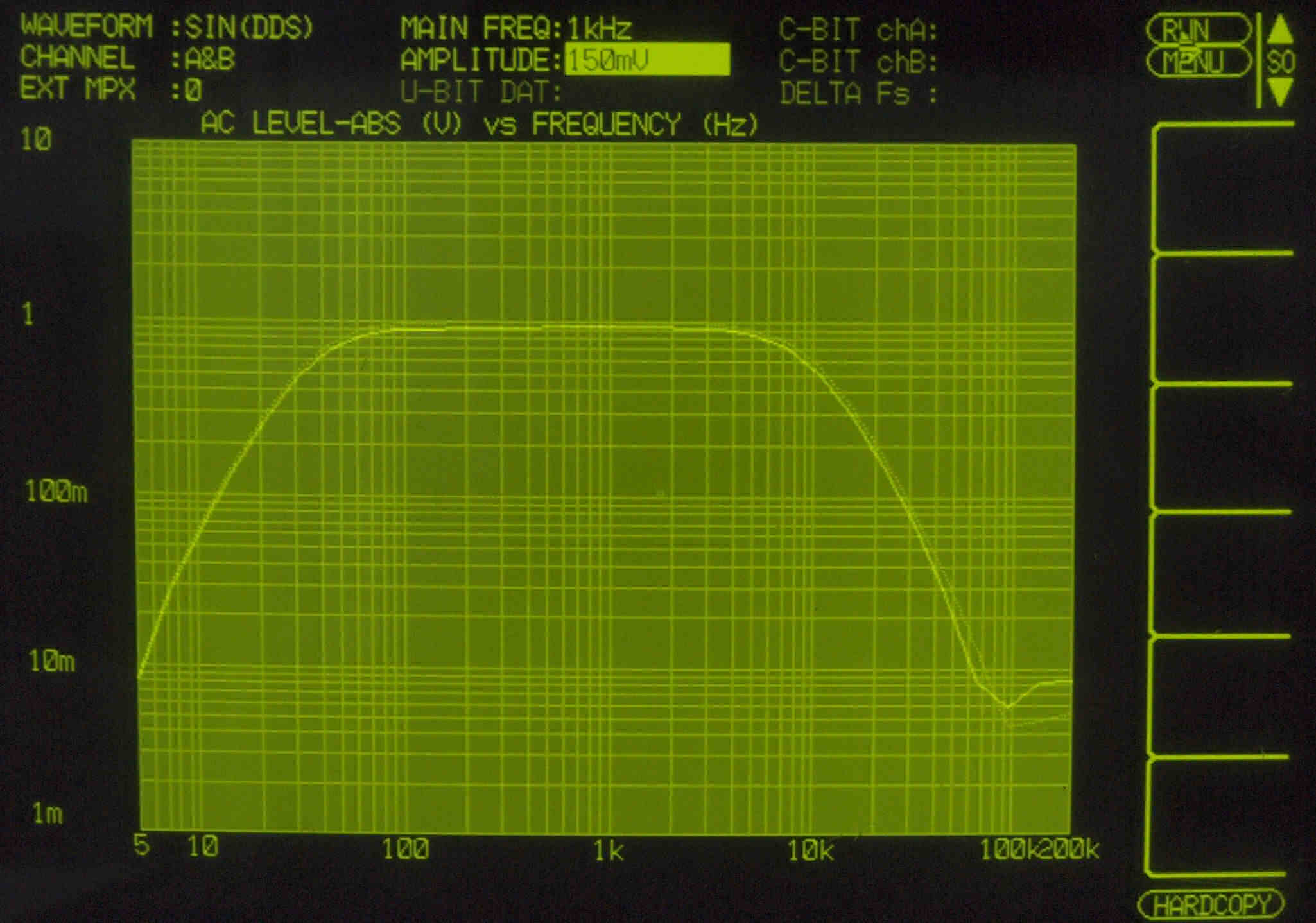 | F. 上位測定器による 調整・測定。 画像をクリックすると、大きく(横幅2050ドット)表示されます。 F0. 下のオーディオアナライザー VP−7732Aで自動測定 |