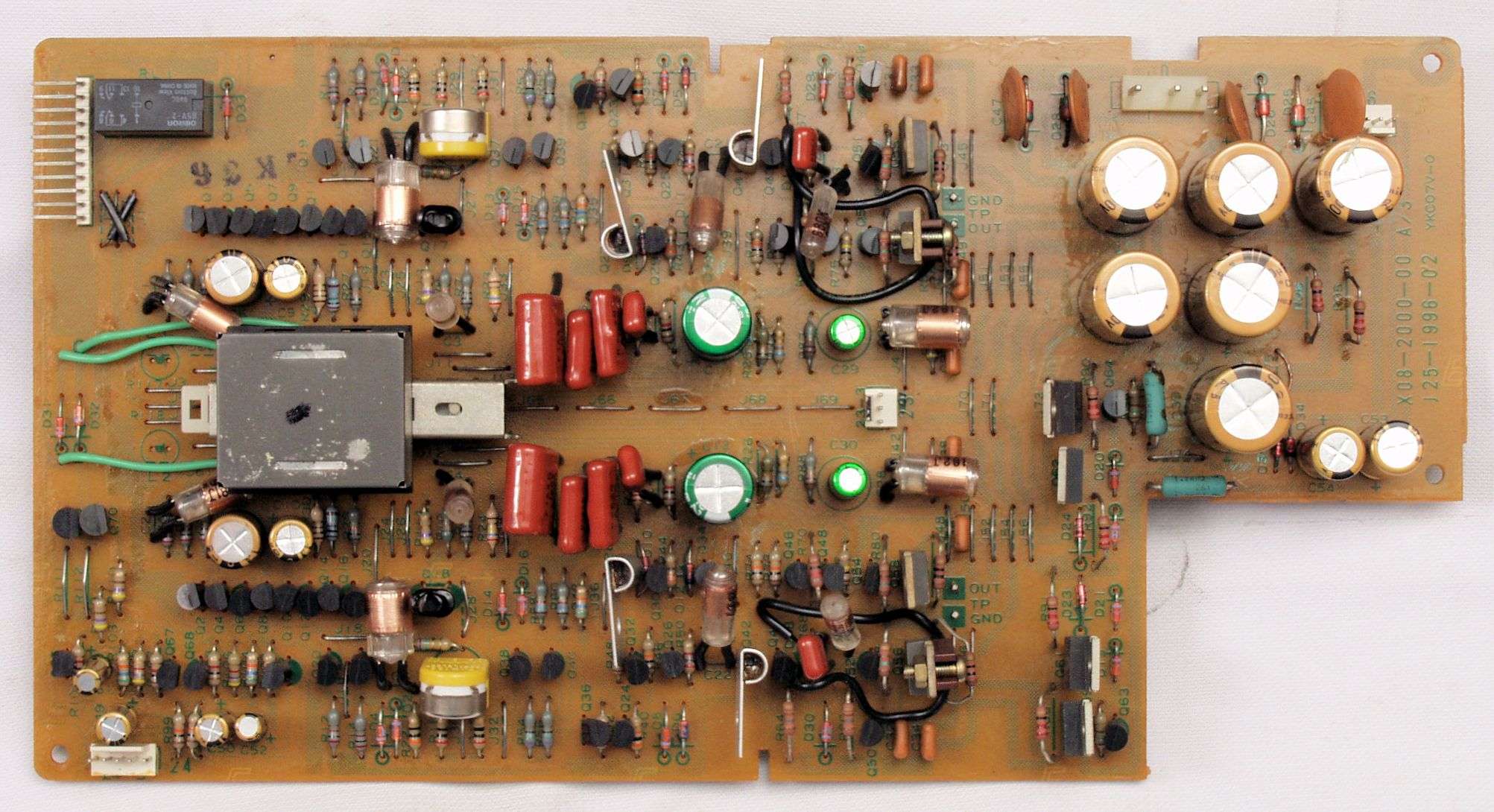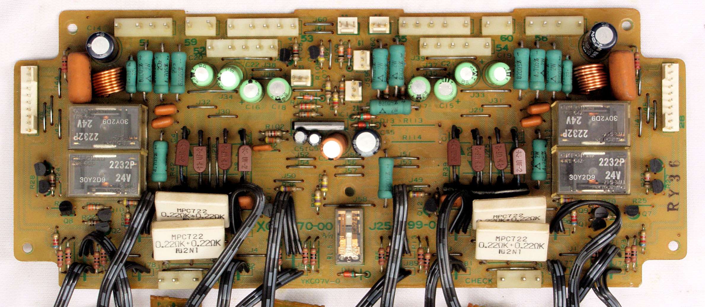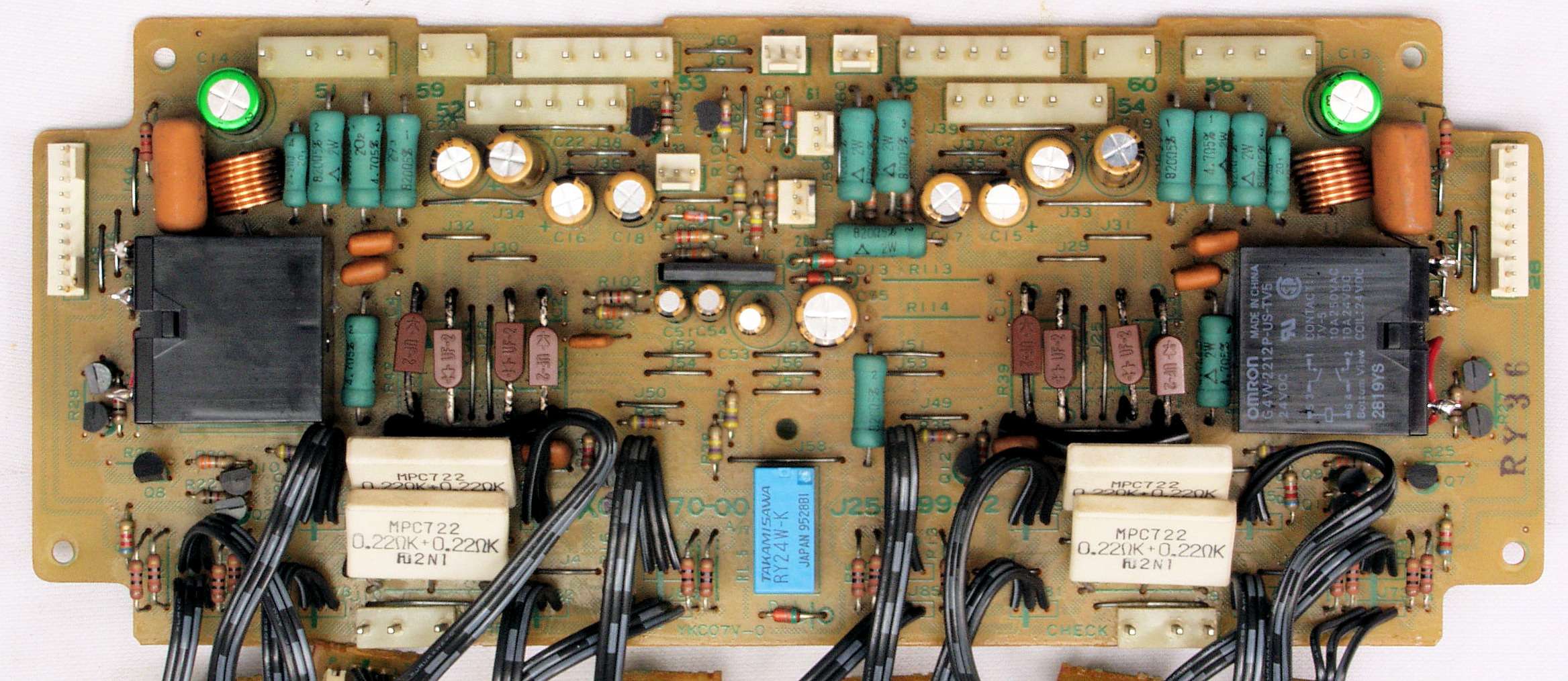 C22. 修理後 終段・プロテクト基板 リレー5個、電解コンデンサー14個交換