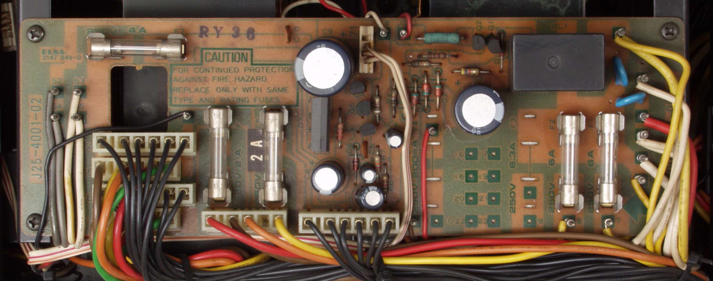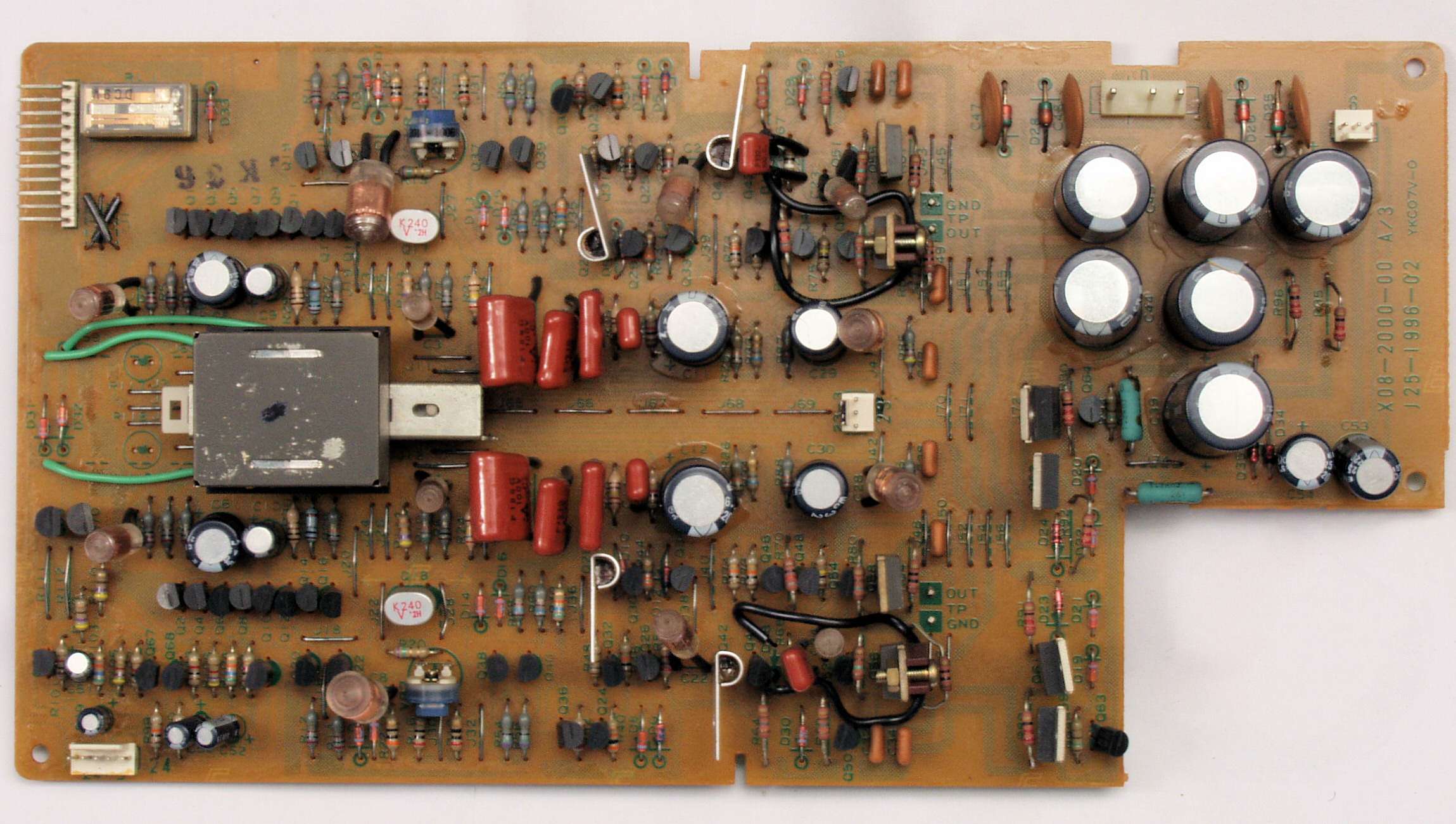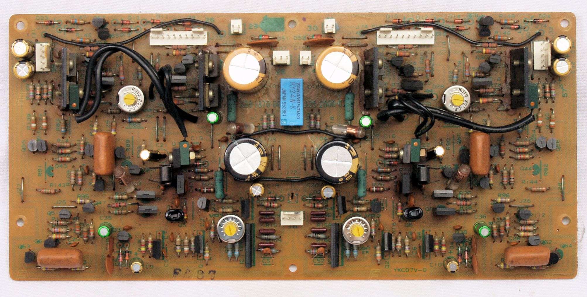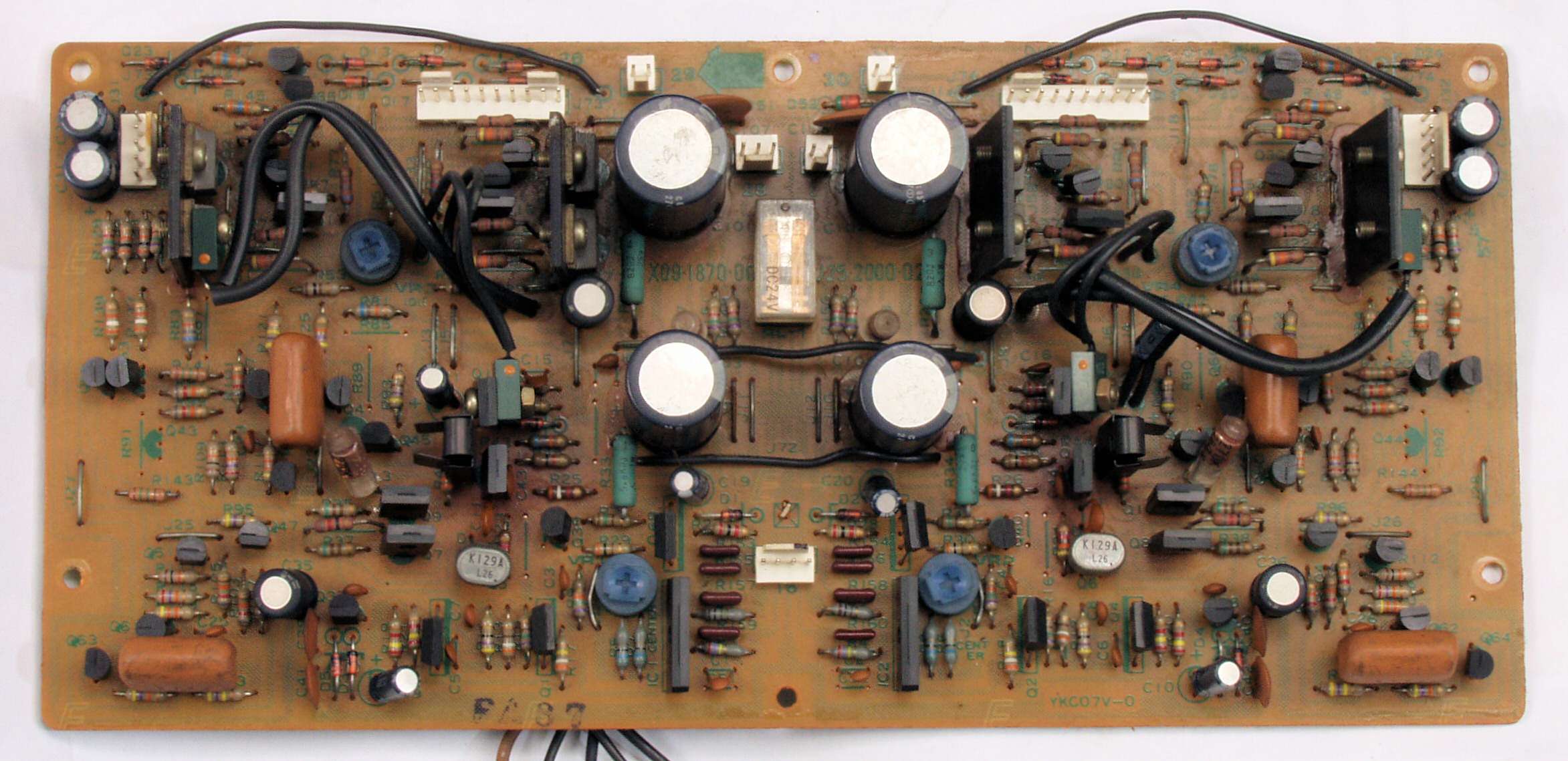 C22. 修理後 終段・プロテクト基板 リレー5個、電解コンデンサー14個交換
