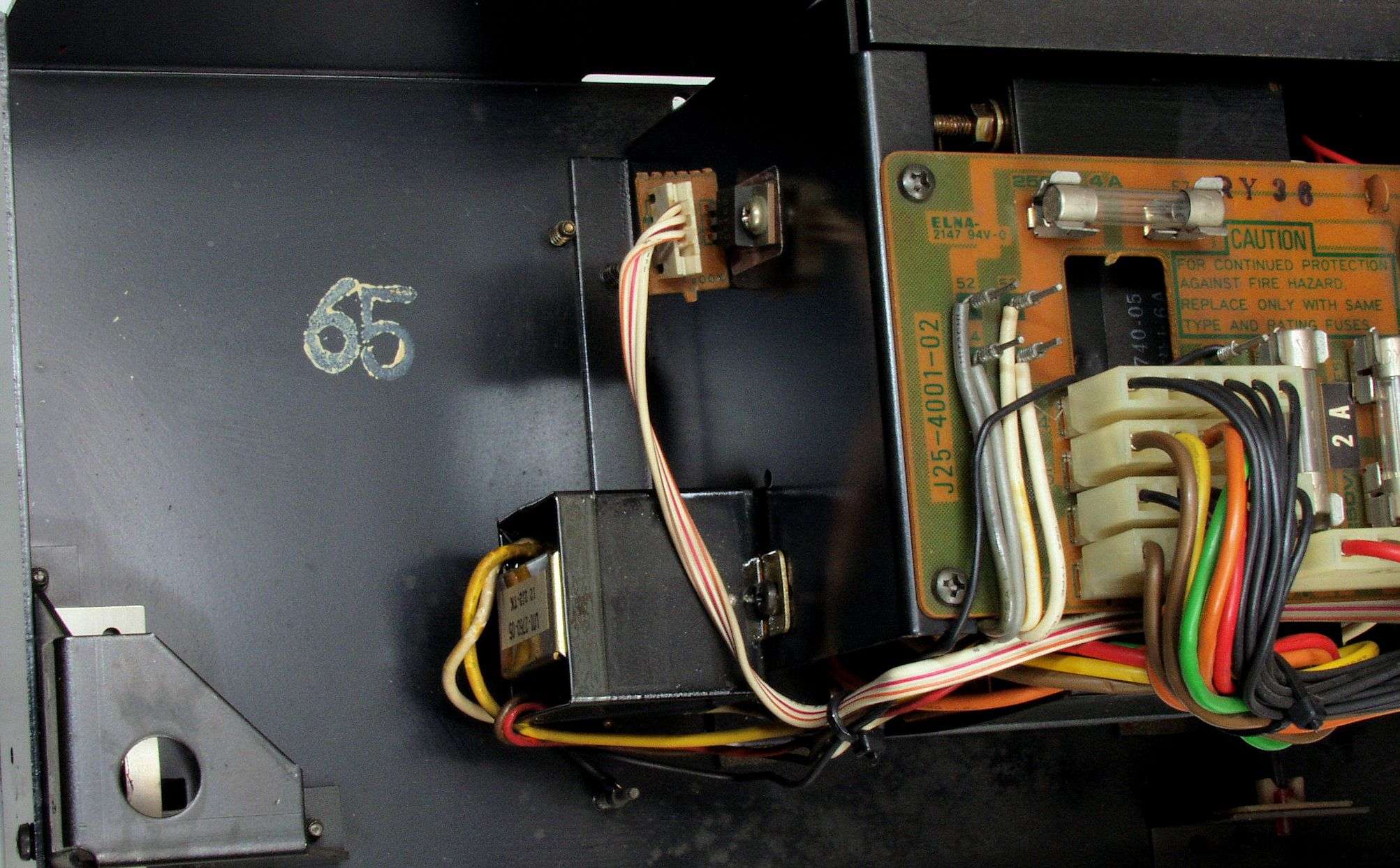 A82. 点検中 電源部・上蓋を取り上から見る、 「65」は製造番号?