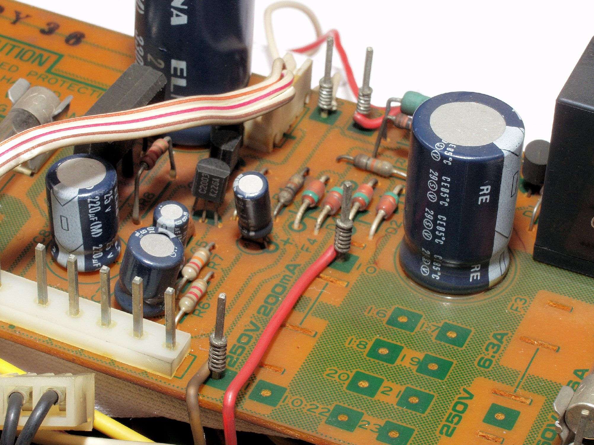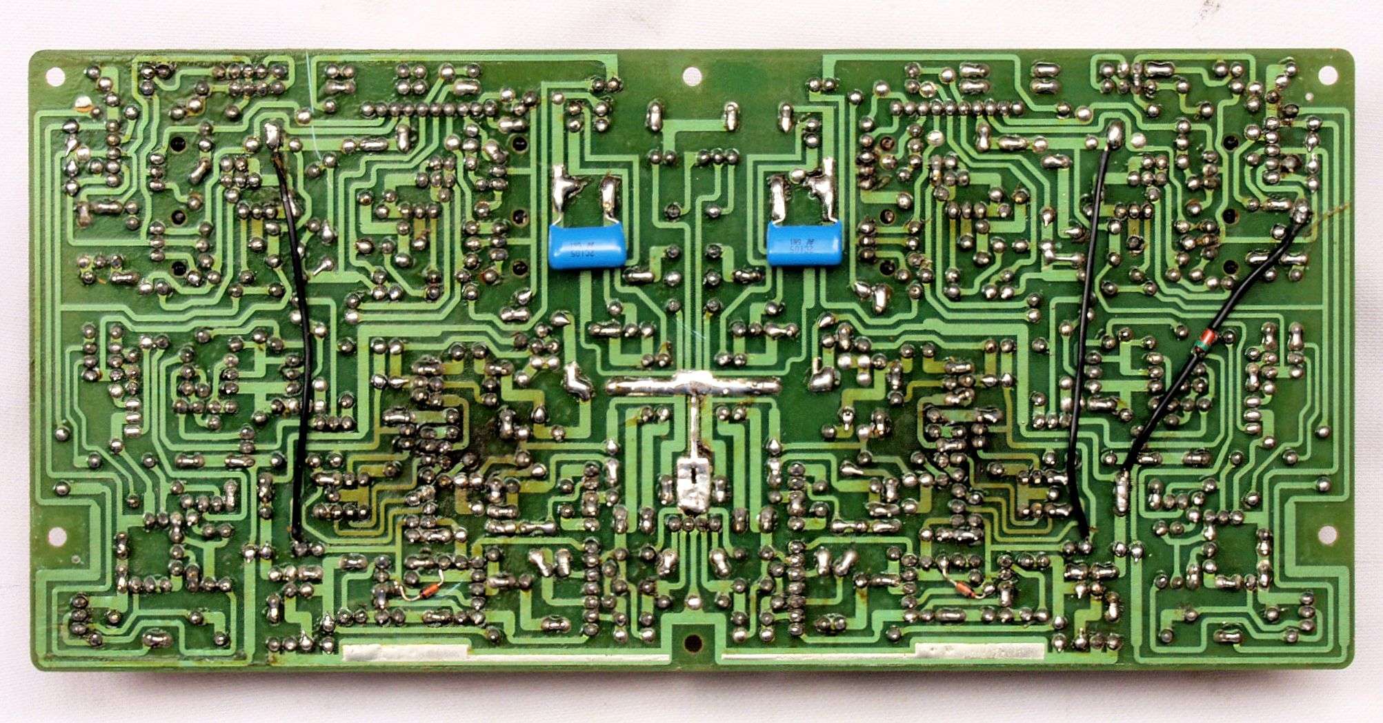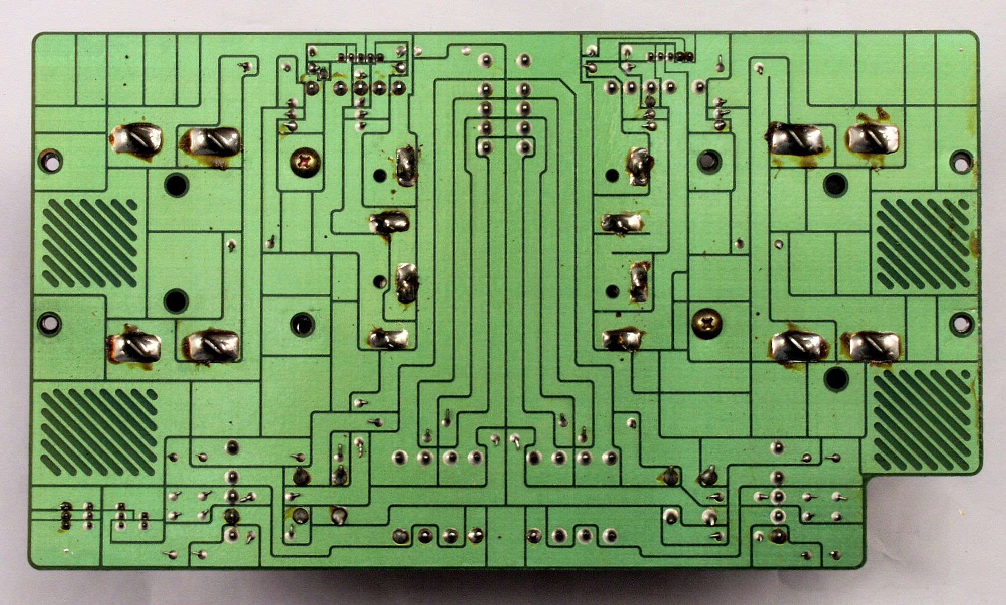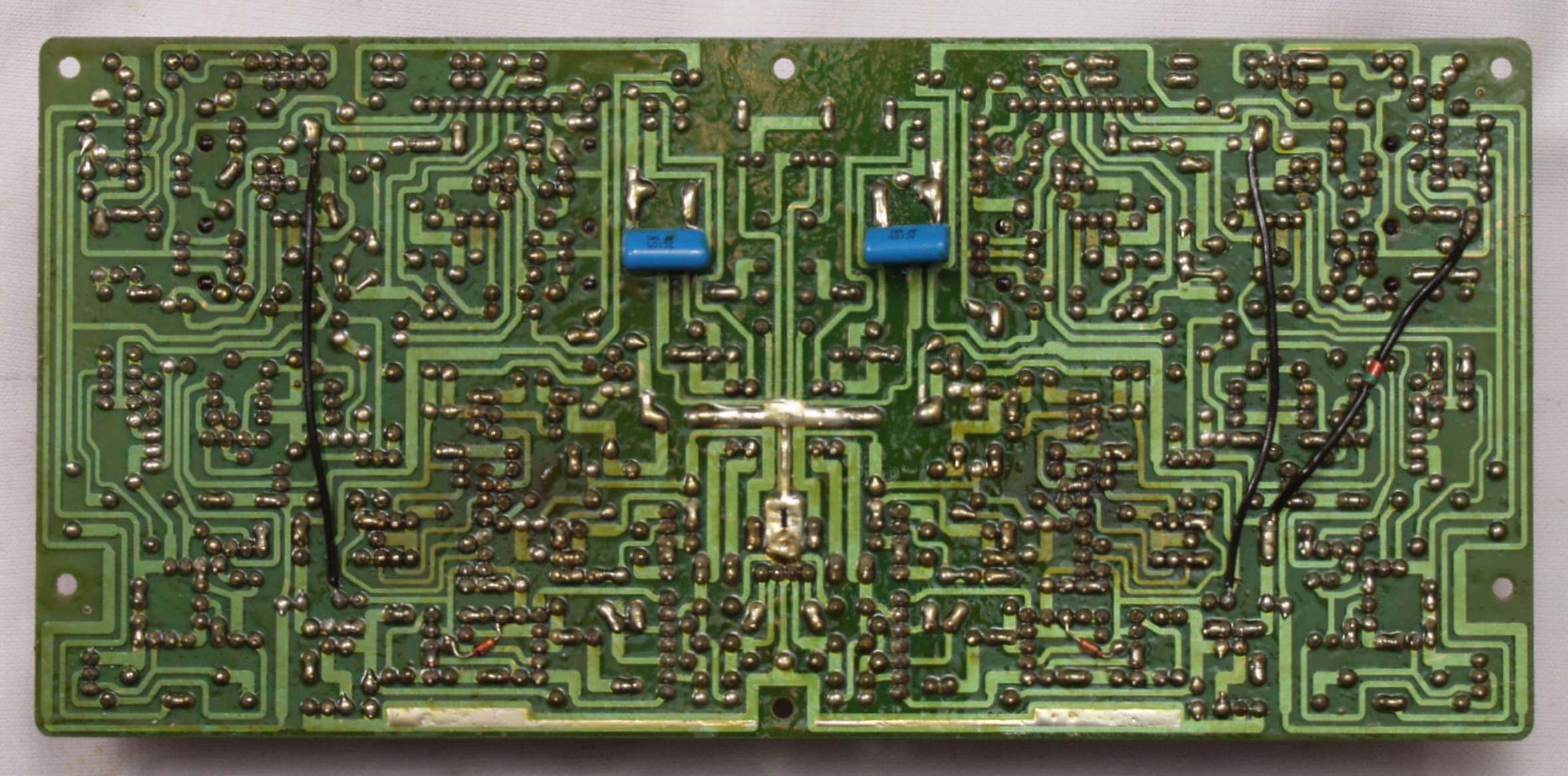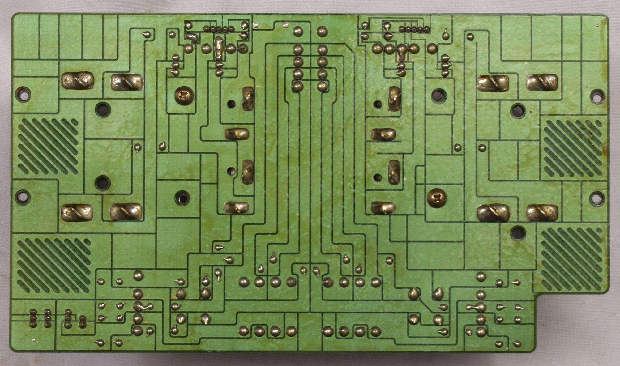 C24. 修理(半田補正)後 終段・プロテクト基板裏。 半田を全部やり直す。