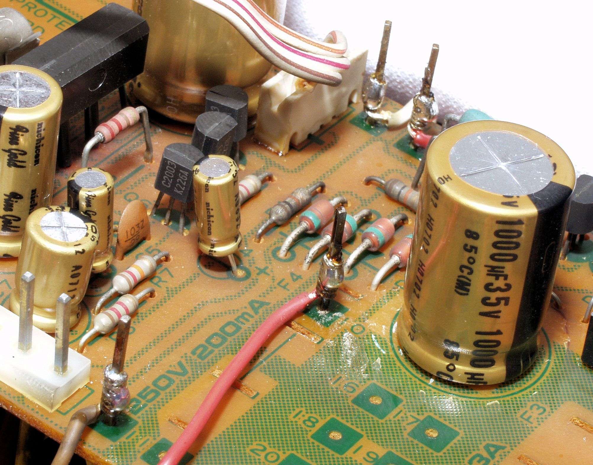 C16. 修理前 左側終段TR(トランジスター)取付基板