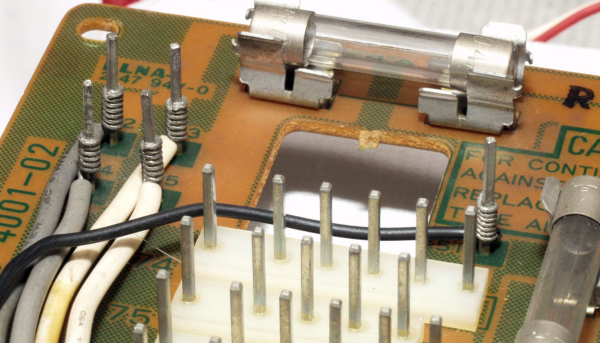 CH44. 修理後 トレー操作基板裏、 反対側から鈴メッキ線で固定する