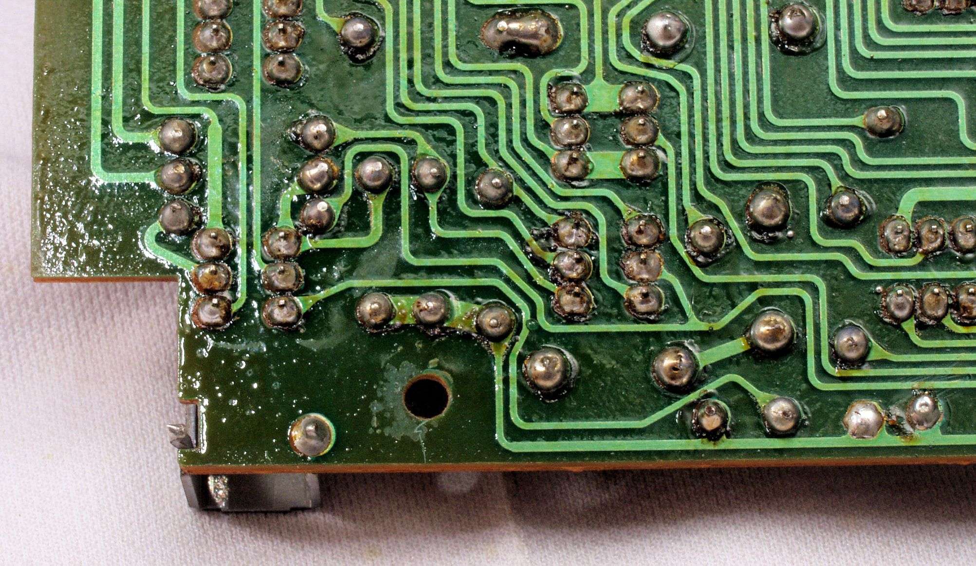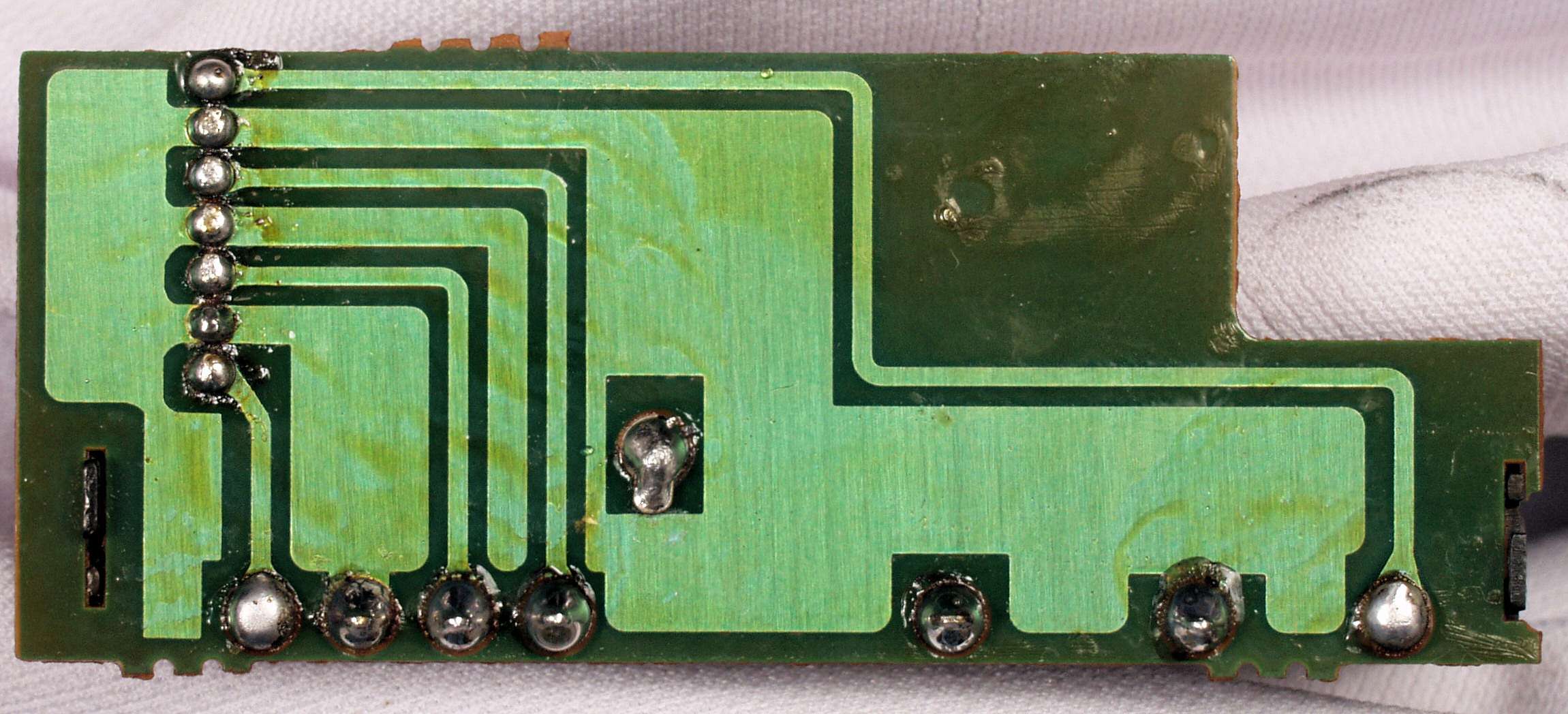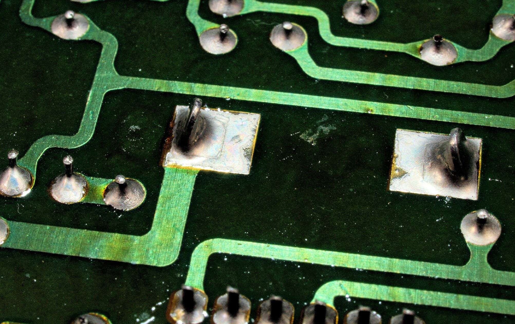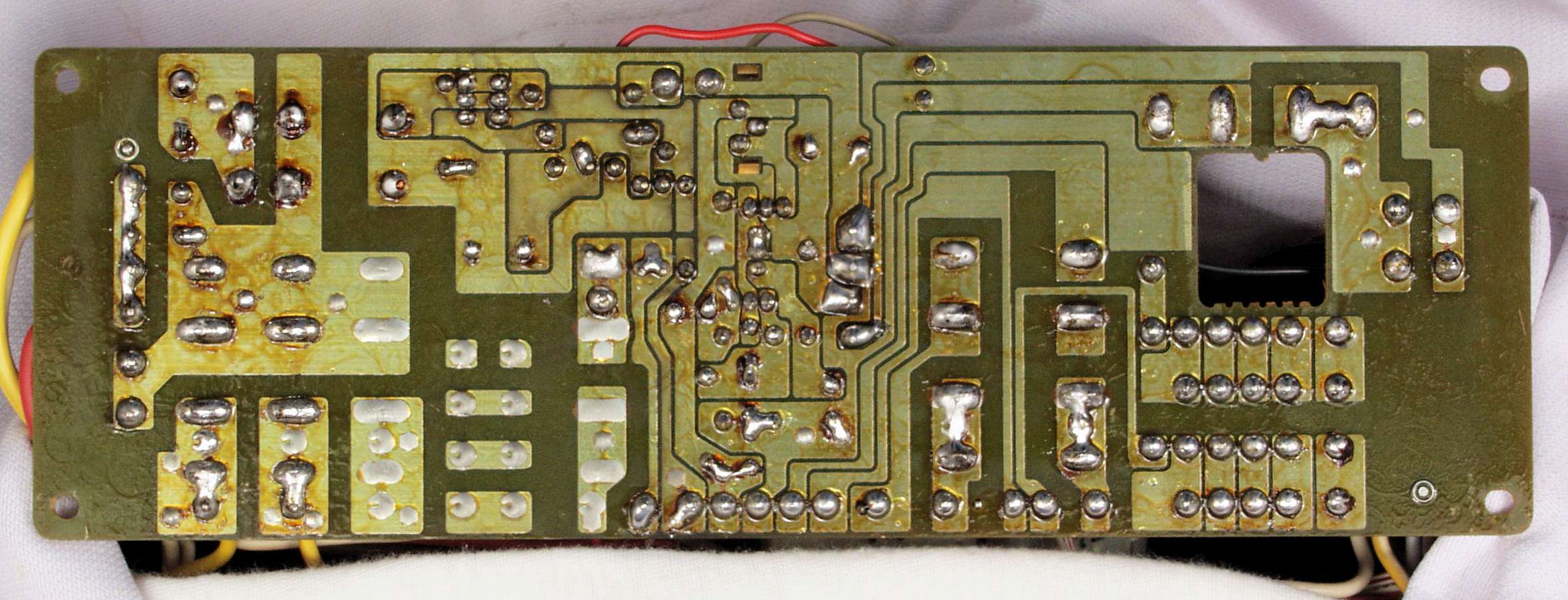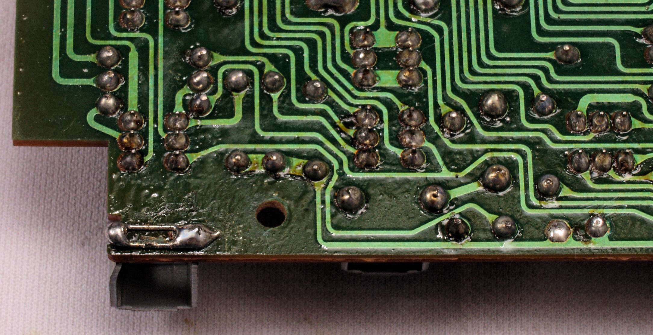 CH5. 修理(半田補正)後 トレー操作基板裏。 半田を全部やり直す。