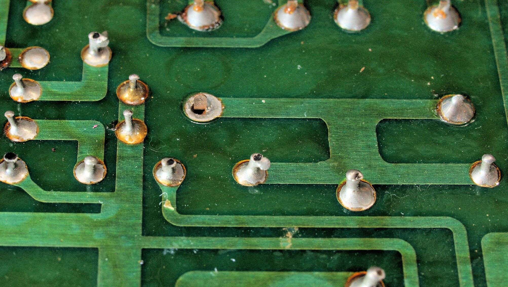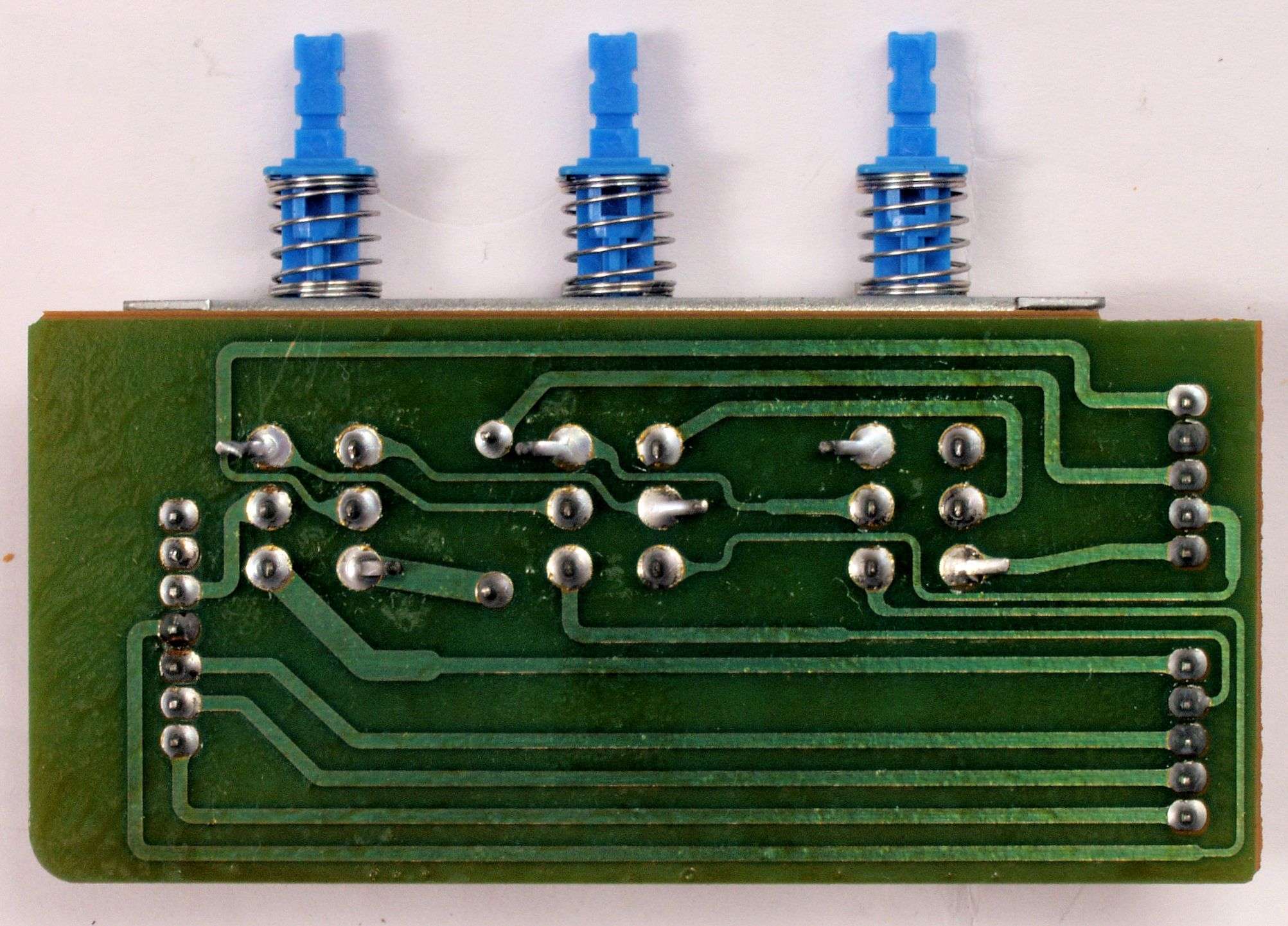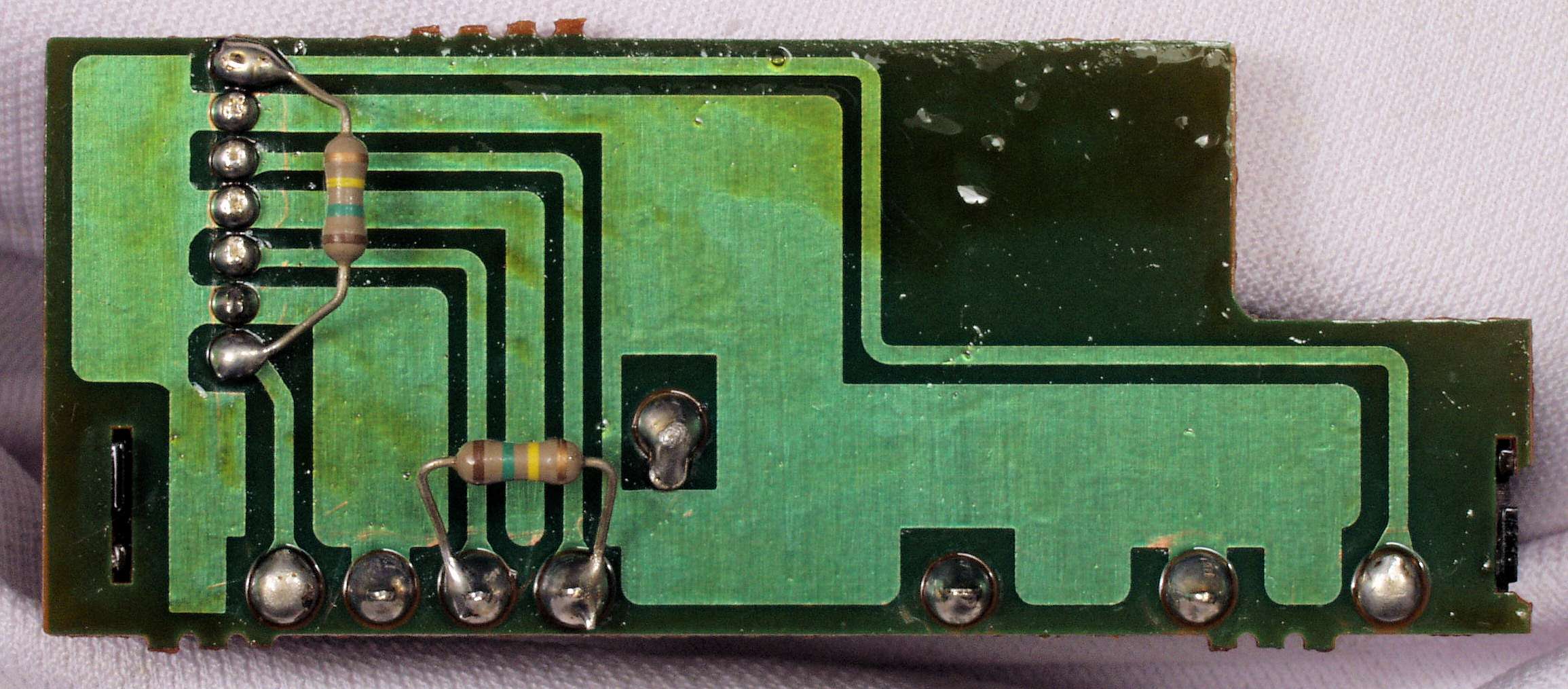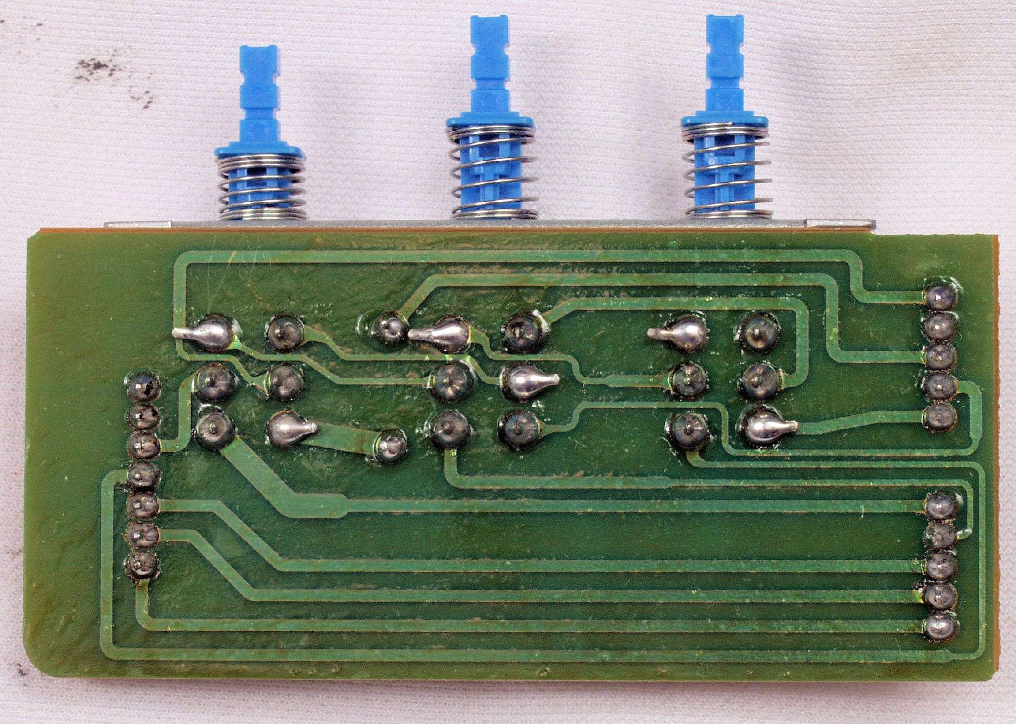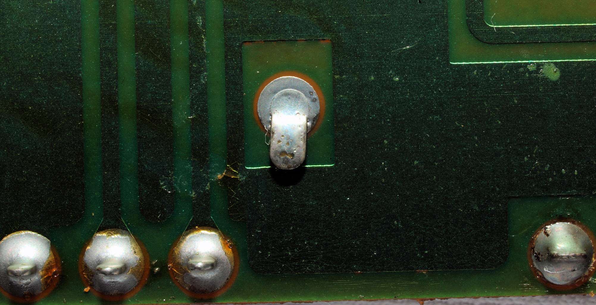 CH5. 修理(半田補正)後 トレー操作基板裏。 半田を全部やり直す。