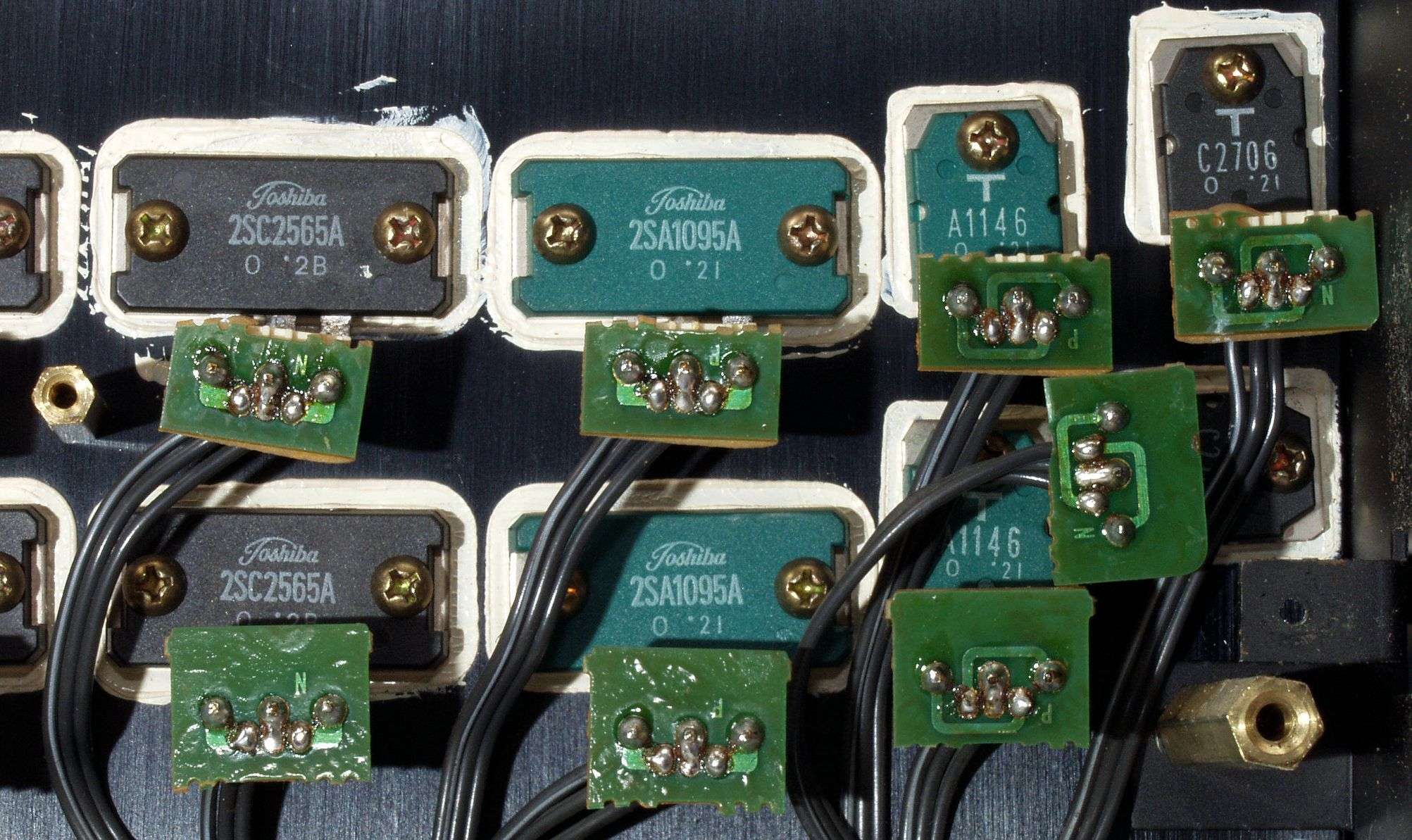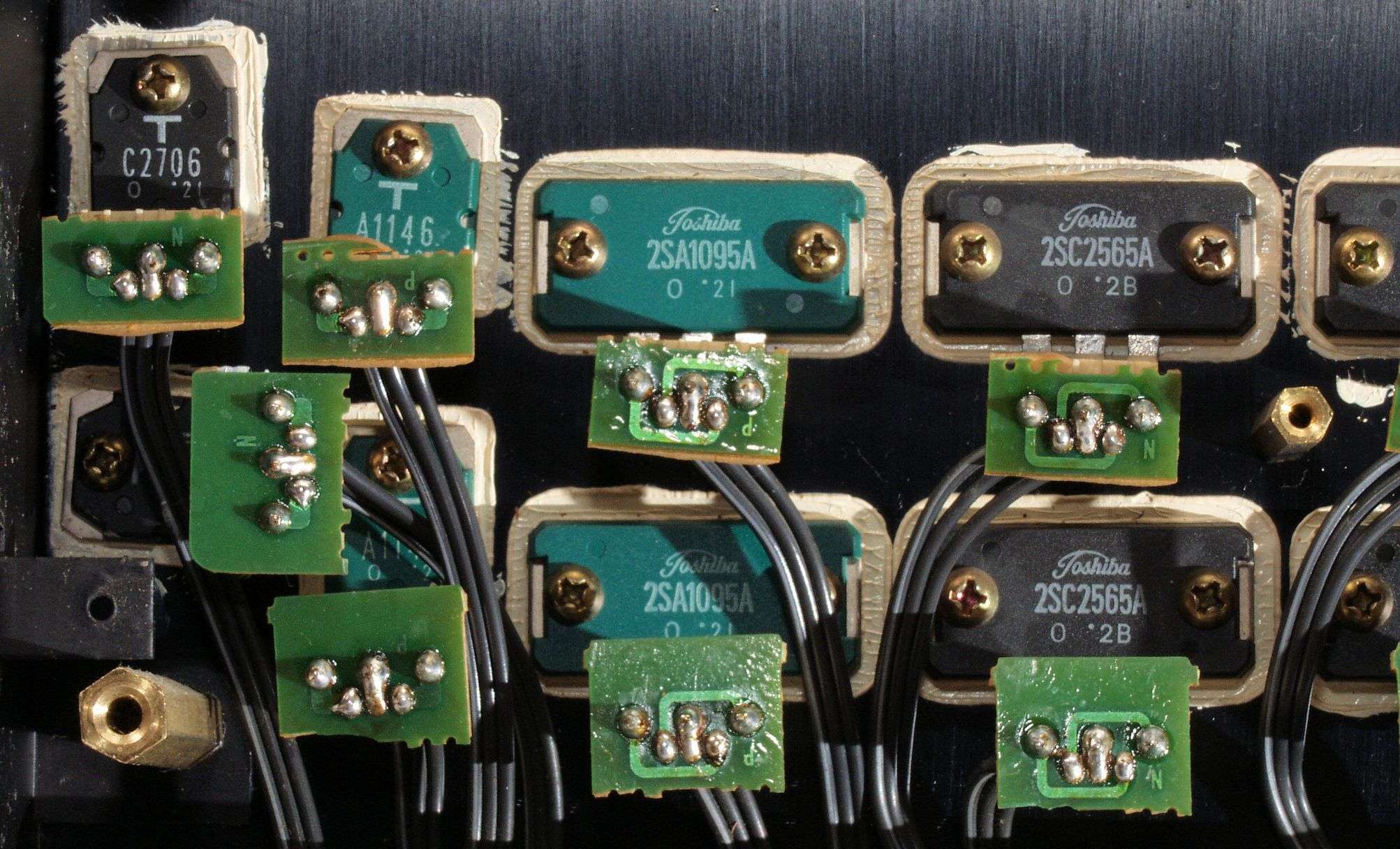 C12. 修理(半田補正)後 左側終段TR(トランジスター)取付基板