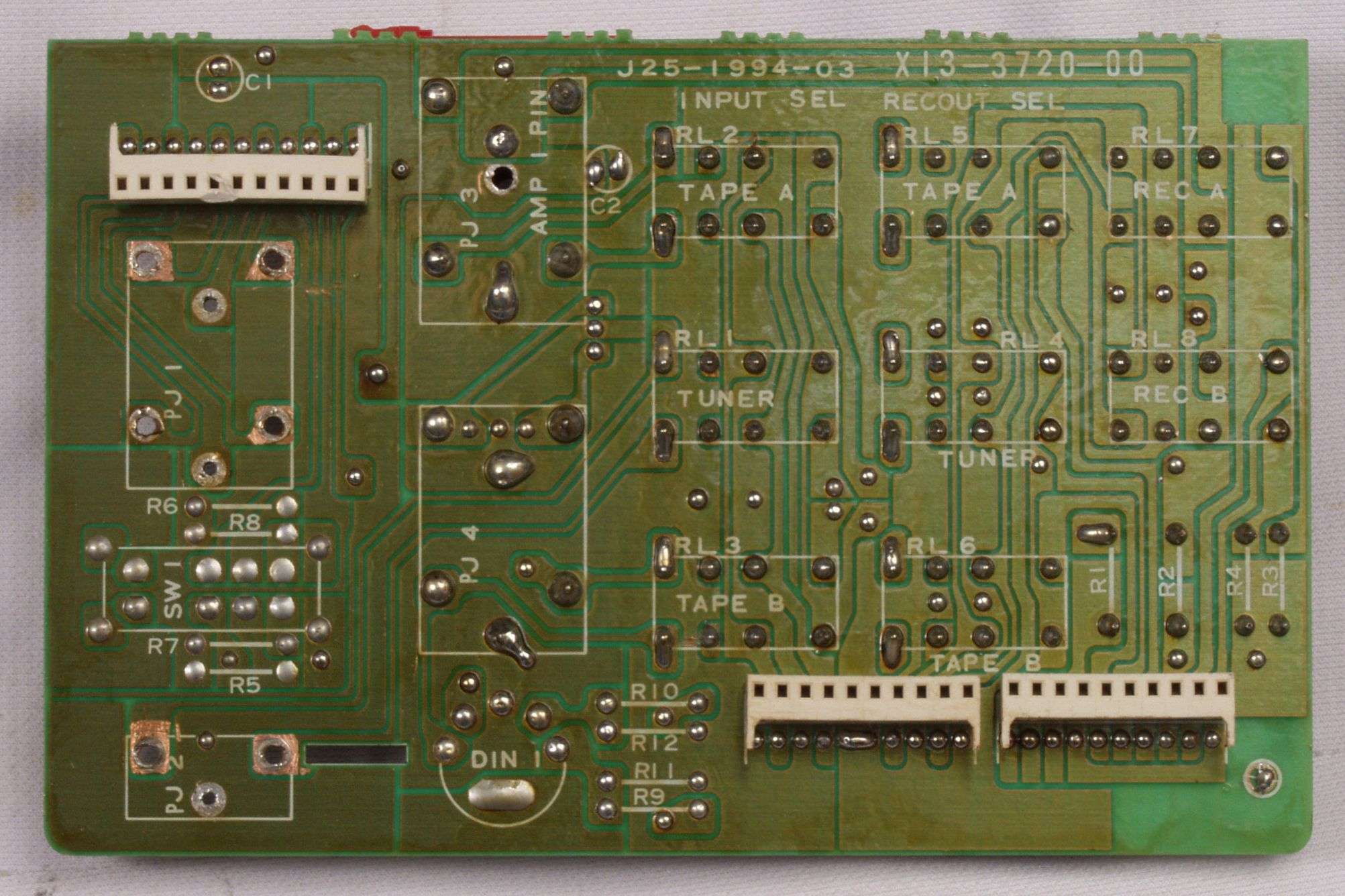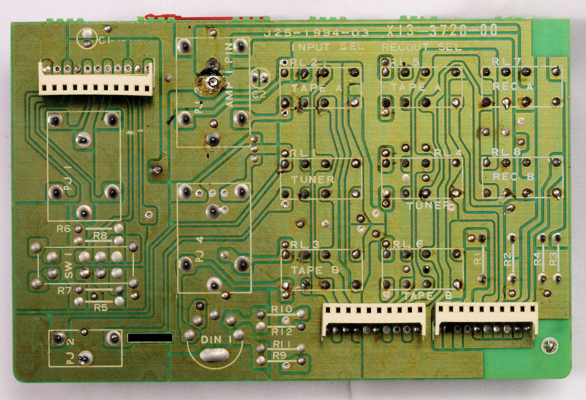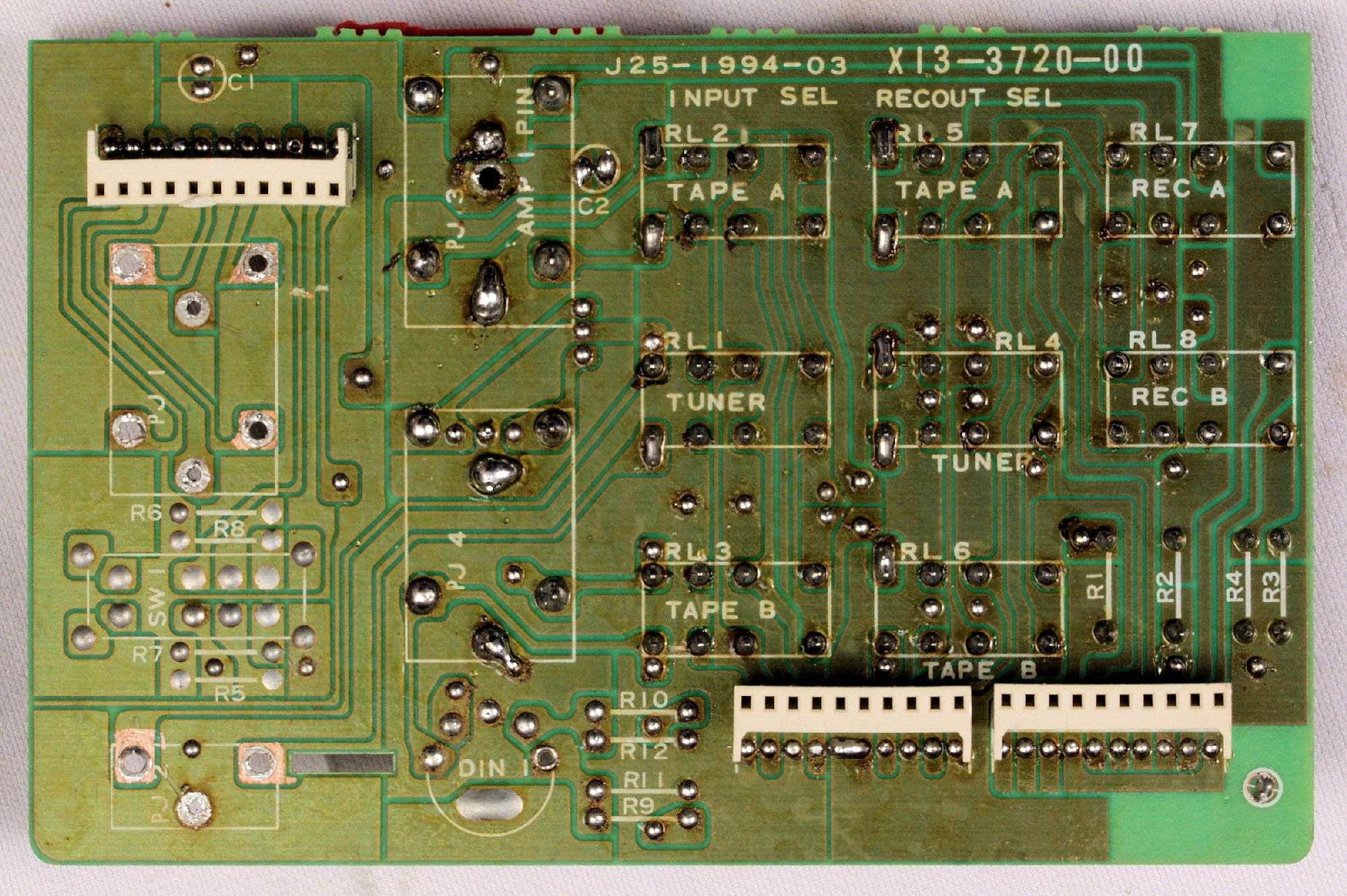 C234. 修理中 終段・プロテクト基板裏、取り出したSP接続リレー、反対側も未半田!