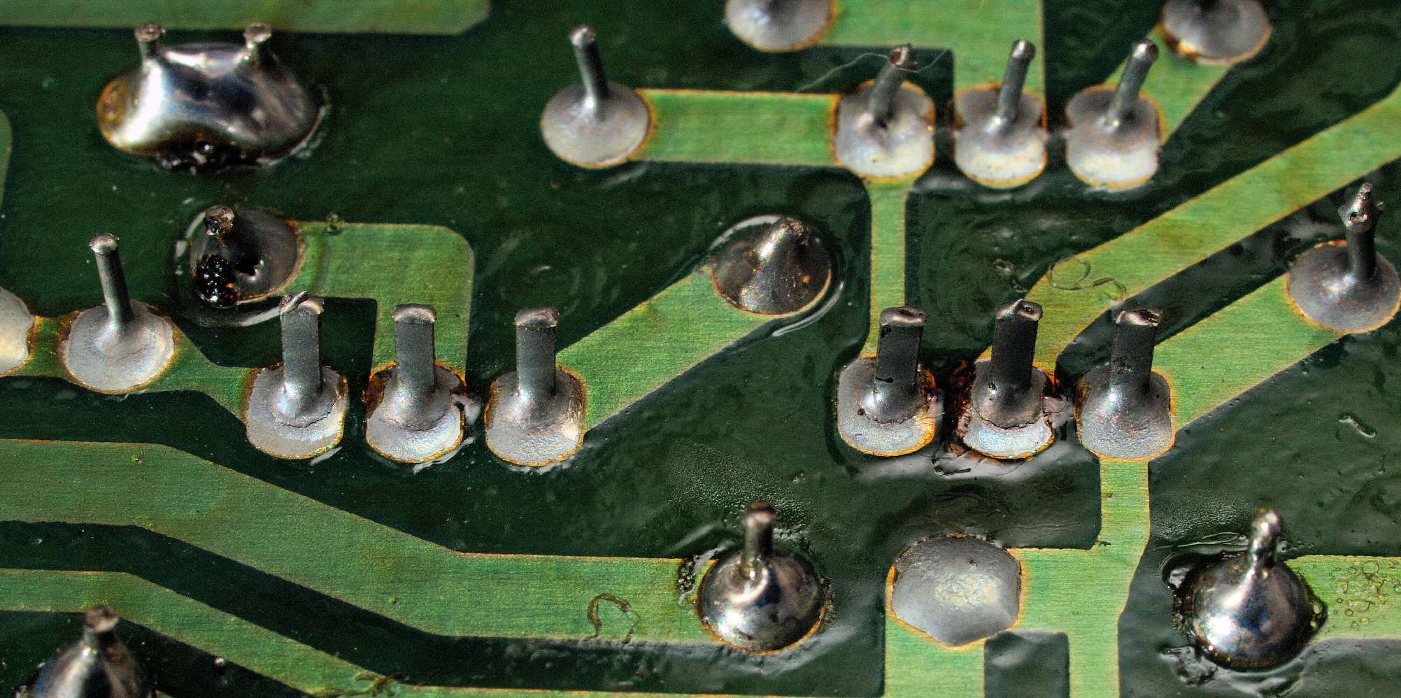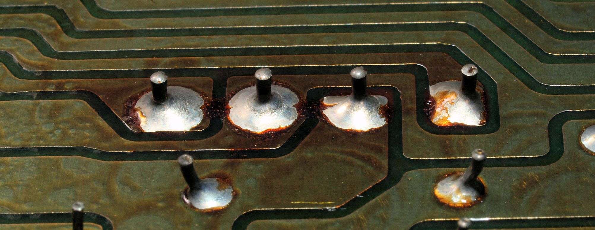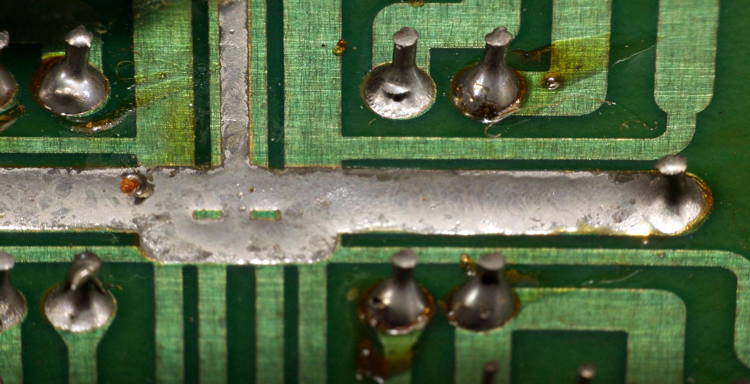 CG6. 修理(半田補正)後 照明・LED基板裏。 半田を全部やり直す。