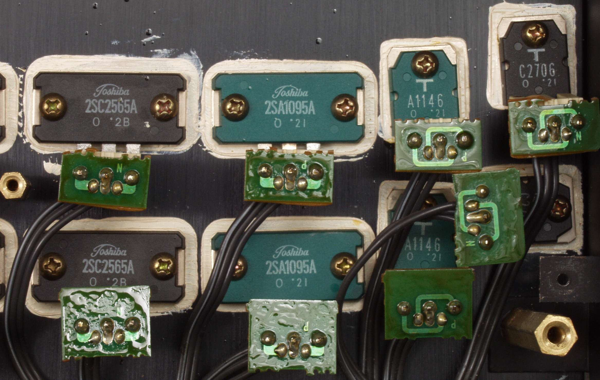 C11. 修理前 左側終段TR(トランジスター)取付基板