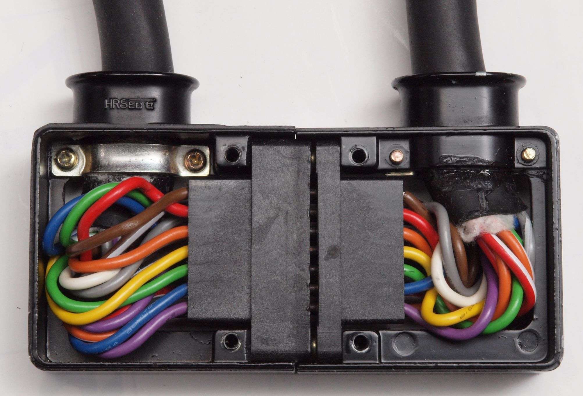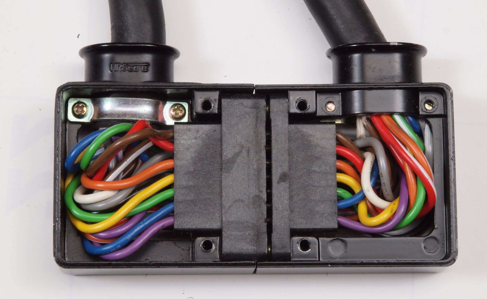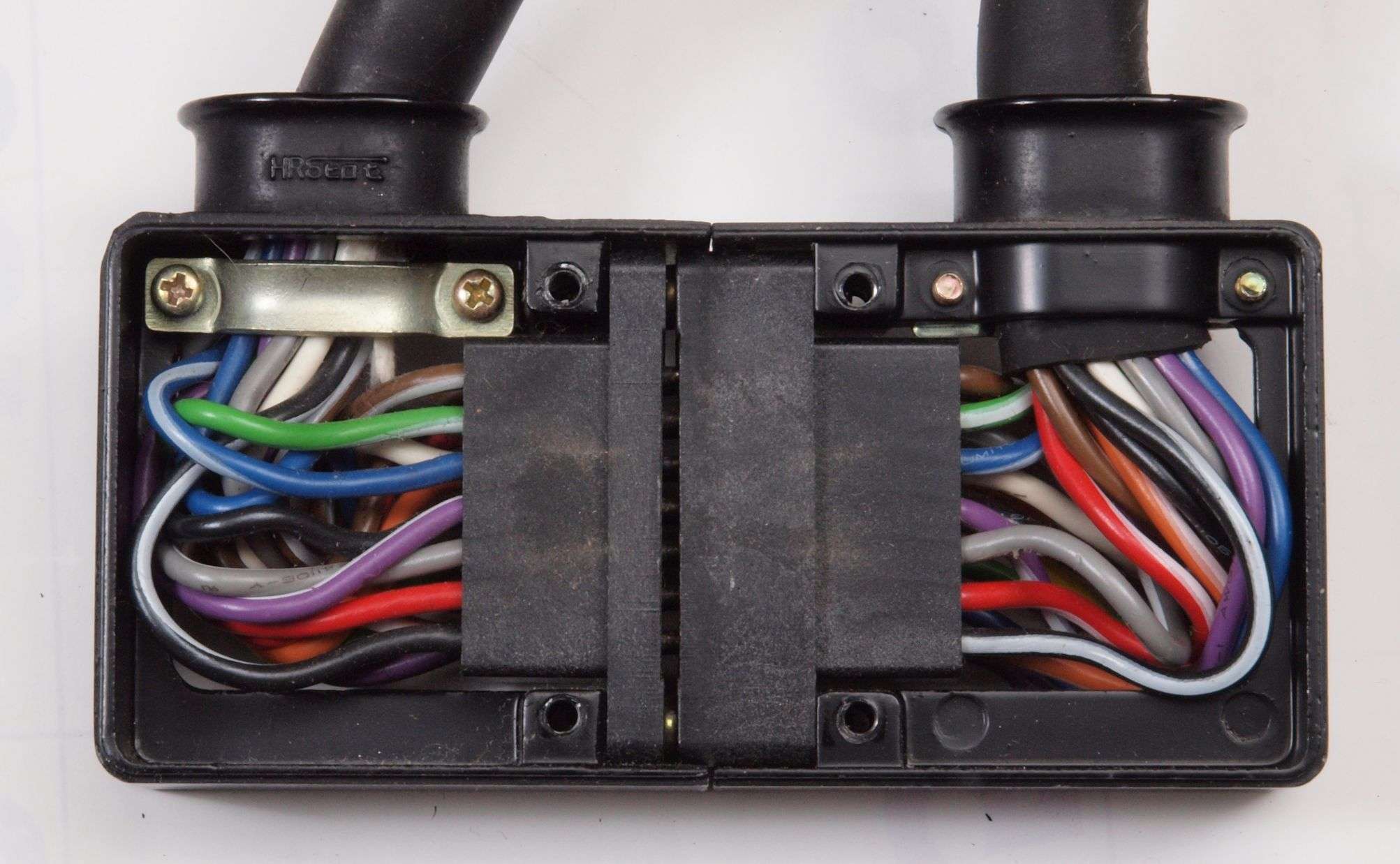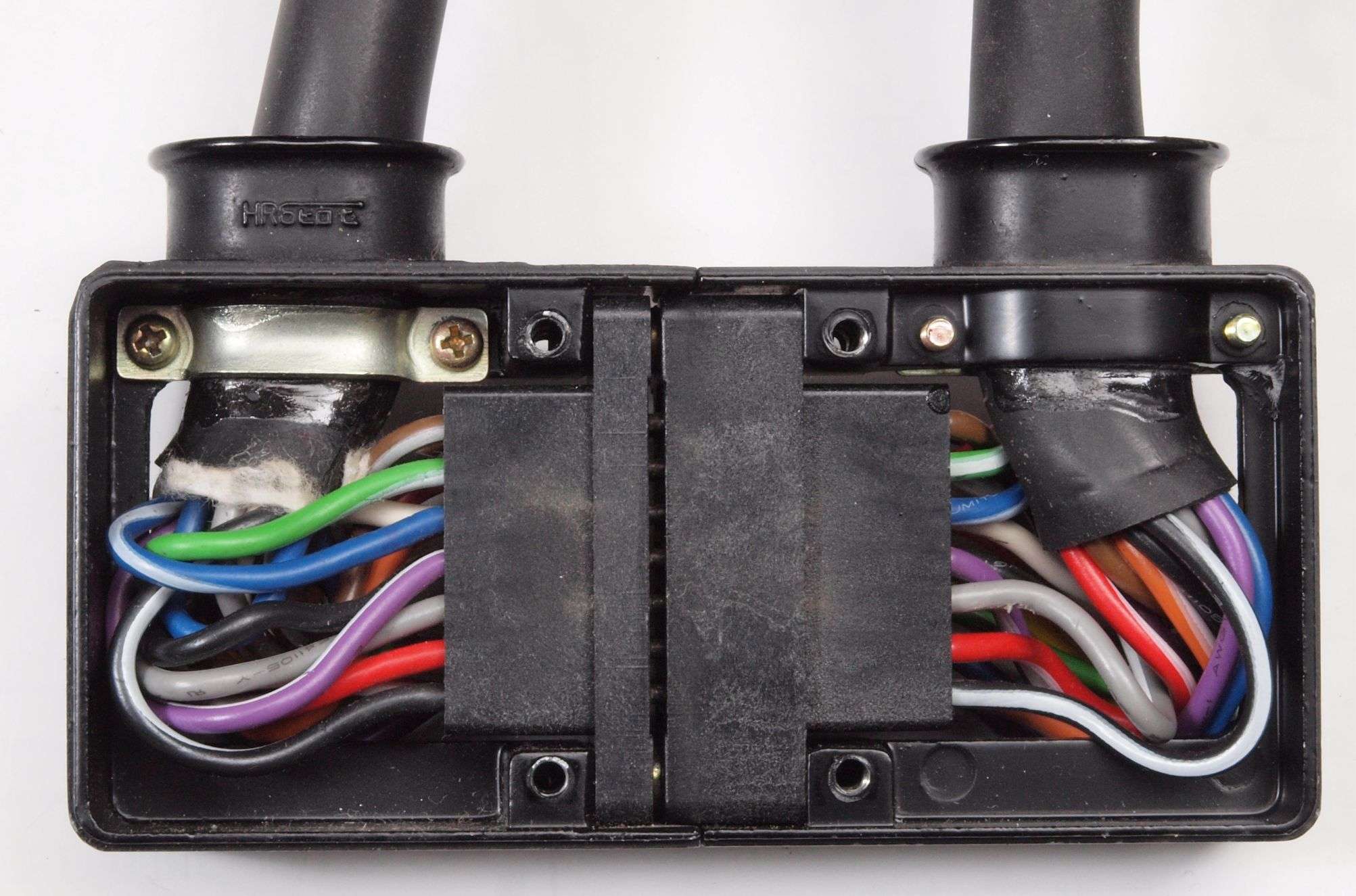 A253. 点検中 下蓋を取り下から見る。下端子台への2本の配線位置が異なる!