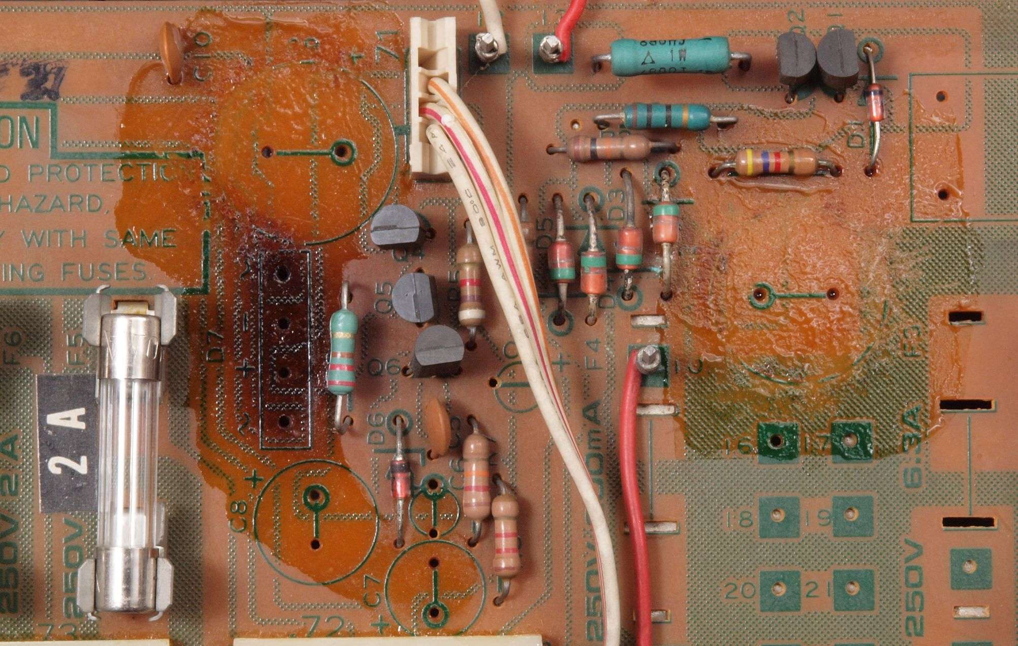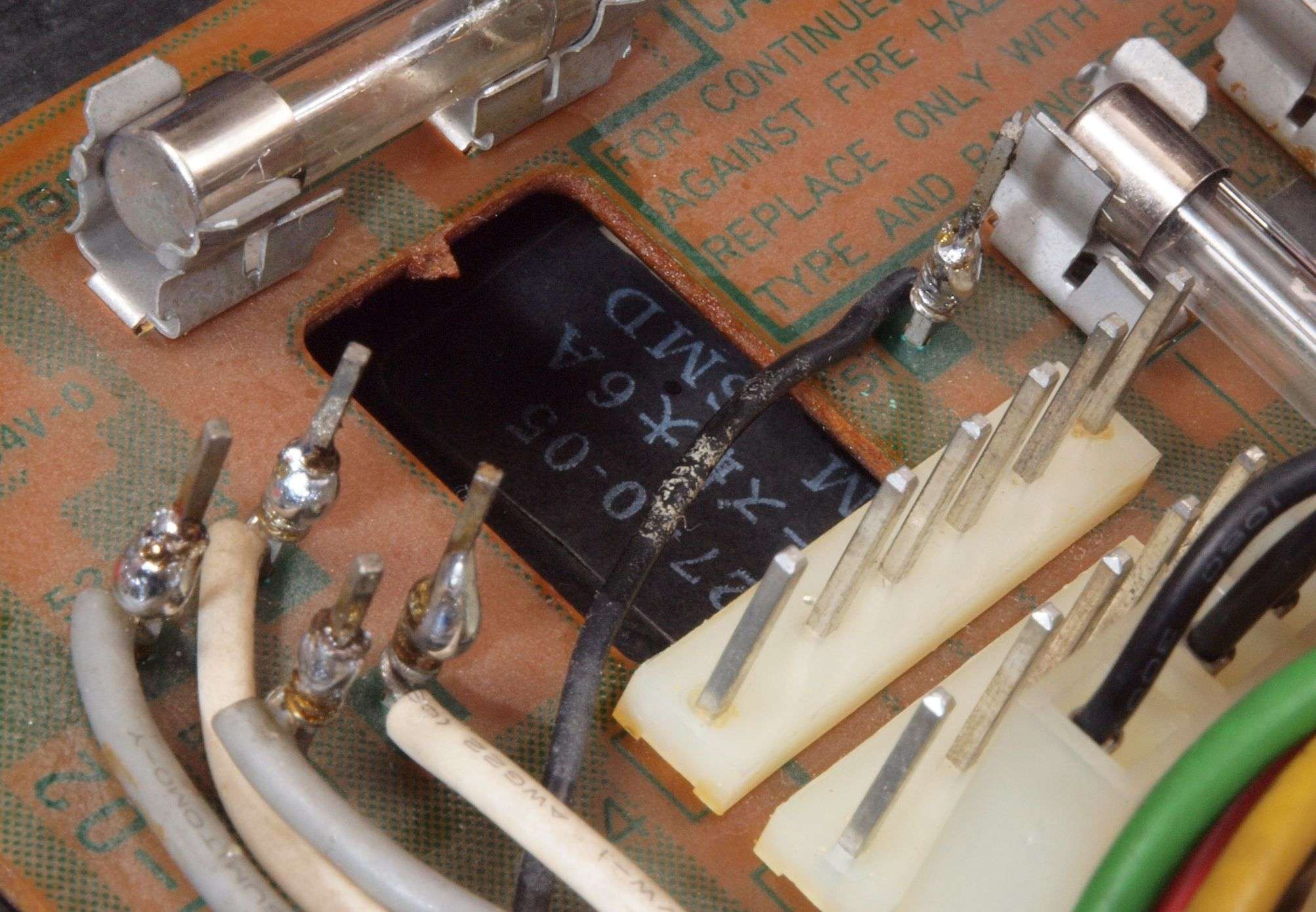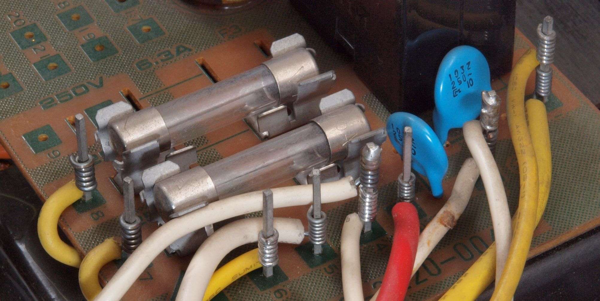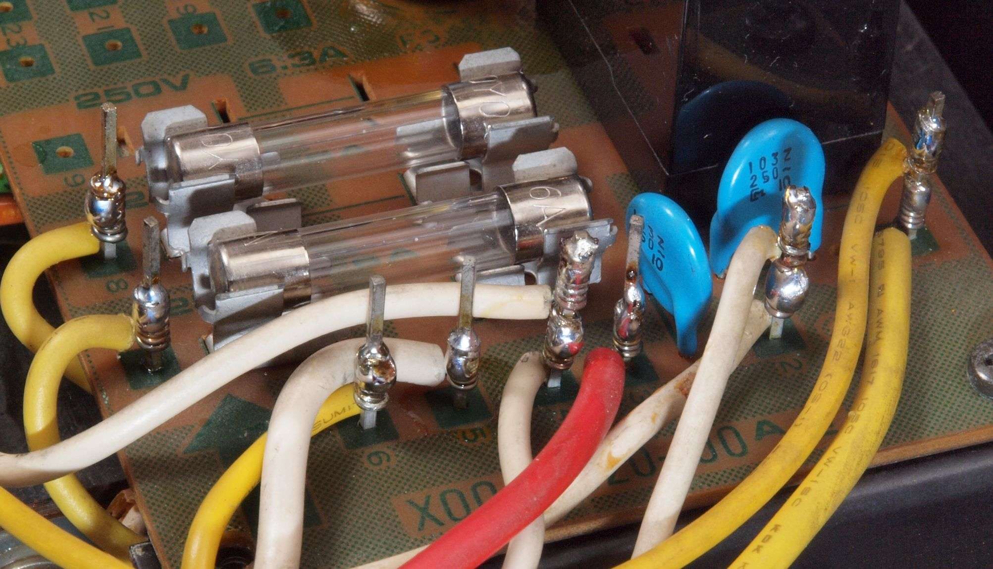 左=付いている物(2a=5A×2)、 右=交換する物で、2倍の容量を持つ(2a=10A×2)