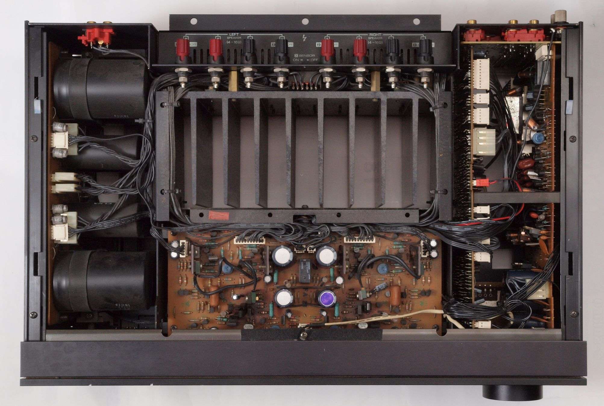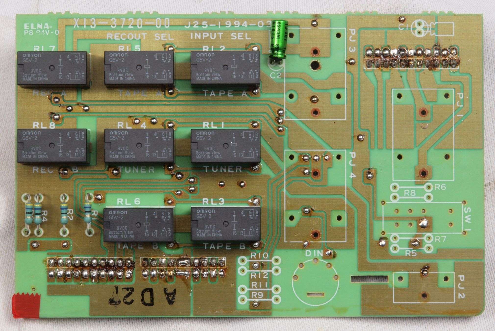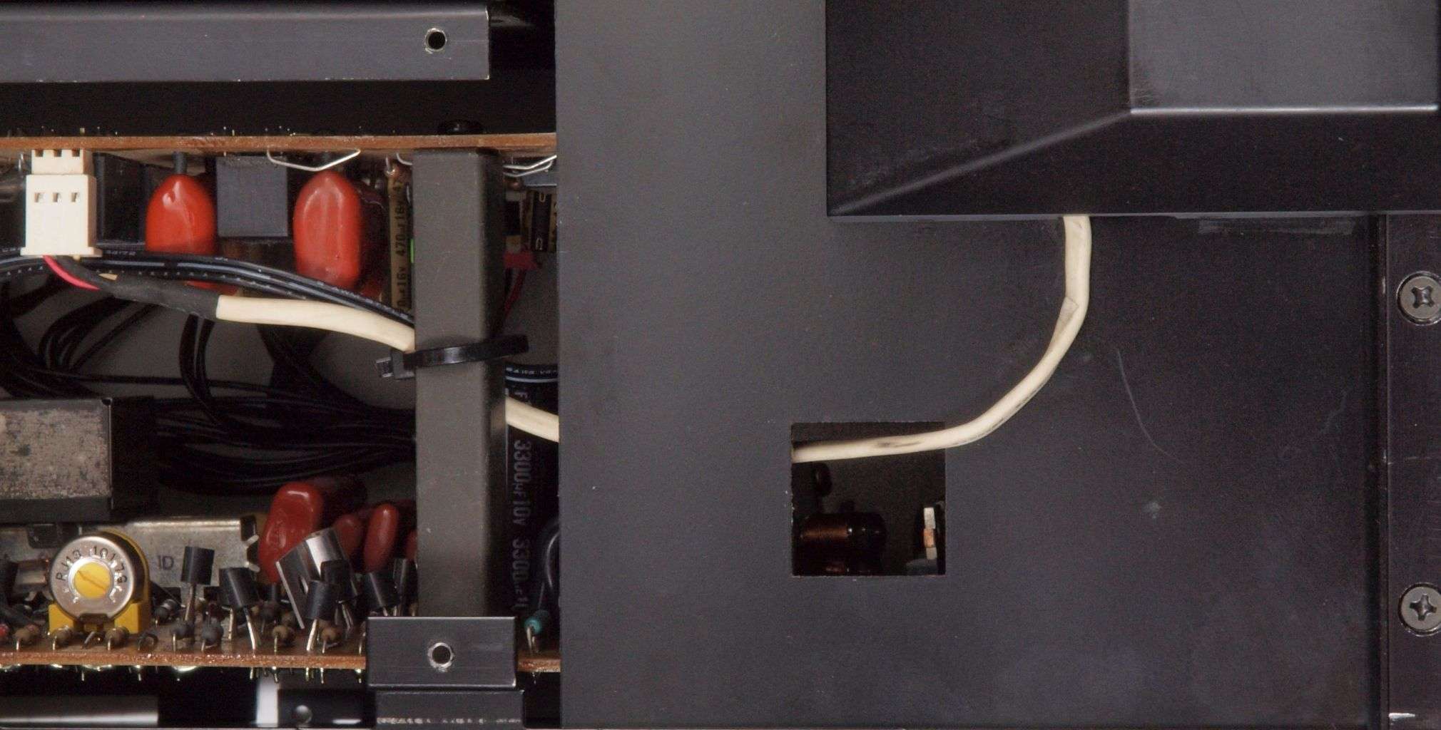 A27. 点検中 上下蓋、AUX−RCA端子版を取り、下から見る