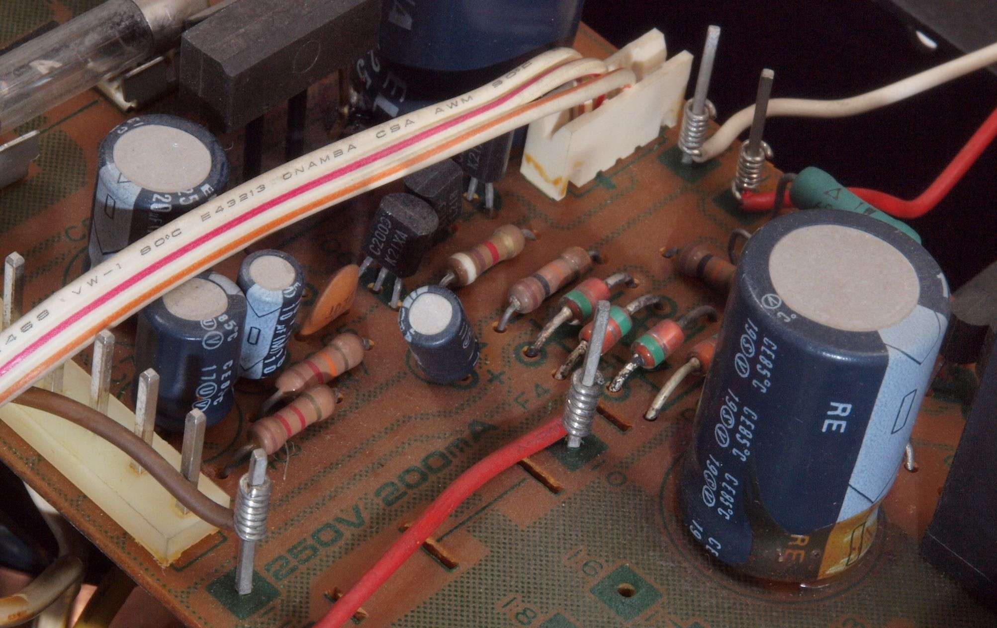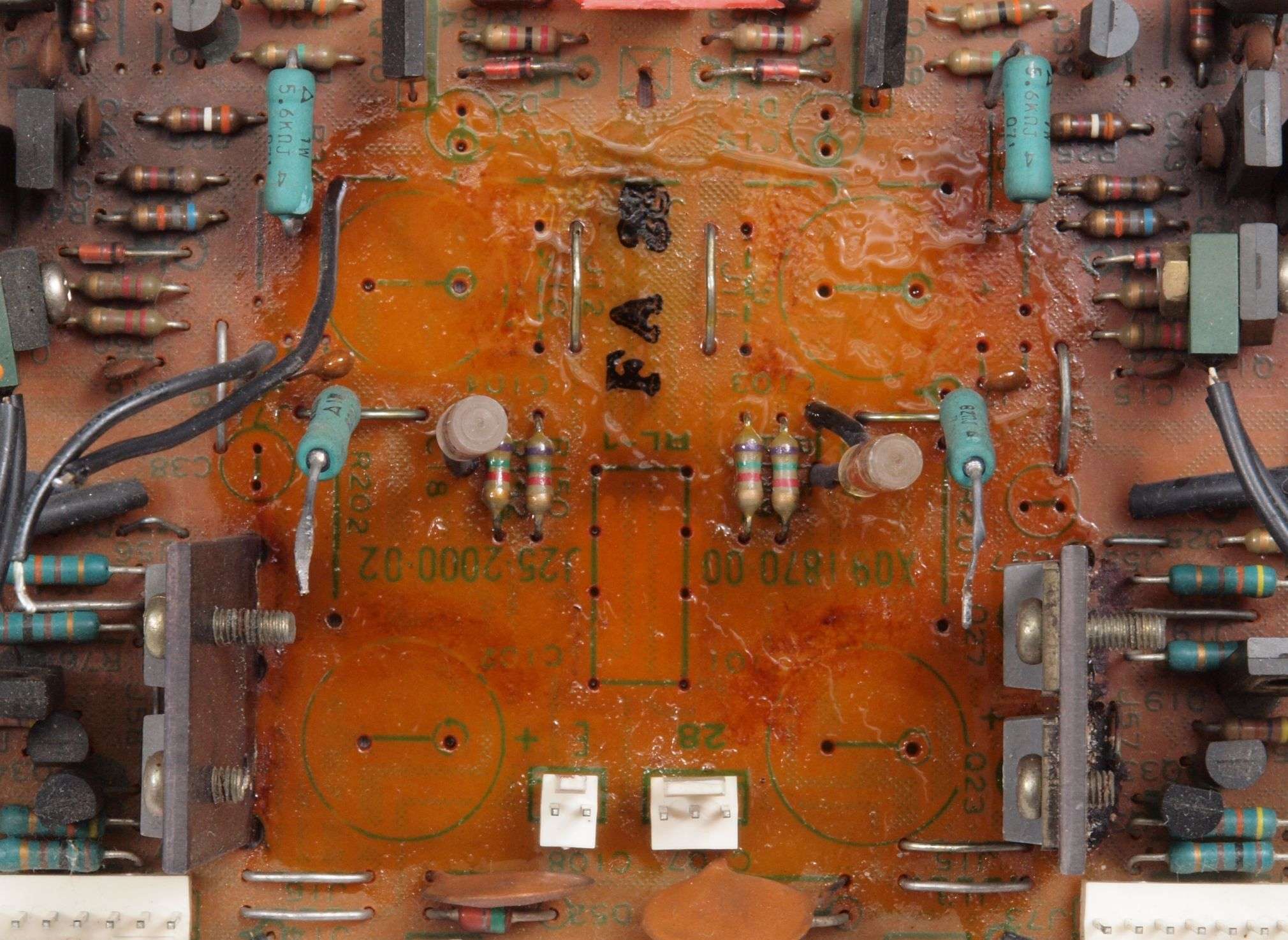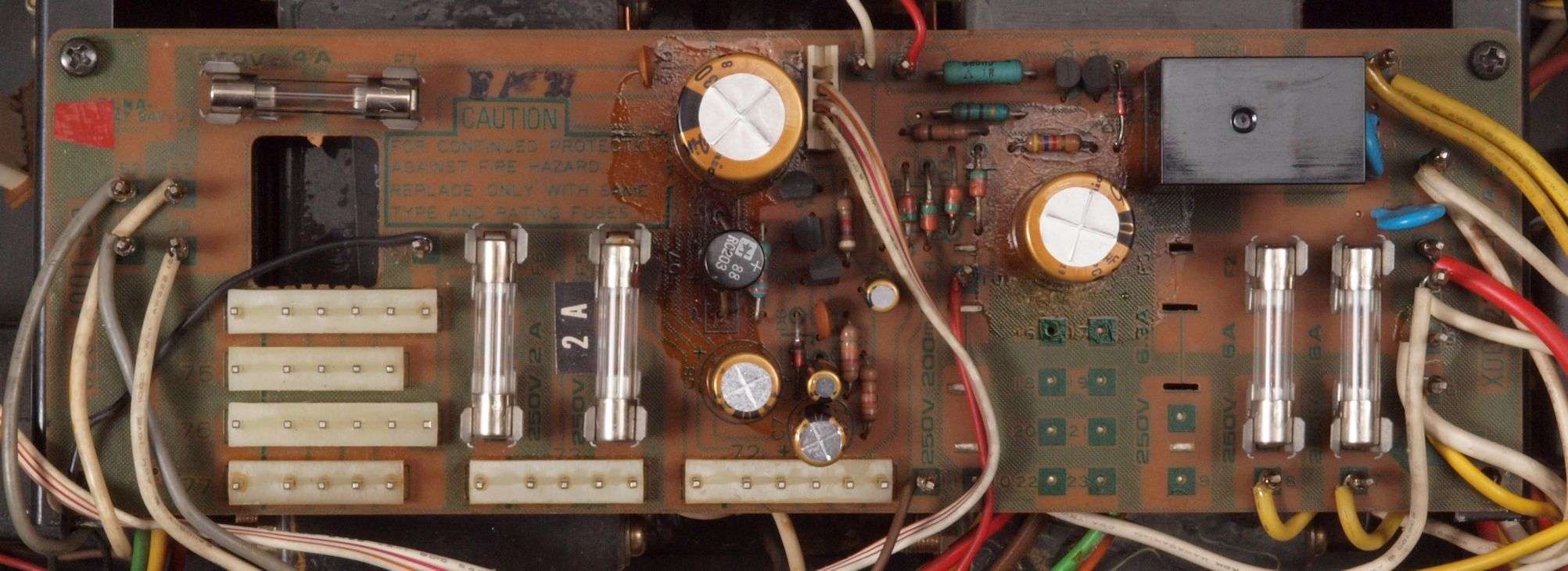 A27. 点検中 上下蓋、AUX−RCA端子版を取り、下から見る
