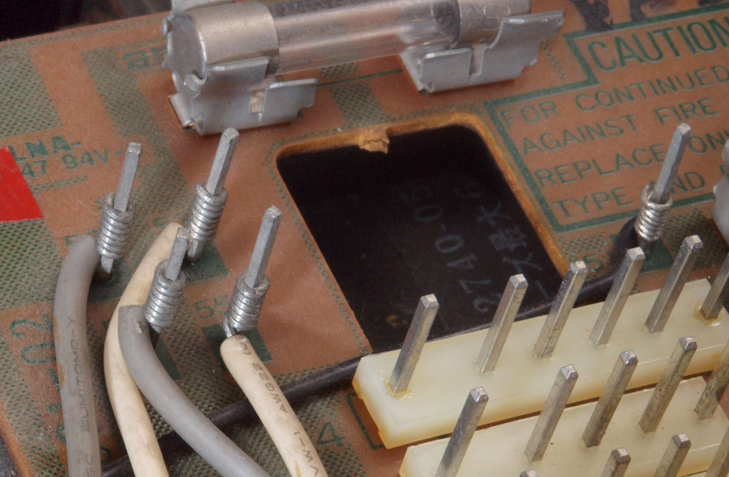 A41. 点検中 交換するテフロン絶縁製RCA端子。 中心電極は円筒状で4つ割方式。