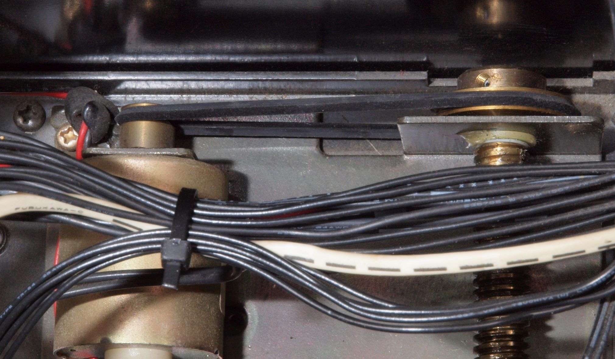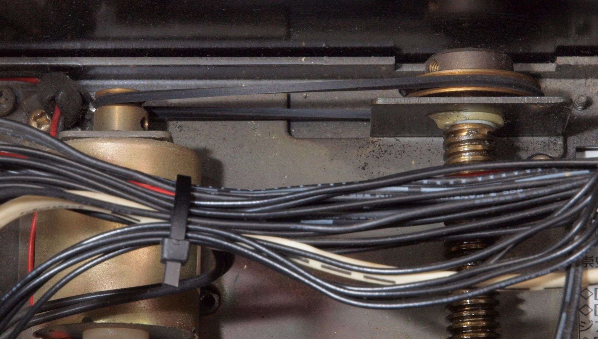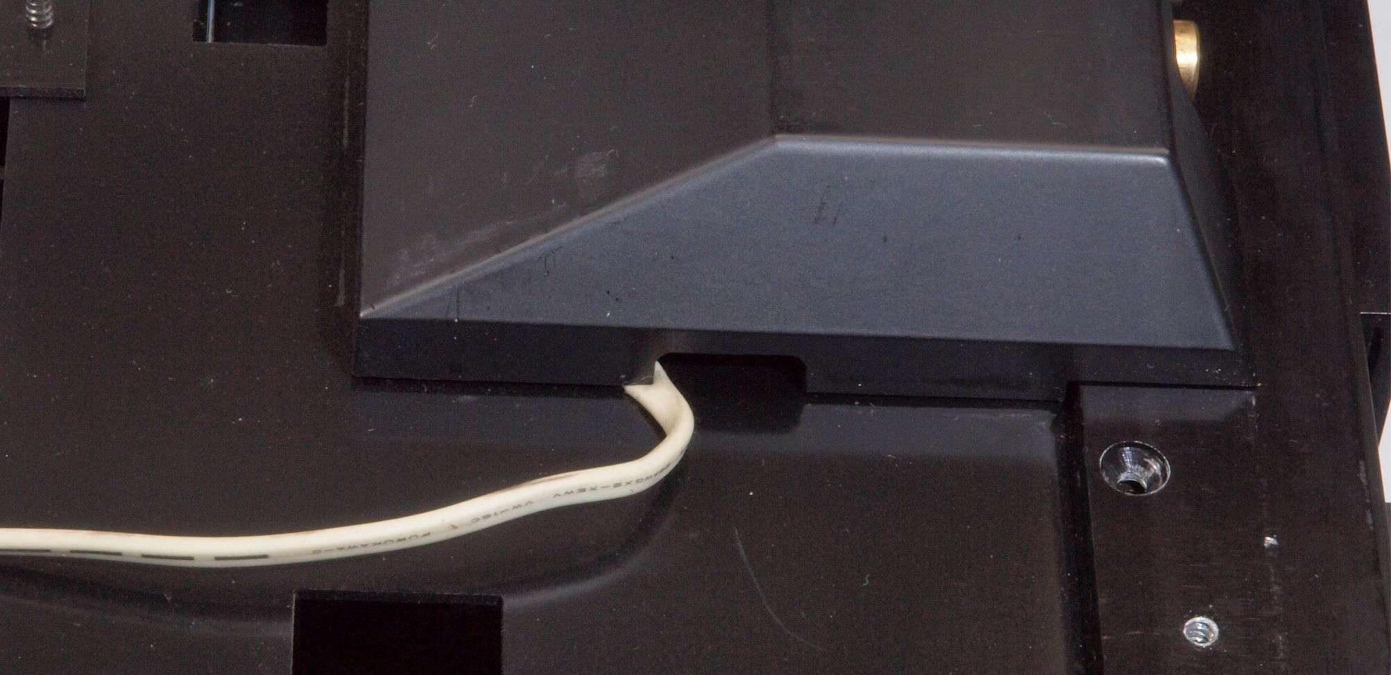 A254. 点検中 下蓋を取り下から見る、 AUX入力のケーブルを噛んでいる。