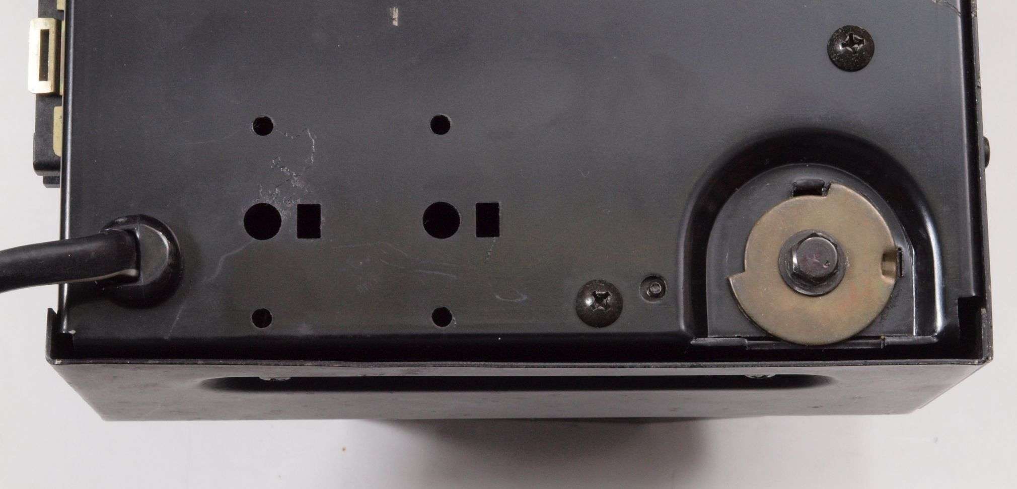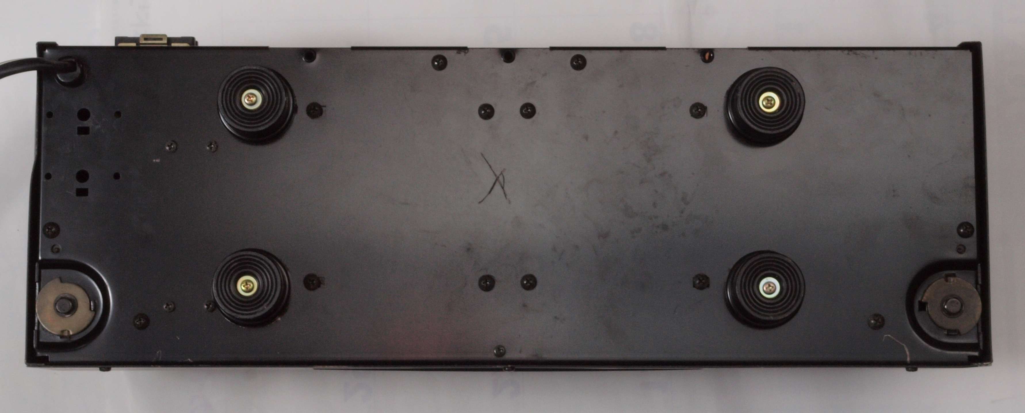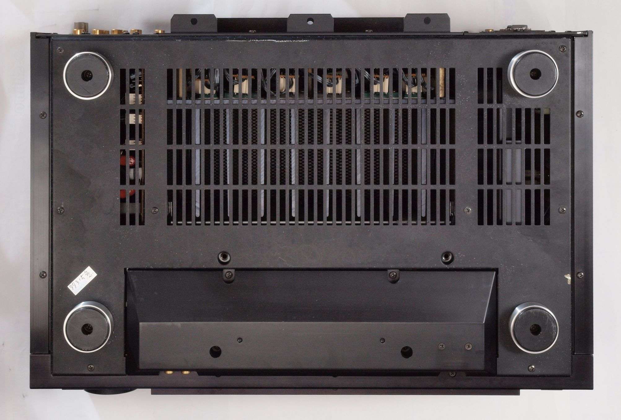 A254. 点検中 下蓋を取り下から見る、 AUX入力のケーブルを噛んでいる。