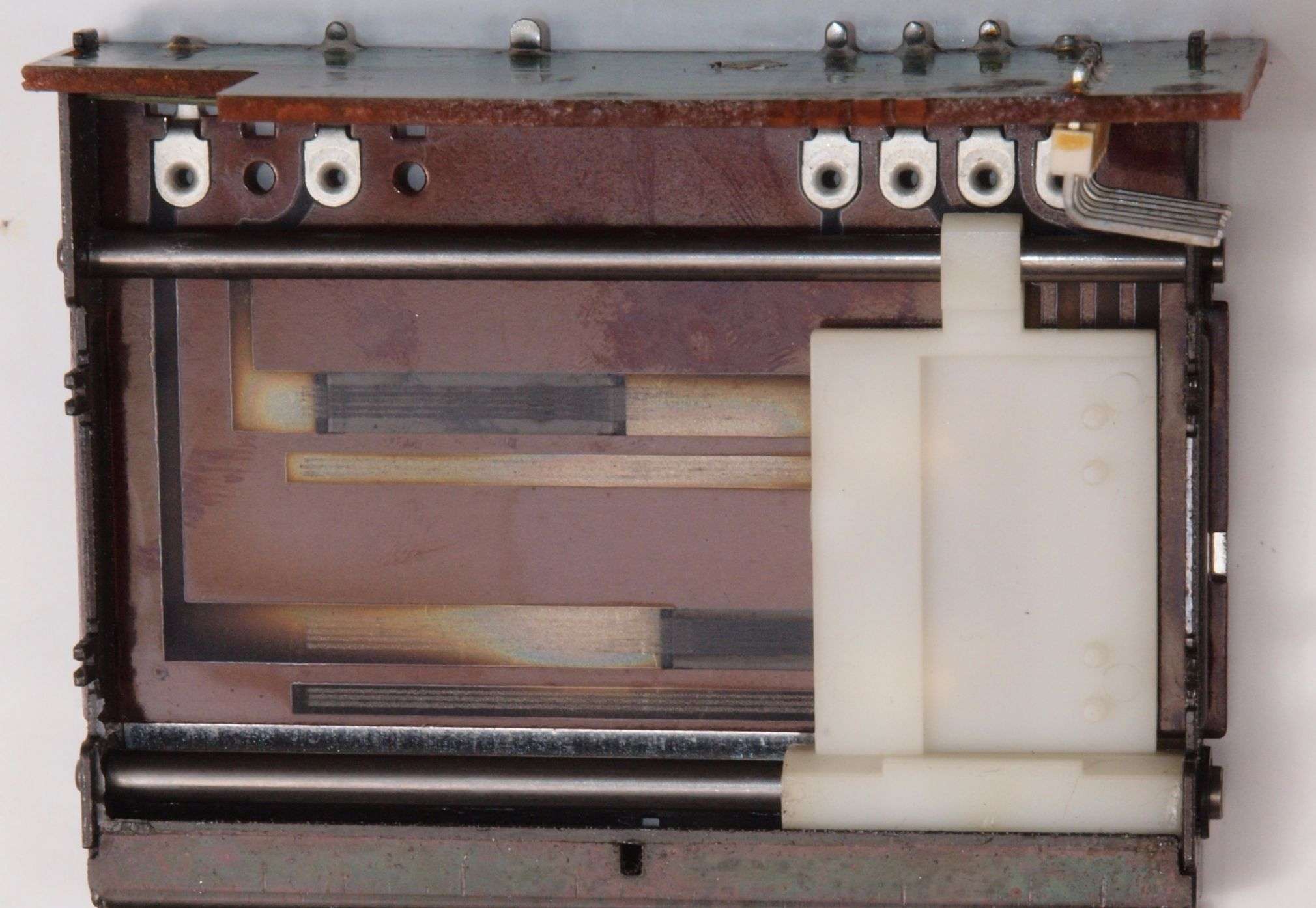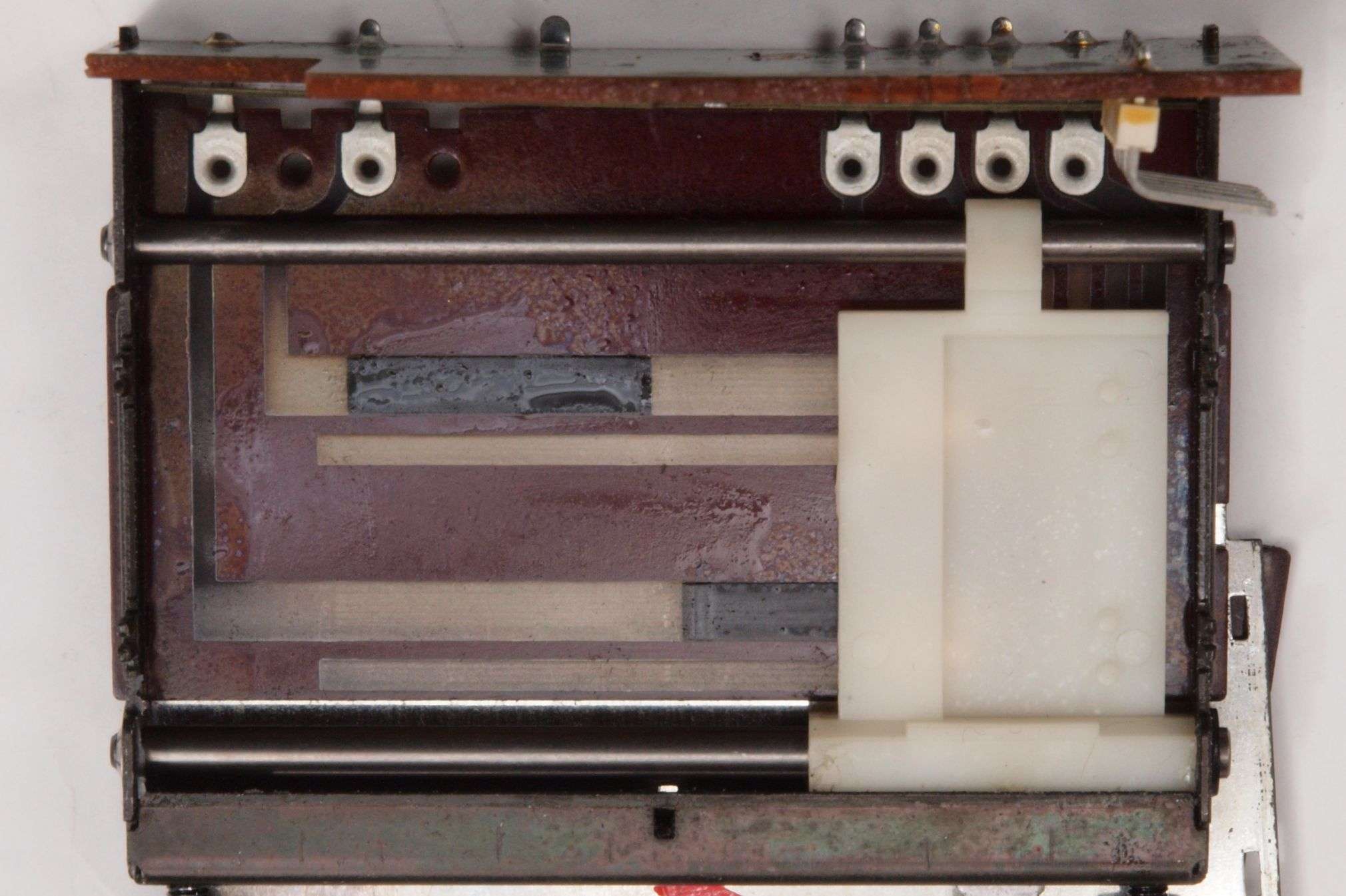A632. 点検中 電源部・下から見る、 カバーの曲がり。