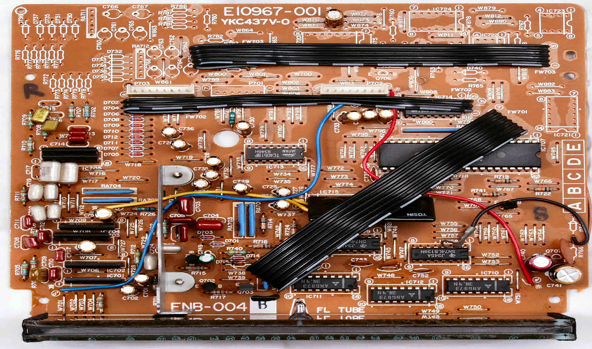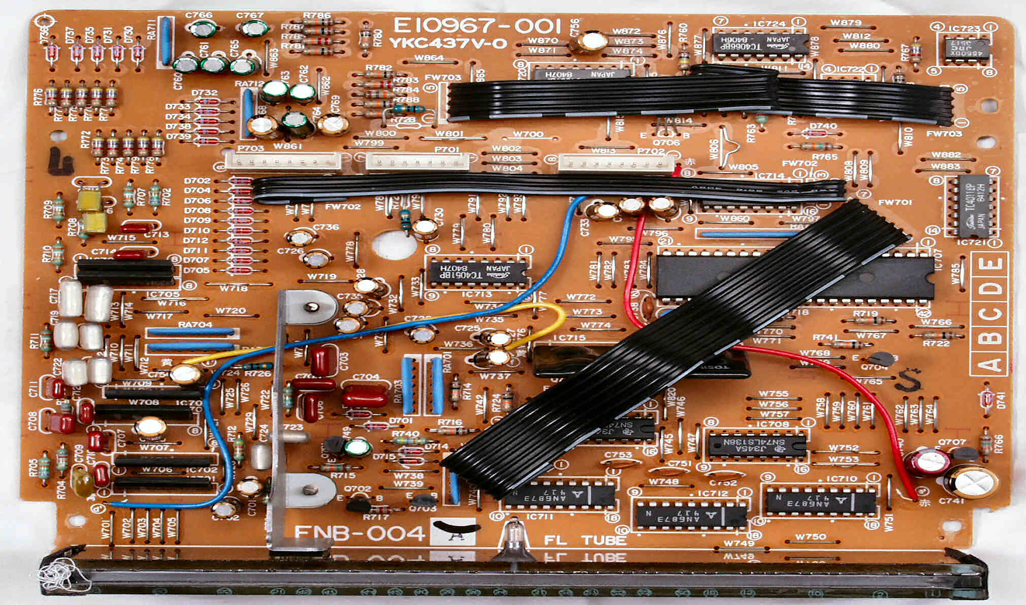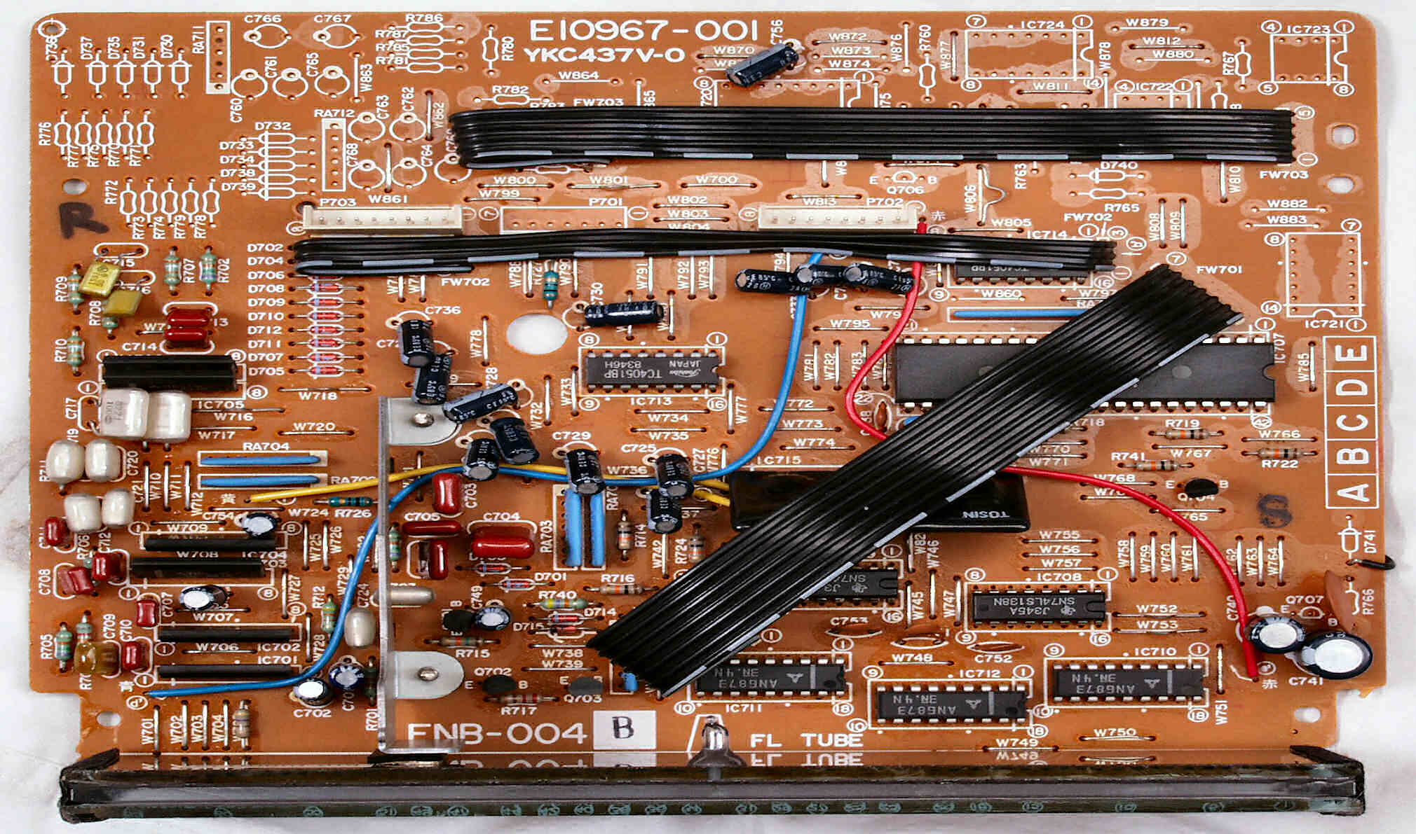 C−5B. 修理後 R側FL(3色蛍光表示管)基板。 電解コンデンサー個交換。