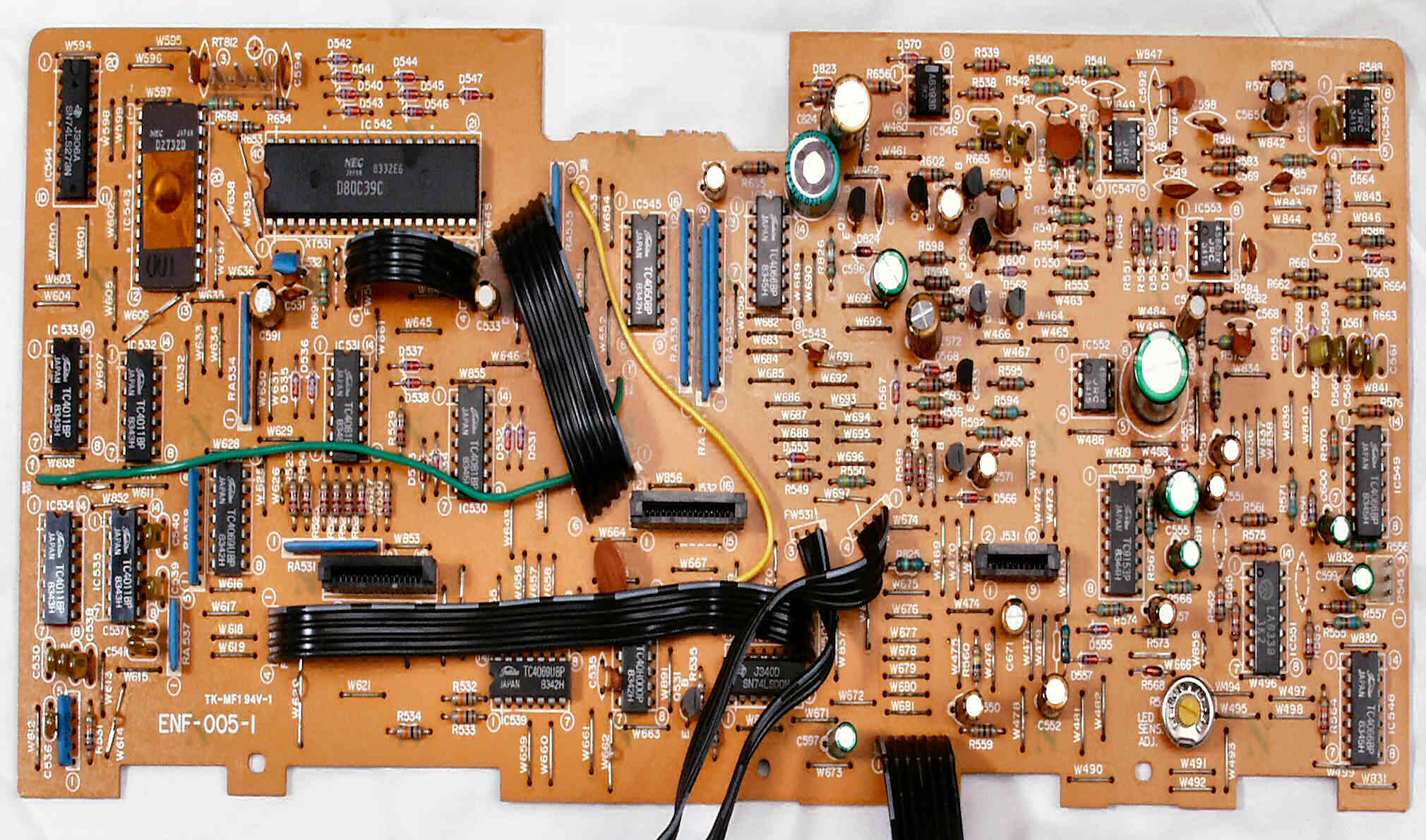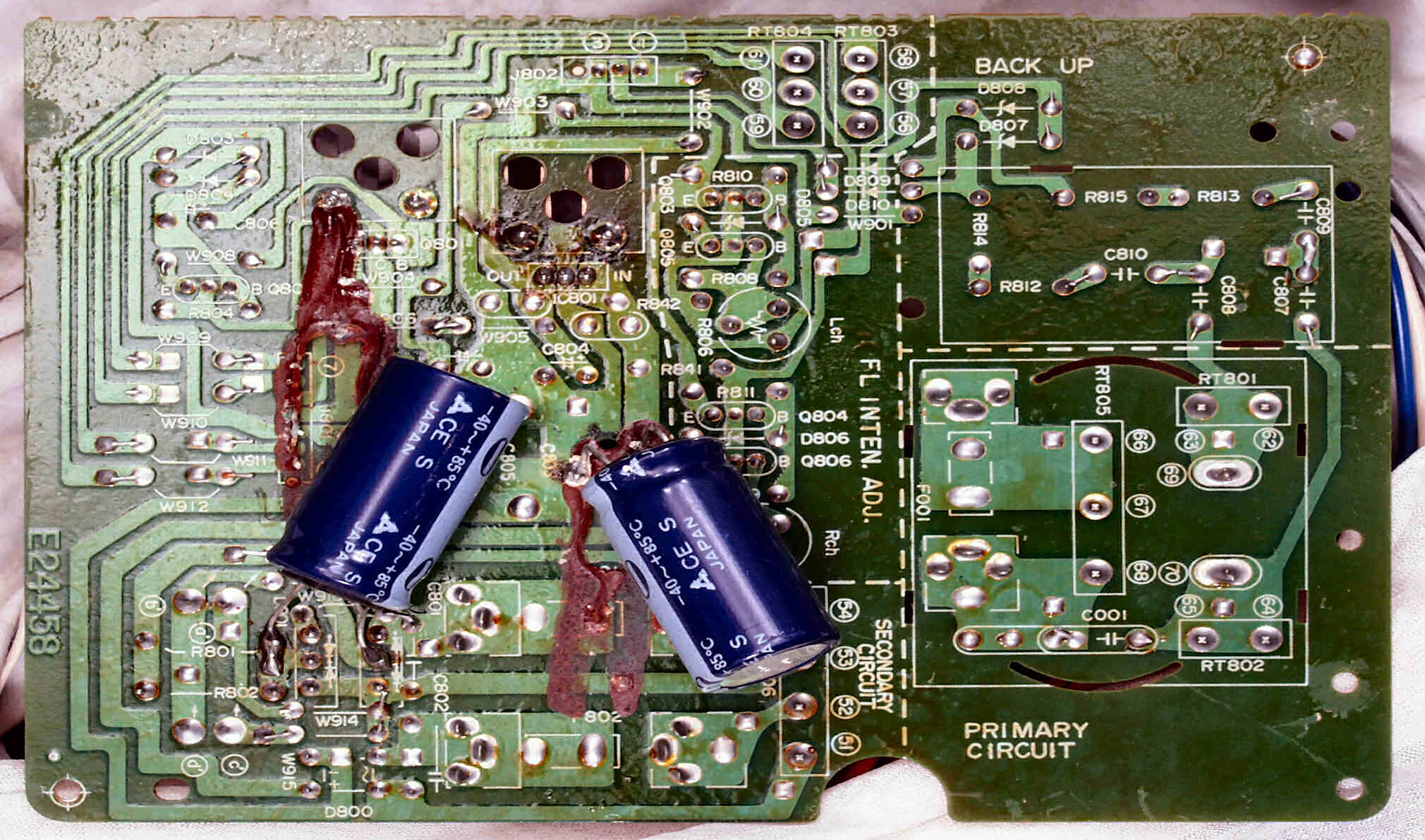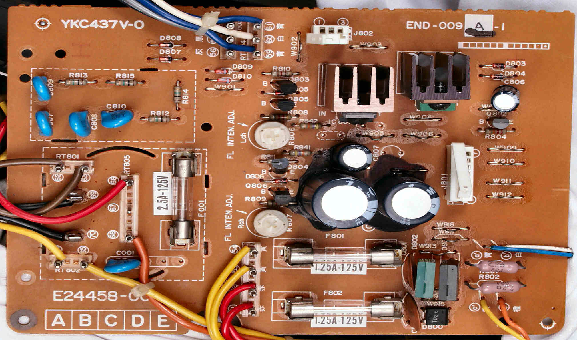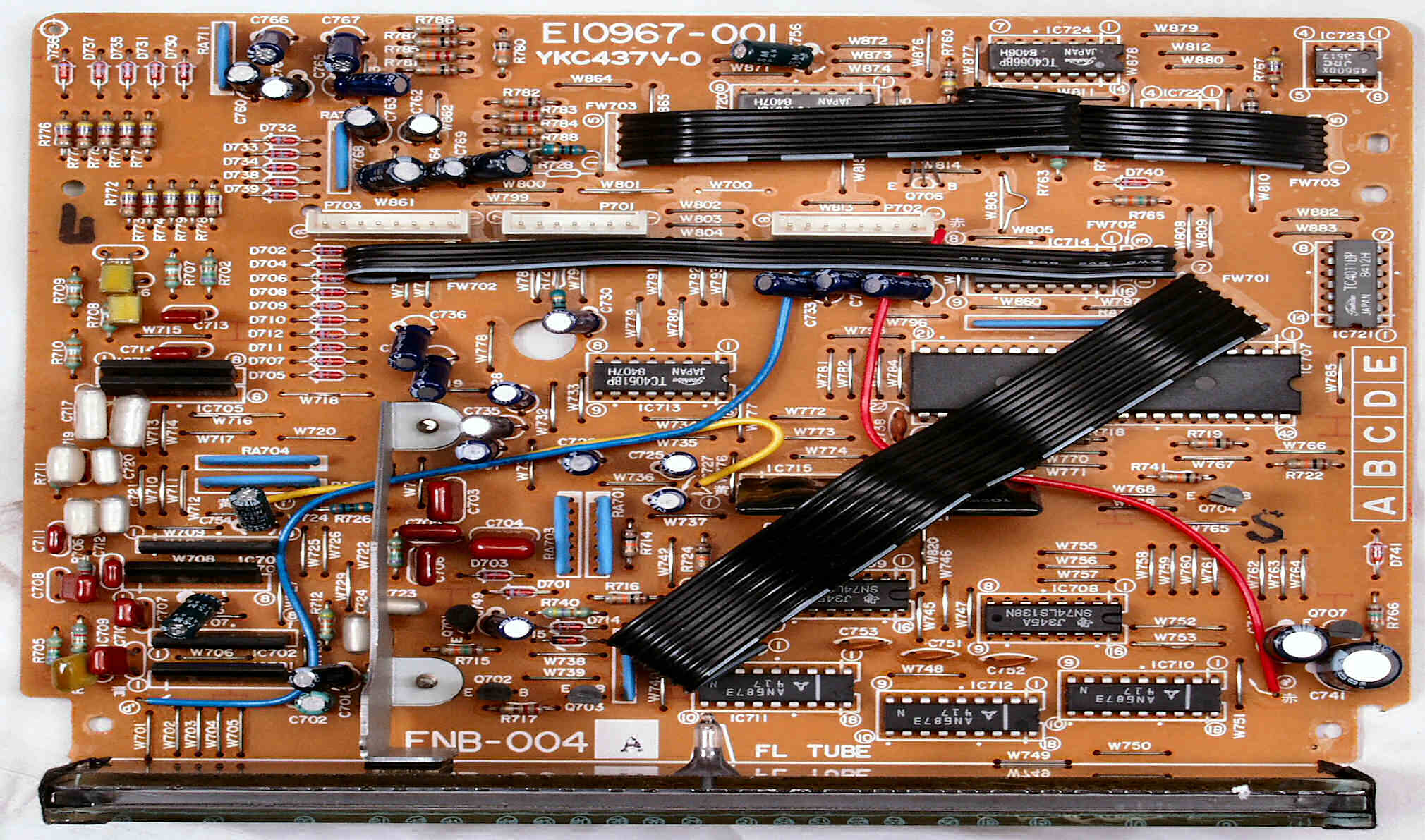 C−5B. 修理後 R側FL(3色蛍光表示管)基板。 電解コンデンサー個交換。