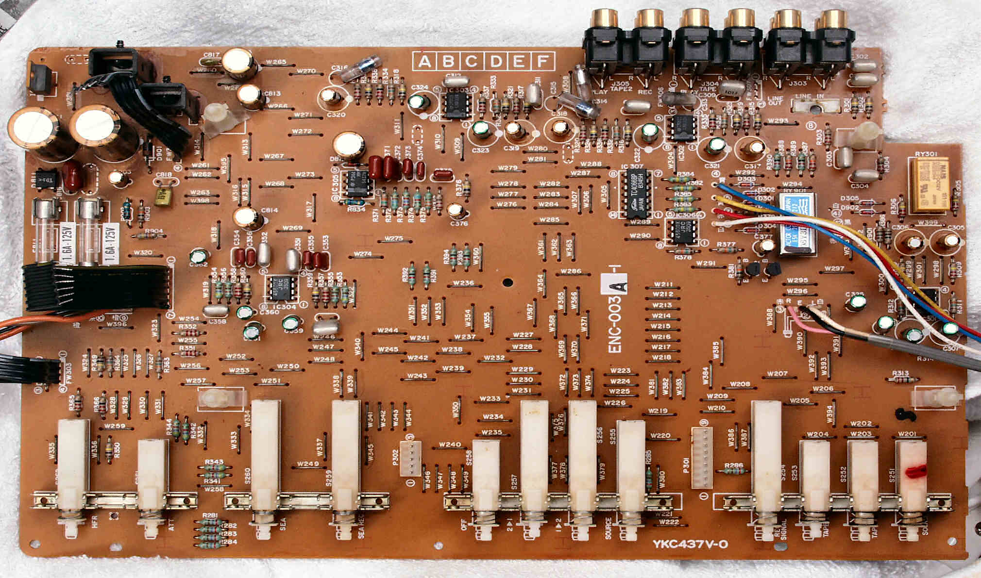 C−2G. 修理後 ドロワー基板。 電解コンデンサー7個交換