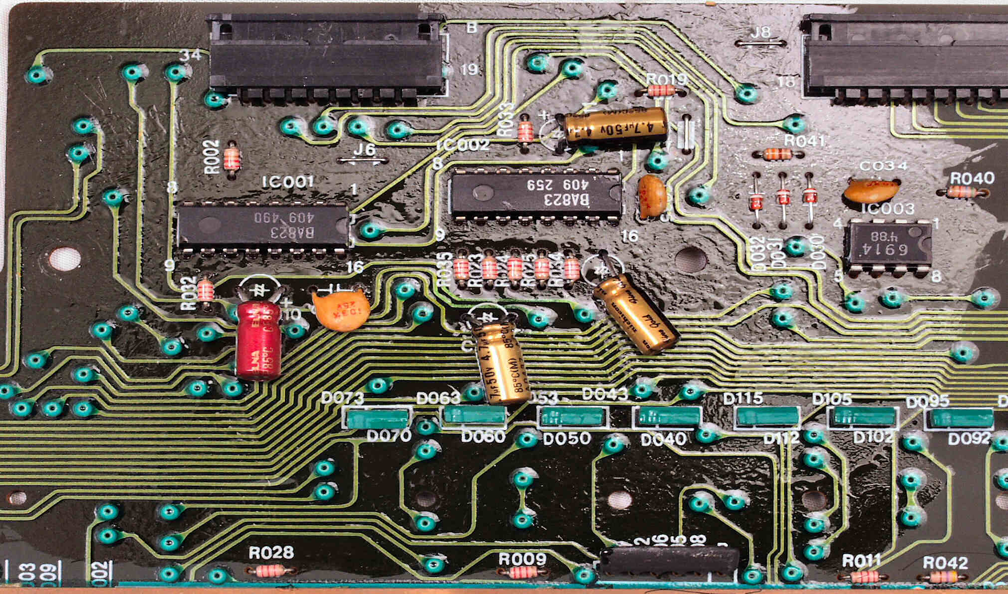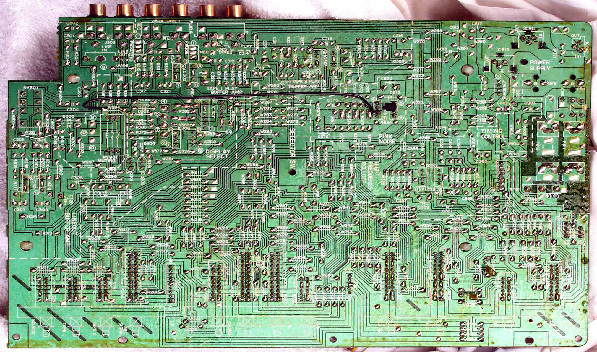 C−2H. 修理後 ドロワー基板。 オイルの液漏れがあるので、コート液を塗って事前に保護しておく。